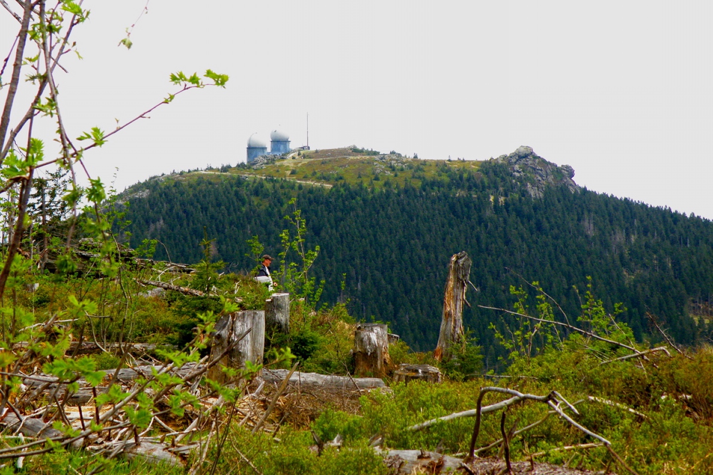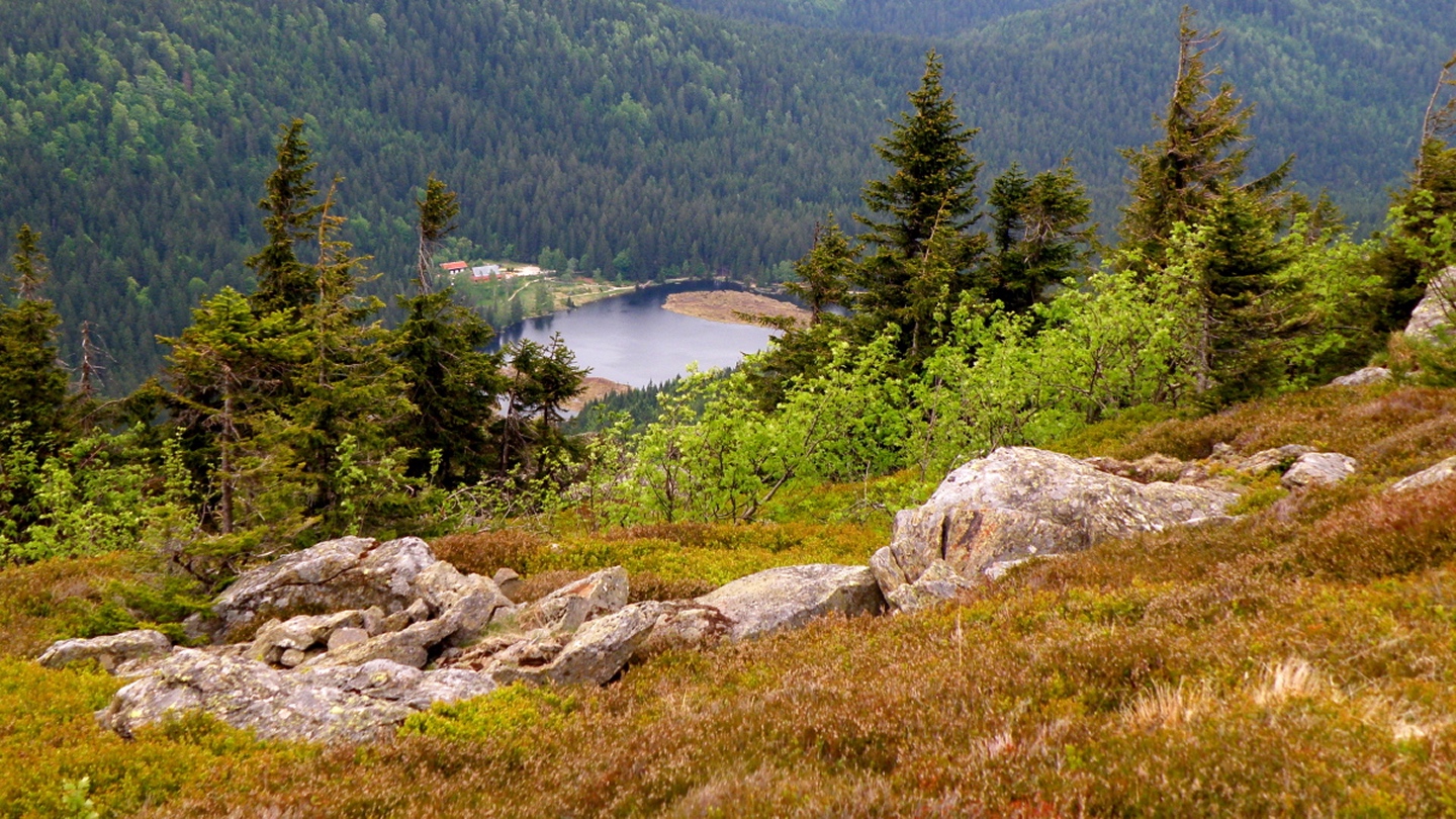 Ab und zu muss man spontan sein. Für mich bedeutete das, am verlängerten Wochenende den Bayernslam auf der Landesgartenschau sausen zu lassen, weil der wieder hübsch stressig geworden wäre und ich sowieso keine Poetry Slams mehr organisieren werde, und stattdessen einen Berg hochzulaufen. Erst sollte es noch einmal der Schwarzwihrberg bei Rötz werden, allerdings kam dann Freitagnachmittag ein Anruf von Karl, der eigentlich nur etwas Technisches wissen wollte, was ich ihm nicht beantworten konnte. Allerdings redeten wir dann über den Bayerischen Wald und speziell den Kleinen Arber, so dass ich Samstagvormittag noch mal bei ihm anrief und wir die Tour für Montag vereinbarten.