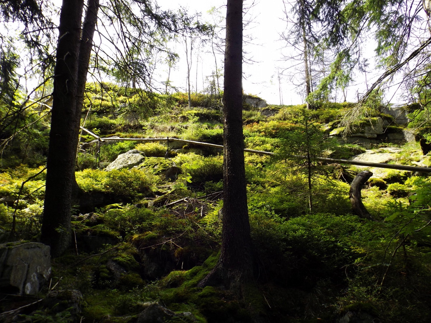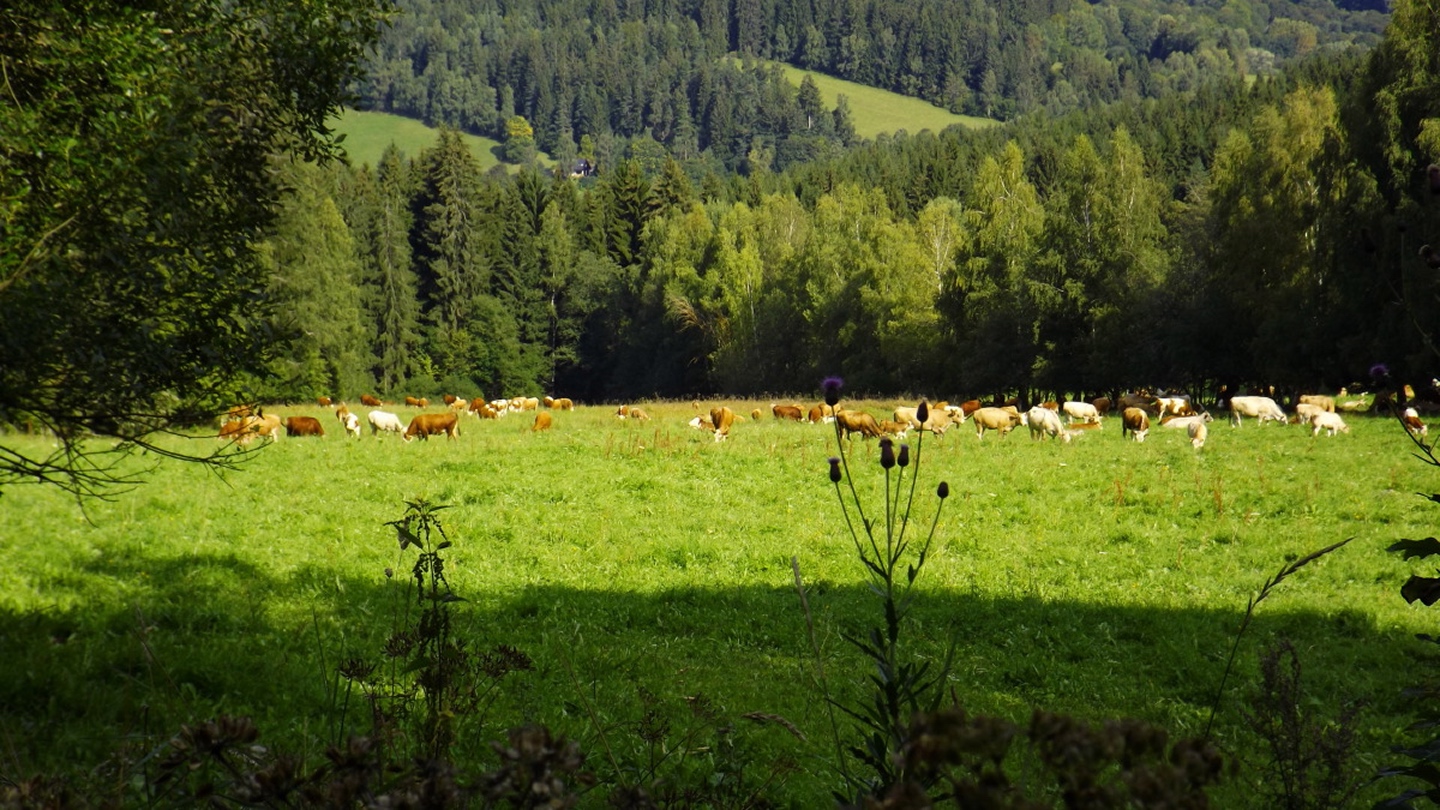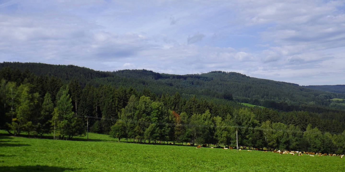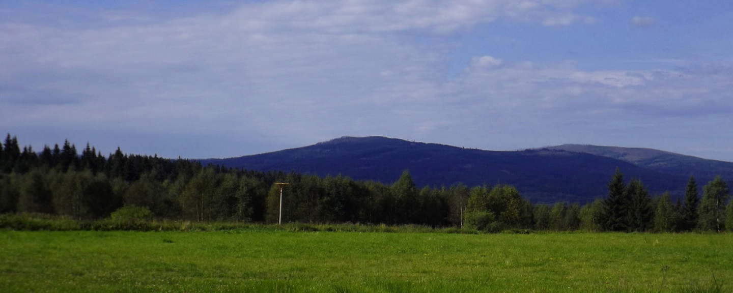 Nach einer deutlich erholsameren Nacht als am Tag zuvor und einem erneut feinen Frühstück war die Zeit für den Abschied aus der Penzion Škarda gekommen. Nach dem Bezahlen der Verpflegung kam Jana noch mit einem kleinen Geschenk anmarschiert, ohne mir wirklich zu sagen, womit ich es mir verdient hatte. Darauf kommt es aber wirklich nicht an, und es war für mich die Krönung eines netten Aufenthaltes mit drei superlieben Menschen. Nochmals herzlichsten Dank an Tomáš, Jana und Bohunka, oder wie ich es in tschechischer Sprache gelernt habe: Děkuju! Anschließend fuhr ich die elf Kilometer nach Rovina, wo ich bereits kurz nach neun Uhr loslaufen konnte. Ursprünglich wollte ich auf den Křemelná, dieser darf allerdings nur umrundet und nicht bestiegen werden, was ich schon anhand der Karte vermutet hatte, also wurde Plan B ausgepackt.
