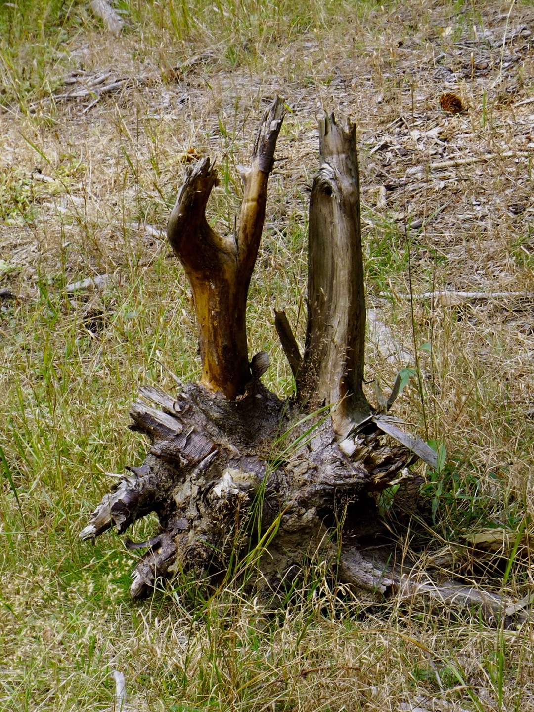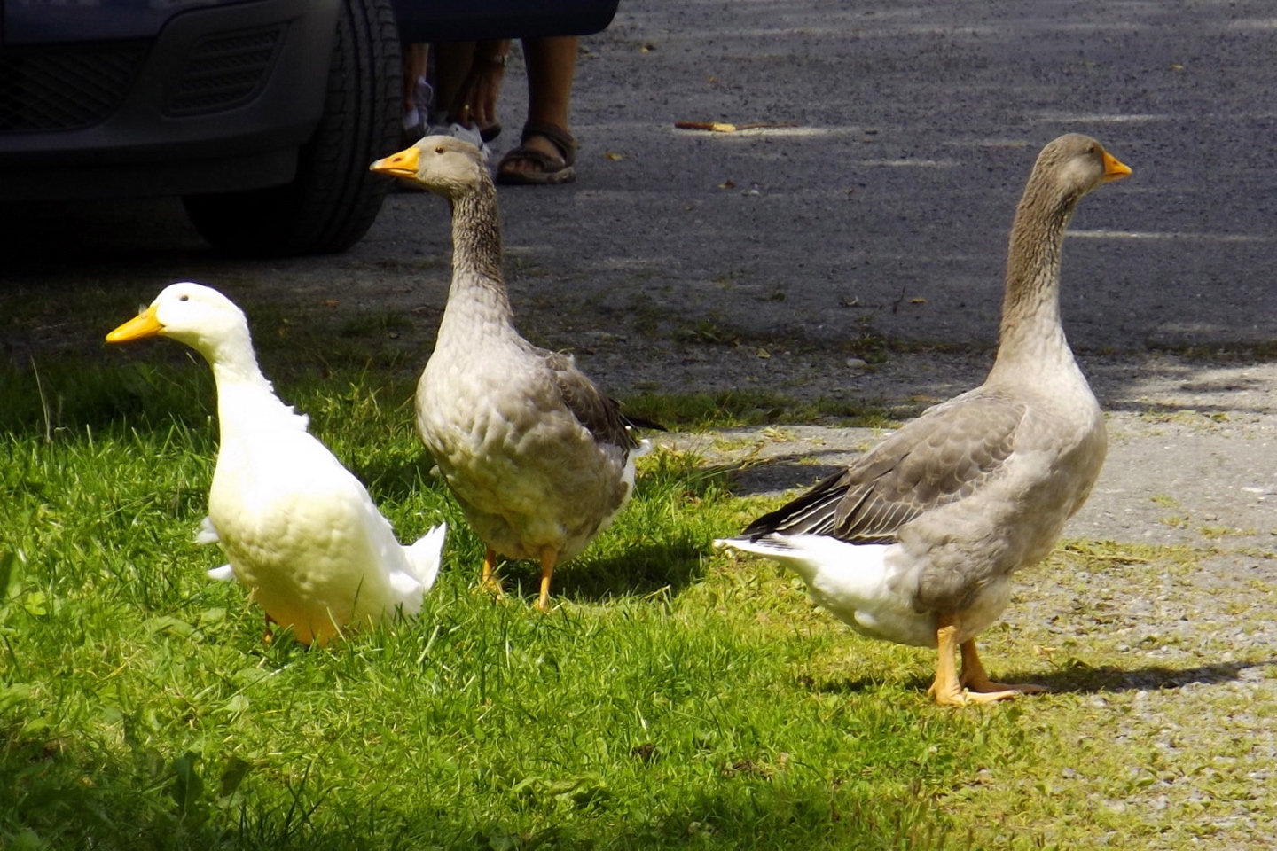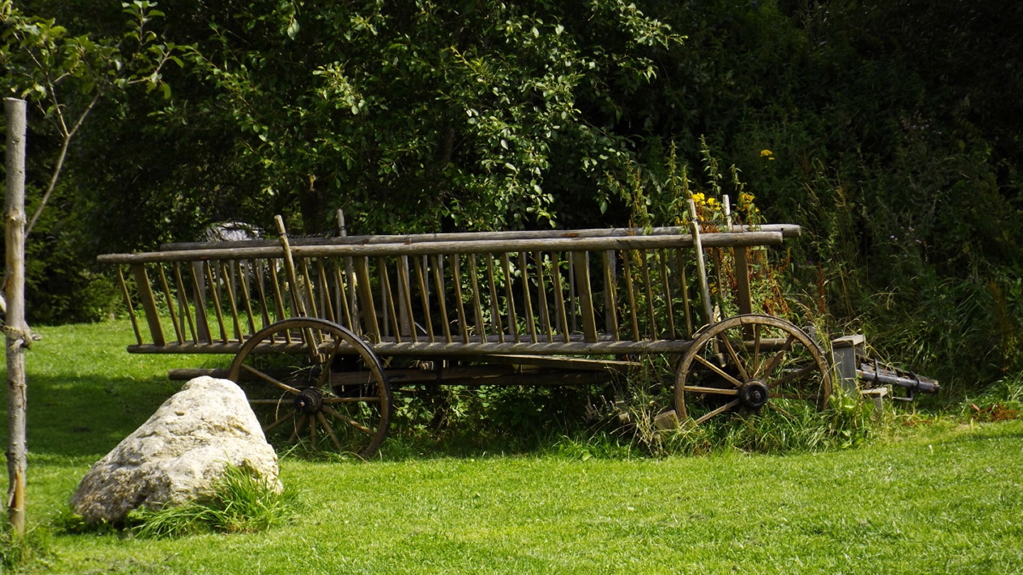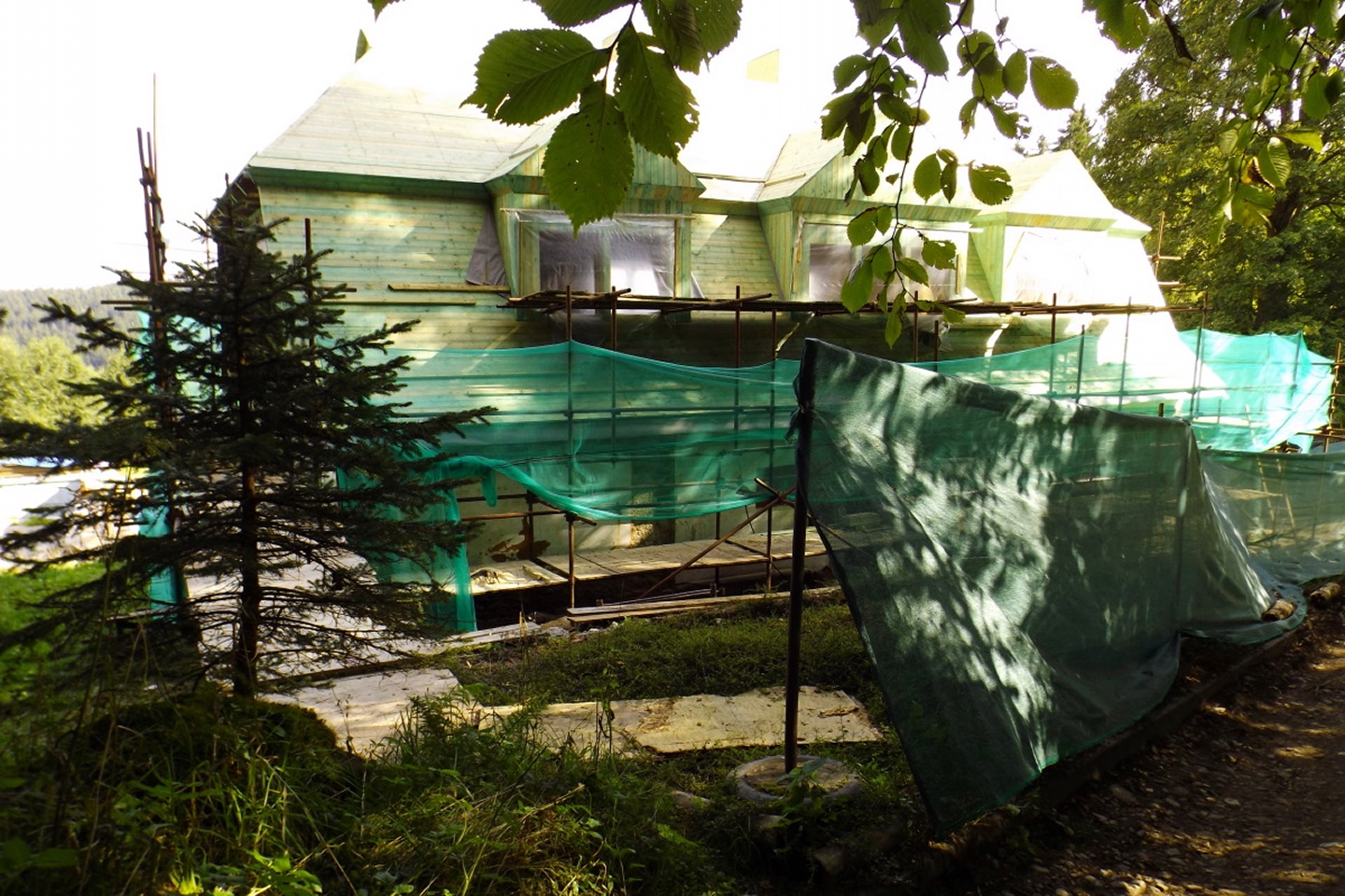 Auf der dem Parkplatz gegenüberliegenden Straßenseite führt eine Forststraße an einem Ziegengehege vorbei nach Westen, die später noch eine Rolle spielen sollte. Der von mir geplante Weg nach Karlov ist natürlich auch angeschrieben, er führt fast rechtwinklig dazu über die angrenzende Wiese und an ihrem Ende in den Wald hinein. Dort geht es gleich einmal richtig bergab und an einer Abzweigung rechts weiter. Das alles ist wie im Šumava gewohnt hervorragend markiert, in diesem Fall in weiß-gelb-weiß. Ab dieser Abzweigung wurde es etwas unangenehm, weil extrem matschig. Da waren wohl in den vergangenen Tagen die Harvester richtig aktiv. Glücklicherweise konnte ich meistens am Wegrand auf dem sauberen Waldboden gehen, so dass ich mein Vorhaben, mit sauberer Hose einzukehren, halbwegs umsetzen konnte. Nach 20 Minuten war der alte Gutshof Karlov erreicht und die Baustelle dort sorgte für einige Verwirrung bei mir. Denn ich übersah die Markierungen für den richtigen Weiterweg und folgte stattdessen der Zufahrtsstraße und landete eine halbe Stunde und diverses Auf und Ab später bei der Kreuzung mit Kapelle Hamižná. Da ich sowieso das Naturschutzgebiet gleichen Namens auf dem Themenpfad durchqueren wollte, war das nicht allzu tragisch, insbesondere weil dieser Themenpfad nicht erst am Punkt Peklo zur Schleife abzweigt, sondern bereits auf halbem Weg dorthin mitten im Wald. Ich ging jedoch hinunter nach Peklo, stellte fest, dass es sich hier um den tiefsten Punkt der Runde handelte und machte mich fröhlich auf den Weg hinauf nach Hartmanice. Dieser Abschnitt verläuft wieder auf einer Fahrstraße, bietet aber als Entschädigung dafür wunderbare Blicke hinaus Richtung Svatobor und Petrovice. In Hartmanice hätte ich noch reife Johannisbeeren ernten können, wenn der Streifen zwischen Straße und Gartenzaun nicht so zugewuchert wäre. Aber sie sahen zumindest lecker aus. Am Dorfplatz bog ich rechts ab und stieg am Cafe 27 vorbei wieder hinauf nach Hamižná, wo ich jetzt links dem zweiten Teil des Themenpfades auf den Hügel gleichen Namens folgte. Hier steht noch ein Skilift, ob er im Winter auch in Betrieb ist, weiß ich nicht, jedenfalls ist die Piste aus dem Naturschutzgebiet herausgelöst. Von hier ist Sušice gut erkennbar, während Hrad Kašperk und der Kamm zum Javorník von ein paar Baumreihen am rechten Pistenrand verdeckt werden. Der Gipfelfelsen ist dank Gestrüppkampfklasse 4 nicht wirklich zugänglich, deswegen verzichtete ich trotz langer Hose auf einen Versuch in seine Richtung und begnügte mich damit, das Lifthäuserl einmal zu umrunden und wieder zum Lehrpfad zurückzukehren. Dieser umrundet anschließend den Berg fast komplett und mündet kurz vor der mittlerweile hinlänglich bekannten Kreuzung in den blau markierten Wanderweg nach Dobra Vodá. Dieser führt in leichter Steigung über den Sattel zwischen Hamižná und Jakubice, bevor er rechts abknickt und an einem Wanderparkplatz kurz vor Dobra Vodá herauskommt. Von diesem aus kann man die Umrundung des Křemelná starten, es gibt aber auch eine deutlich erkennbare Fortsetzung geradeaus, auf der ich innerhalb von zehn Minuten die kleine, aber hochinteressante Siedlung Dobrá Voda erreichte. Sie war nicht nur zwischen 1949 und 1990 Namensgeberin des Militärgeländes, sondern beherbergt neben einer nicht ganz unbedeutenden Kirche und einer Herberge auch ein Museum. Neben der Kirche plätschert in einem Brunnen die Guntherquelle vor sich hin, dazwischen windet sich ein kleiner Pfad den Hang hinauf. Ihm folgte ich 700 Meter durch den Wald bis zum Abzweig Pustina, wo ich rechts abbog und mich bereits an den Schildern nach Rovina orientieren konnte. Dazwischen liegt allerdings noch der Abzweig Březník, von dem aus es ein halber Kilometer zur Guntherkapelle und dem Guntherfelsen, wie der Gipfel des Březník auch genannt wird. Der Aufsteig zum Felsen ist eine mit Holzgeländer gesicherte, in den Stein geschlagene Treppe, die bei Nässe etwas unangenehm sein kann. Oben angekommen, zeigte sich, dass der Felsen zwei „Gipfelchen“ hat, von denen der südliche ein paar Zentimeter höher ist, der nördliche aber von Westen her besser gesehen wird. Deshalb wurde das Gipfelkreuz irgendwann vom südlichen auf den nördlichen verlegt. Nach einer kleinen Pause stieg ich wieder hinunter zum Hauptweg und folgte diesem bis zum Ausgangspunkt. An diesem steht das Hotel Rovina mit Restaurace, es war 13 Uhr und ich hatte Hunger, also genoss ich ein Dunkles und eine Portion Hirschbraten, die beide genauso gut schmeckten wie sie aussahen. Jetzt wäre es durchaus nachvollziehbar gewesen, wenn ich mich nach dem Essen ins Auto gesetzt hätte und in die Kerzenwelt nach Bodenmais gefahren wäre, wo ich etwas mitnehmen wollte. Ich war aber der festen Meinung, dass diese an Samstagen bis 17 Uhr geöffnet hat und ich noch zwei Stunden Zeit für einen weiteren Gipfel hätte. Hier kommt der Forstweg vom Anfang des Berichtes ins Spiel, er führt nämlich zum Vysoký hřbet, laut Wegweiser sind es auch nur 2,5 Kilometer. Leider war diese Ecke nicht mehr auf dem ausgedruckten Kartenabschnitt, sonst hätte ich gesehen, dass auf dem Wegweiser nicht der Gipfel gemeint ist, sondern ein etwa 1,5 Kilometer vor dem Gipfel liegender Abzweig. An diesem schlug ich mich links auf eine Forstspur und folgte ihr 600 Meter bis zu einer Lichtung, ab der ein Weiterkommen etwas schwierig war. da ich nicht wusste, wie weit es noch zum höchten Punkt ist, ließ ich es hier gut sein, schoß ein Foto von der möglichen Gipfelregion und kehrte zurück zum Auto. Es war jetzt 15.30 Uhr, also kein Grund zur Hektik, so dass ich gemütlich die Schuhe auszog, die Ausrüstung im Kofferraum verstaute und über Brennes nach Bodenmais fuhr, wo ich um 16.10 Uhr ankam. Das böse Erwachen war, dass die Kerzenwelt samstags um 16 Uhr schließt, ich also nichts mehr bekam und mich über die wenig lohnende Verlängerung der Tour noch richtig ärgern durfte.