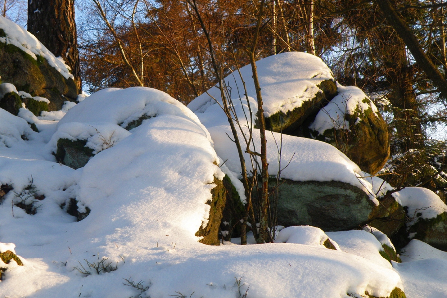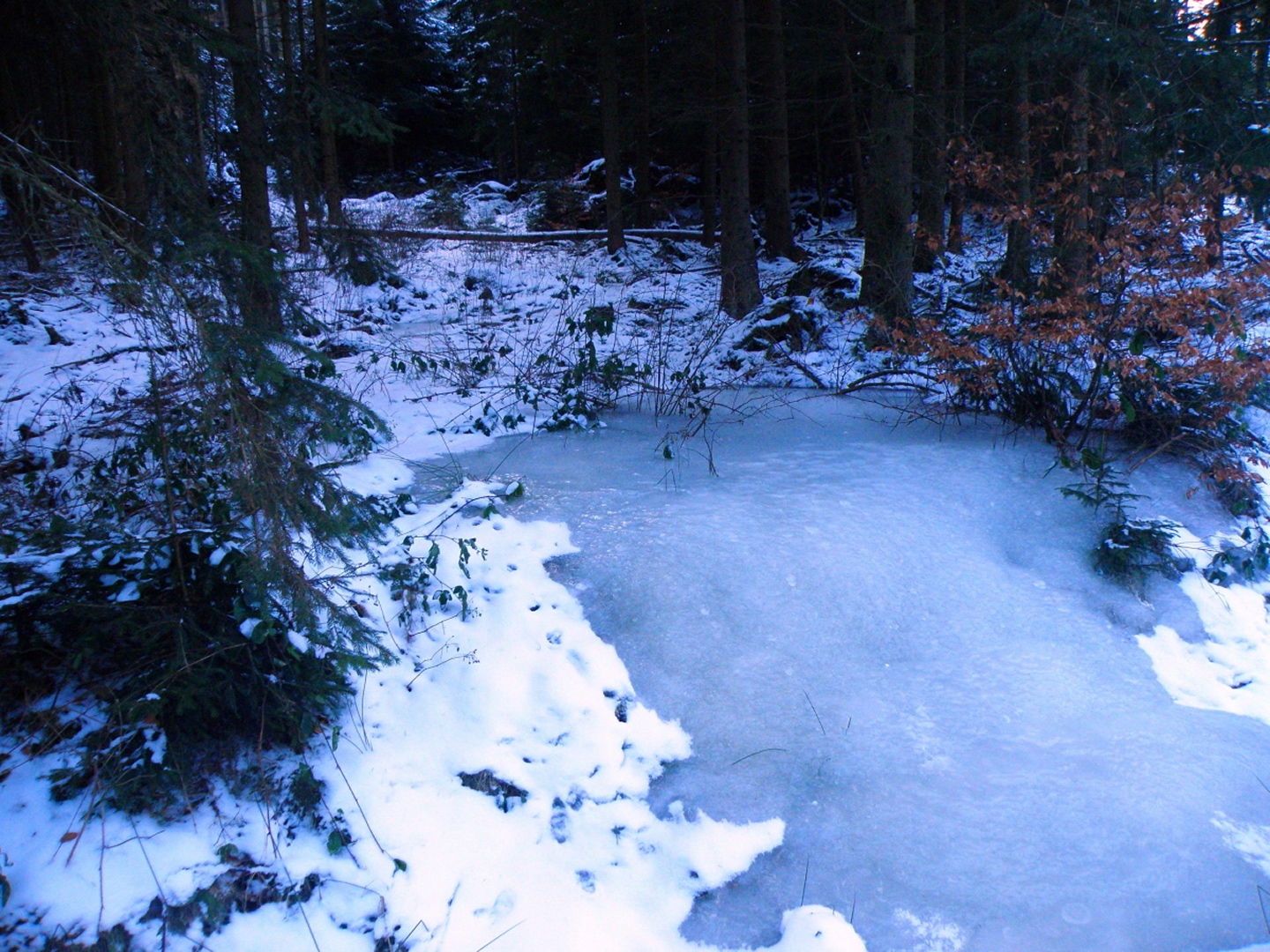 Meine Tourenliste umfasst in diesem Jahr jede Menge kleinere Sachen in der Region. Da hier nicht übermäßig viel Schnee liegt, konnte ich damit beginnen, die ersten Punkte dieser Liste als Winterwanderung anzugehen. Allerdings muss ich wohl im Sommer wiederkommen, da es zu mühsam gewesen wäre, durch den Schnee den steilen Hang zum Oberen Eibenstein hinaufzustapfen. Dies lag vor allem daran, dass ich wieder einmal erst nach 14 Uhr von zu Hause wegkam, noch eine Kleinigkeit erledigen musste und somit erst kurz vor 15 Uhr bei -11°C in Bauhof aus dem Auto stieg. Coco hatte in letzter Zeit größere Probleme mit der Kälte gezeigt, weshalb ich sie in die Obhut meiner Eltern gab und allein losfuhr. Für Boxer sind 8 Jahre halt leider doch schon ein stolzes bis kritisches Alter.