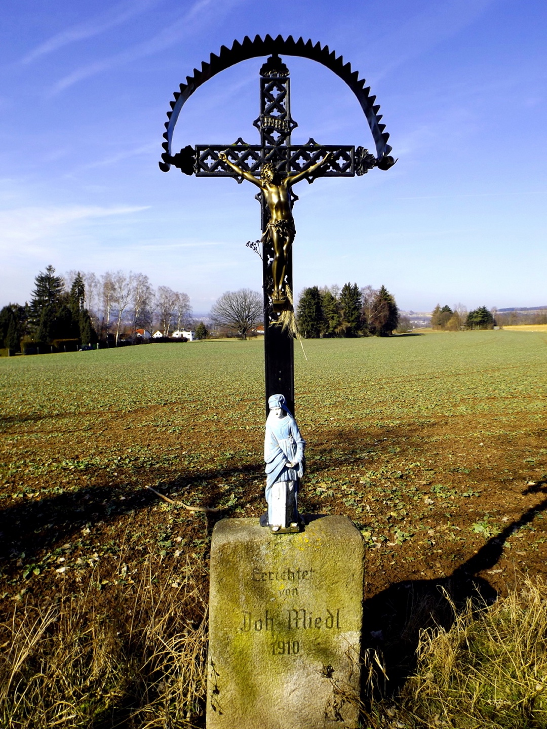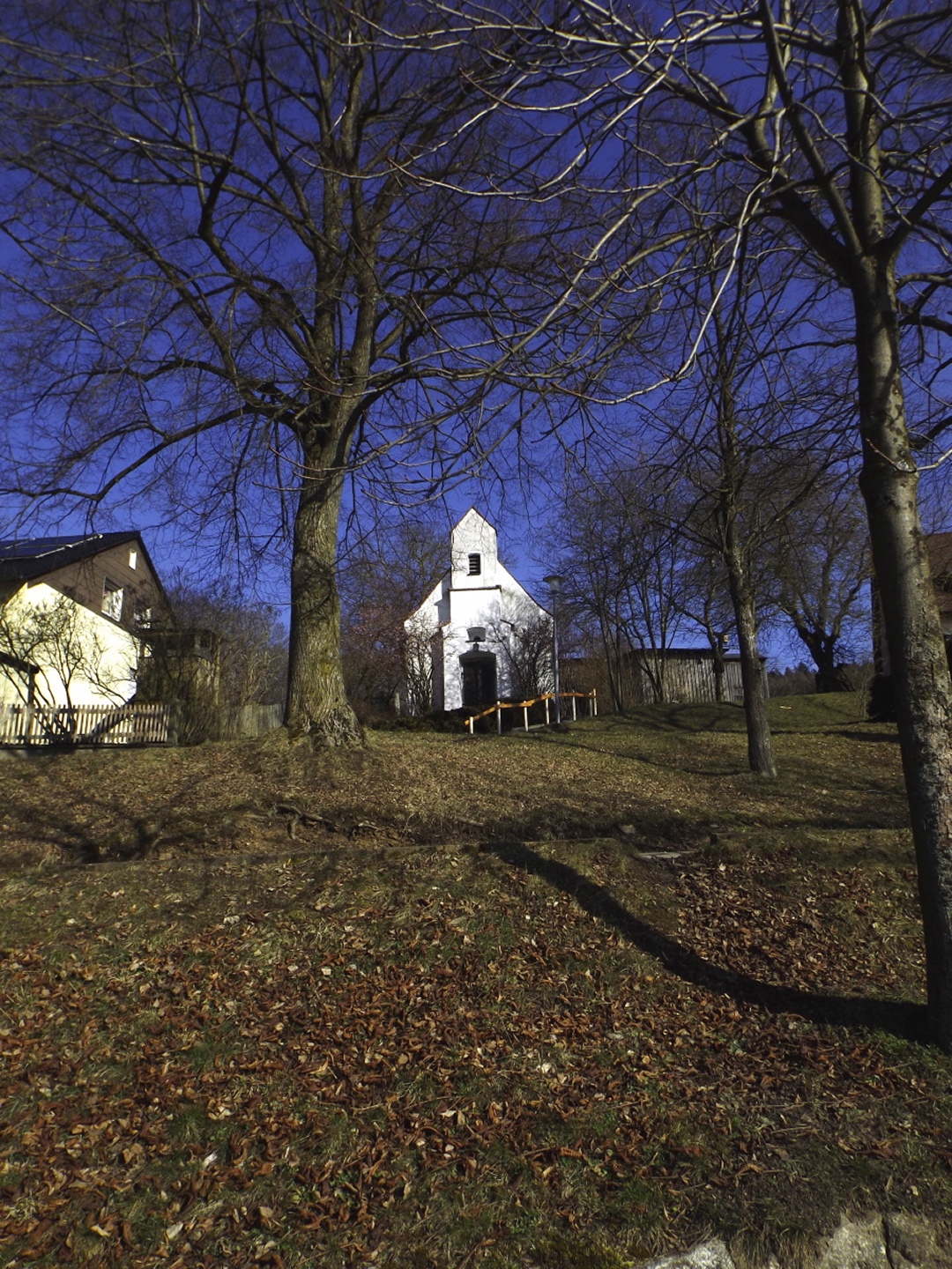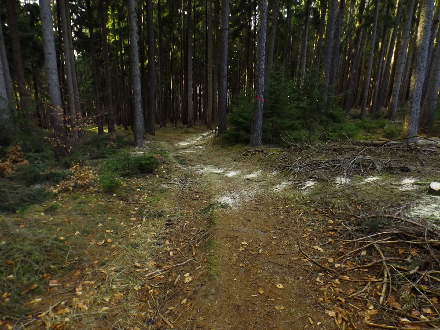 Von den vielen möglichen Ausgangspunkten wählte ich den Wanderparkplatz am Ende des Hopfenweges, weil er doch ein bisserl Gehstrecke erlaubte, ich aber nicht erst quer durch die Stadt oder Wohnsiedlungen musste. Von hier aus wählte ich den linken der drei geschotterten Wege, um zunächst hinaus nach Tröglersricht zu kommen. Während der rechte Weg ebenfalls ein Wanderweg ist, auf dem ich am Ende der Runde zurückkam, führt der mittlere nur zu ein paar Schrebergärten. In Tröglersricht angekommen, geht es zunächst unter der Kapelle vorbei nach links und nach einem Anwesen rechts hinauf, dem roten Dreieck folgend. Ab jetzt wird es ein kleines bisserl steiler, nach ein paar Minuten führt der Weg auch in den Wald hinein. Zunächst überquerte ich eine Forststraße, bevor man rechts zur Strobelhütte und somit auch dem Westgipfel abbiegen kann. Ich ging jedoch geradeaus weiter bis zum Ende des Waldes, wo man einen schönen Blick auf Letzau und die östlichen Hügel Richtung Grenze zu Böhmen hat. Ab hier folgt man auf einer Forststraße links hinunter sogar dem Goldsteig, der nach knapp 100 Metern die Forststraße nach rechts verlässt und auf einem sehr schönen Pfad am Waldrand entlang hinauf führt Richtung Ostgipfel. Kurz vor diesem trifft man auf die Zufahrtsstraße zum Fernsehturm, auf der die letzten 100 Meter absolviert werden. Der höchste Punkt ist eher ein kleines Plateau, das halb umzäunt und halb verwuchert ist, so dass ich mich mit einem Punkt etwa 20 Höhenzentimeter unterhalb begnügte. Nach einem Schluck aus der Trinkflasche ging es auf dem gleichen Weg zurück bis zu der Abzweigung, an der ich den Goldsteig betreten hatte. Von hier aus kann man auf einem kleineren Waldpfad zum Westgipfel abkürzen, was ich auch tat. Dort dann die einzige kleine Enttäuschung des Tages: Die Strobelhütte hat nur Mittwoch und Samstag nachmittags sowie Sonntag ganztags geöffnet, und auch der Vierlingsturm ist nur zu ihren Öffnungszeiten zugänglich. Also leider keine Panoramafotos von oben. Für den Rückweg folgte ich der Markierung weiß-rot-weiß (senkrecht) nach Süden, bis dieser Pfad auf die Forststraße vom Aufstieg trifft. Dieser folgte ich nach rechts für etwa 200 Meter, dort zweigt wieder ein Pfad nach links in den Wald hinein. Dieser berührt in einer sanft abschüssigen Linkskurve eine Wiese, von der aus noch einmal gute Fotos von Weiden und der westlichen Umgebung möglich sind. Hier hatte ich etwas Glück: So gut meine neue Kamera ist, ihr Tragriemen ist um Lichtjahre schlechter und weniger zuverlässig als derjenige der alten. Prompt löste er sich auf einer Seite und die Kamera landete auf dem trockenen, aber weichen Waldboden. Da muss ich mir noch etwas einfallen lassen. Bald tauchte vor mir ein Weiler auf, der in der Kompass-Karte als Zollhaus vermerkt ist. Von hier aus kann man geradeaus einer für Kraftfahrzeuge gesperrrten Schotterstraße folgen, die irgendwann auf den Aufsteigsweg trifft. Ich bog jedoch am Ortsende noch einmal links auf einen Flurbereinigungsweg ab, der nach einer Doppelkurve und einer kleinen Wiesenpassage auf den Wanderweg W trifft, auf dem ich mich rechts hielt und zum Auto zurückkehrte.