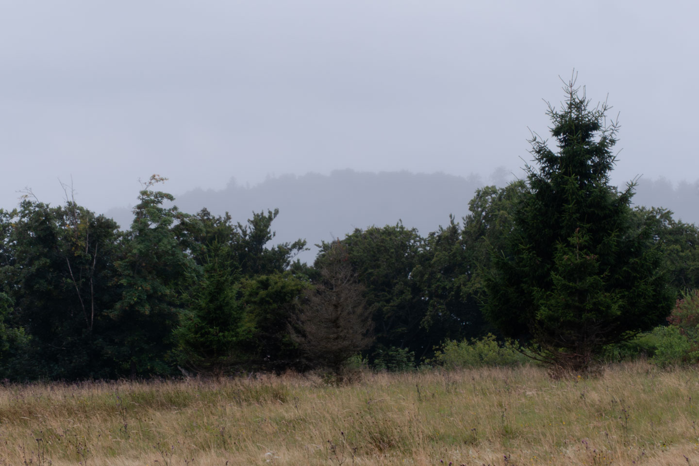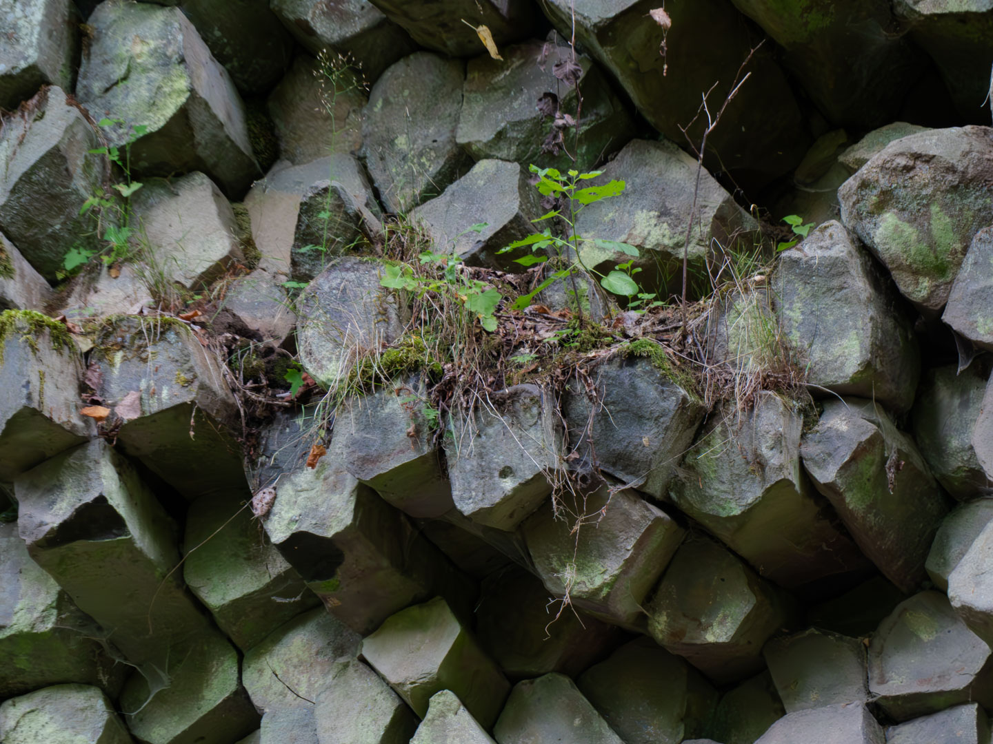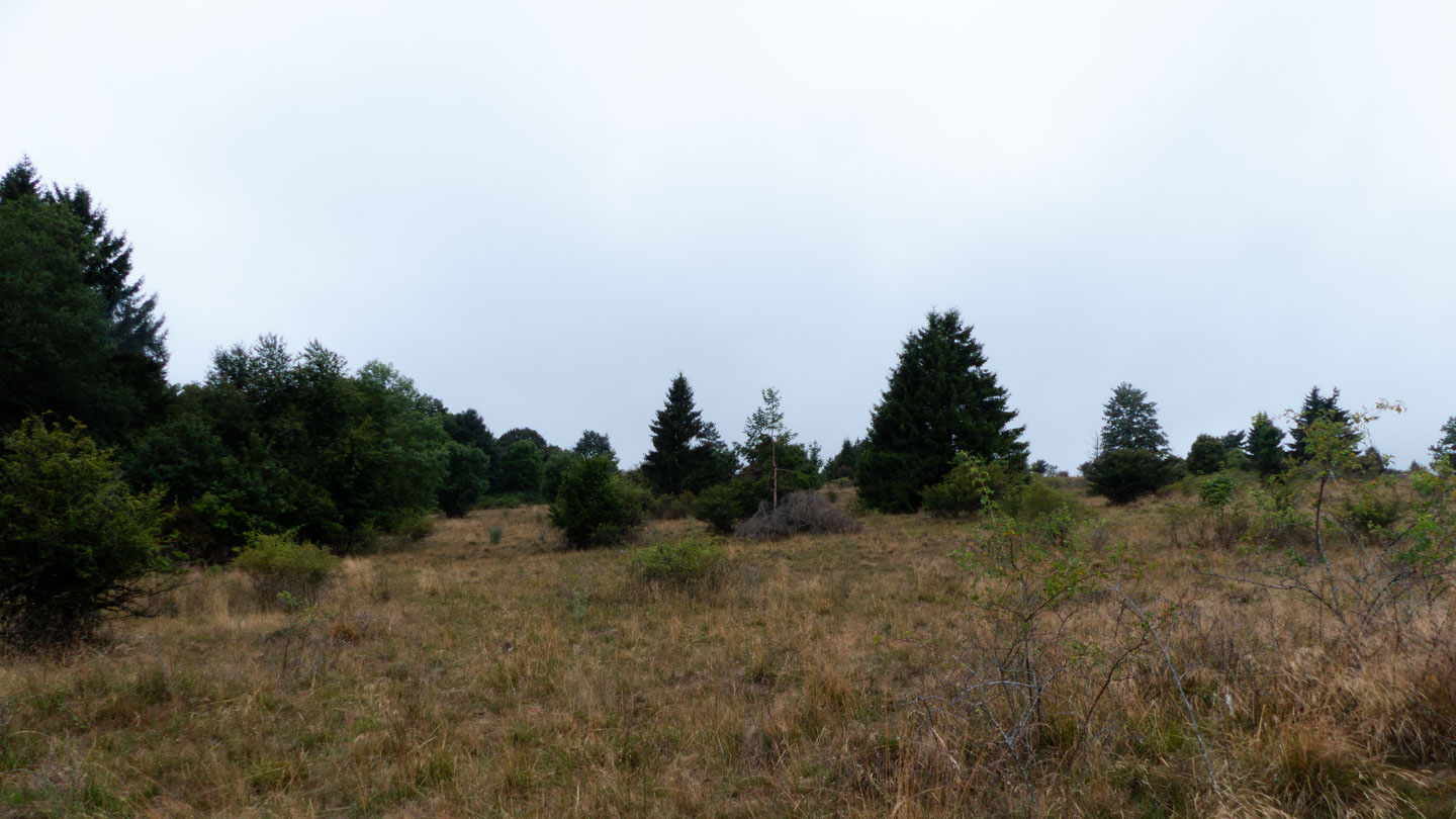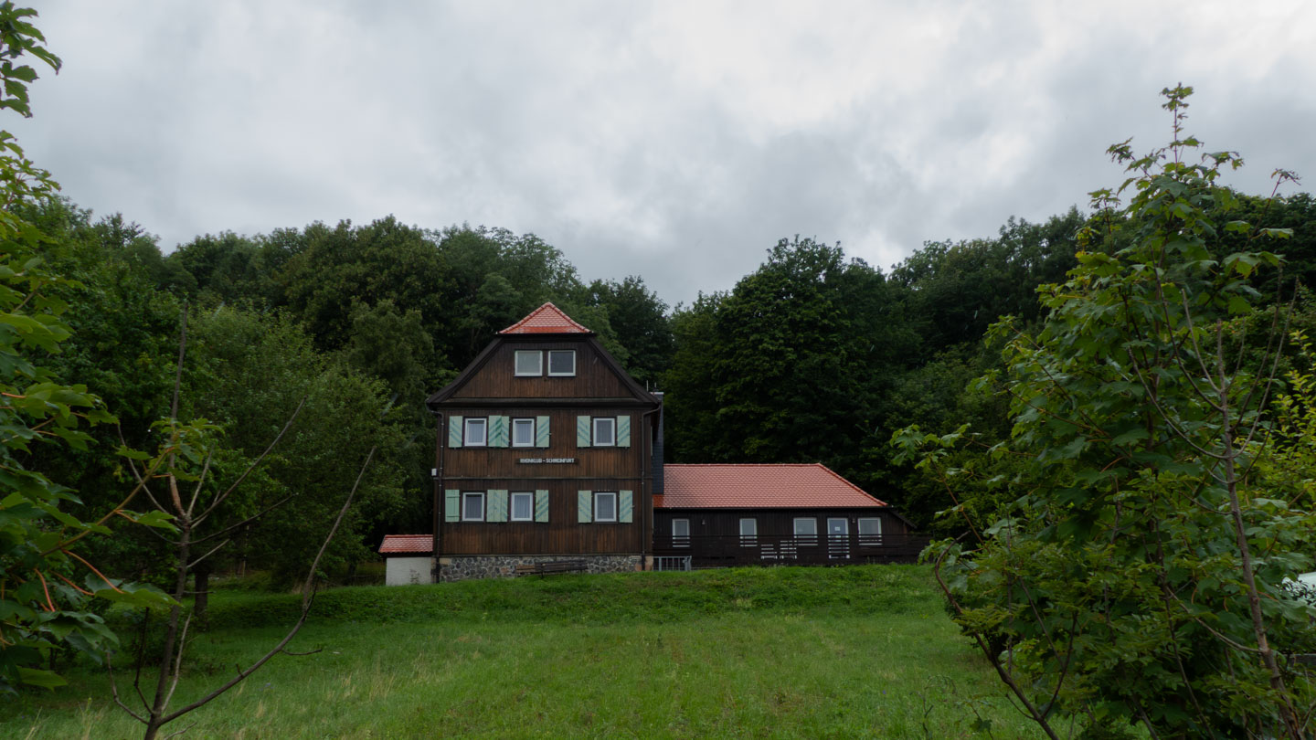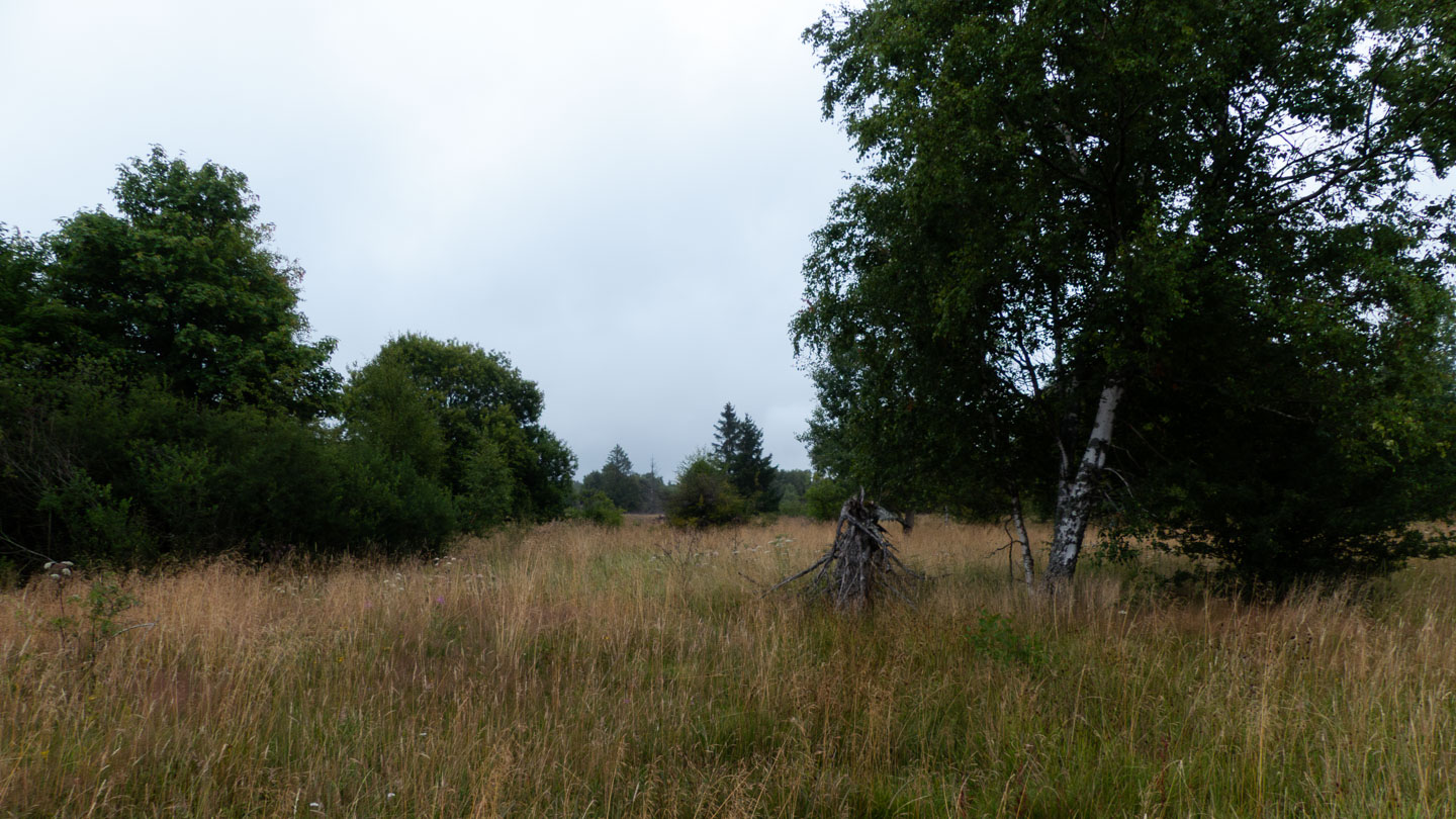 Der Sonntag war regnerisch, also war eine Runde angesagt, bei der der Hauptreiz nicht im Panorama lag. Wir entschieden uns für den Gangolfsberg mit seiner Basaltprismenwand und wollten noch die Rother Kuppe und den Rother Berg mitnehmen, weil auf letzterem der Silbersee liegt. Vormittags blieb es sogar bis auf einen kleinen Schauer ganz am Anfang sogar trocken, so dass doch einige Fotos entstanden. Ab zwölf Uhr wurde es aber dann doch etwas ungemütlicher und wir sparten uns die Rother Kuppe und den Silbersee. Bei der Ankunft an der Thüringer Hütte kam es dann zur Katastrophe: Ich wollte die Hütte von außen fotografieren und hatte im Sucher statt der Hütte ein Rauschen wie früher beim Sendersuchlauf im Fernsehen. Irgendwie war entgegen dem Attribut „spritzfest“ doch ein Wassertropfen ins Kamerainnere gedrungen und das wars halt dann. Beim nächsten Einschaltversuch ging gar nix mehr und das änderte sich auch in den folgenden Tagen nicht mehr wirklich. Da Wandern ohne Fotografieren zwar möglich, aber völlig sinnlos ist (Ausnahme meine eigenen Führungen, bei der ich mich auf die Gruppe konzentriere), war richtig Frust angesagt. Auch gibt es logischerweise vom Rest der Woche keine eigenen Berichte, weil die ohne Bilder erst Recht sinnlos sind. Deshalb folgen jetzt noch ein paar Gedanken zum Rest der Woche: