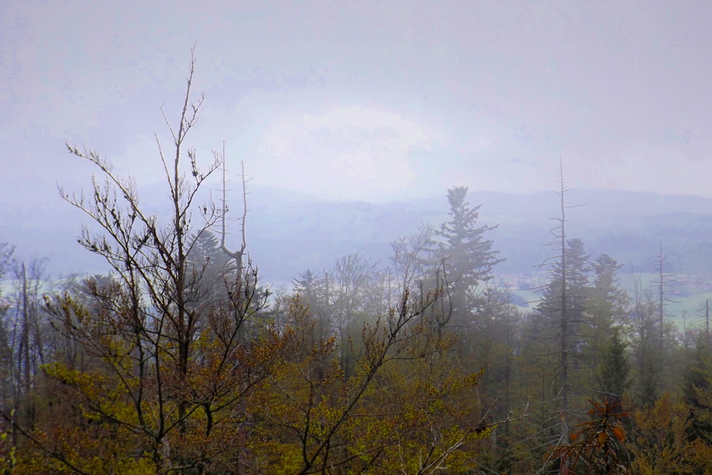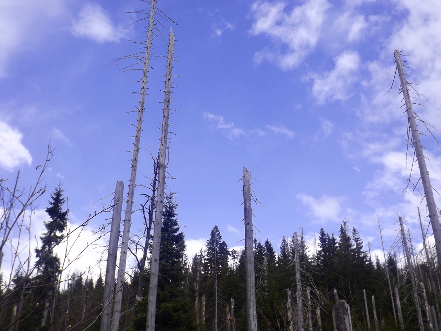 Nach einem schönen Ostermontag war das Wetter für die nächsten Tage eher durchwachsen angesagt. Ich wollte aber unbedingt eine Tour machen und hatte mir den Lusen samt südlichen Trabanten ausgesucht. Dabei wollte ich Teile mehrerer Runden, die ich auf verschiedenen Tourismusseiten entdeckt hatte, miteinander verbinden und als Zuckerl den Südaufstieg zum Lusen und Abstieg durch das einsame Sagwassertal gehen. Nach einer ziemlich unproblematischen Anfahrt war ich sogar ein paar Minuten vor 10 Uhr am Parkplatz Sagwassersäge und konnte nach einem erneuten erzwungenen Wechsel der Kamerabatterien pünktlich losmarschieren.