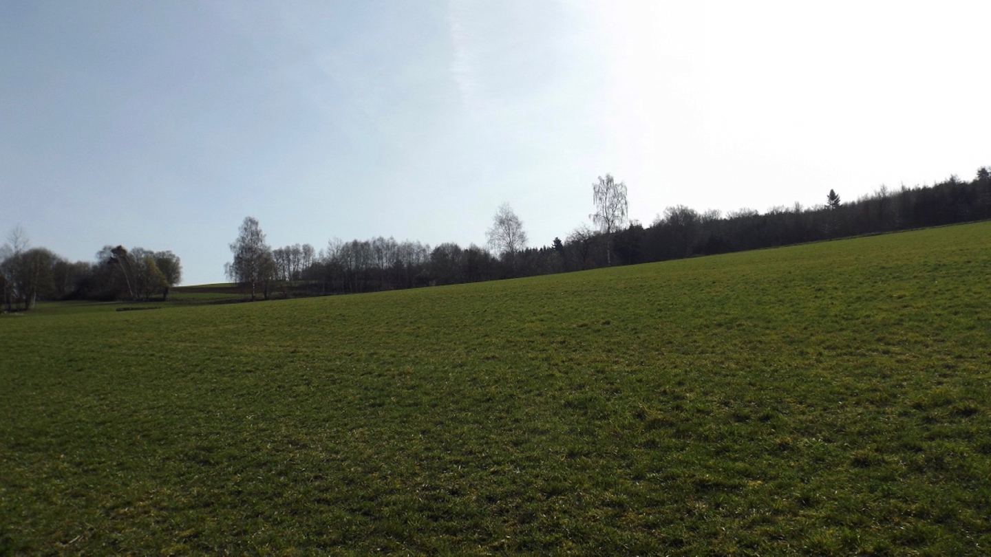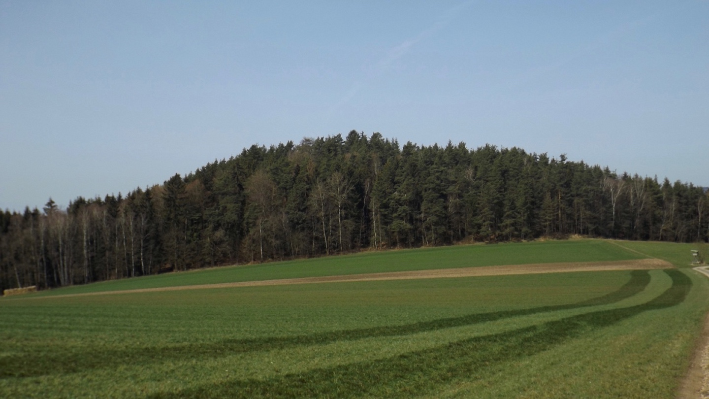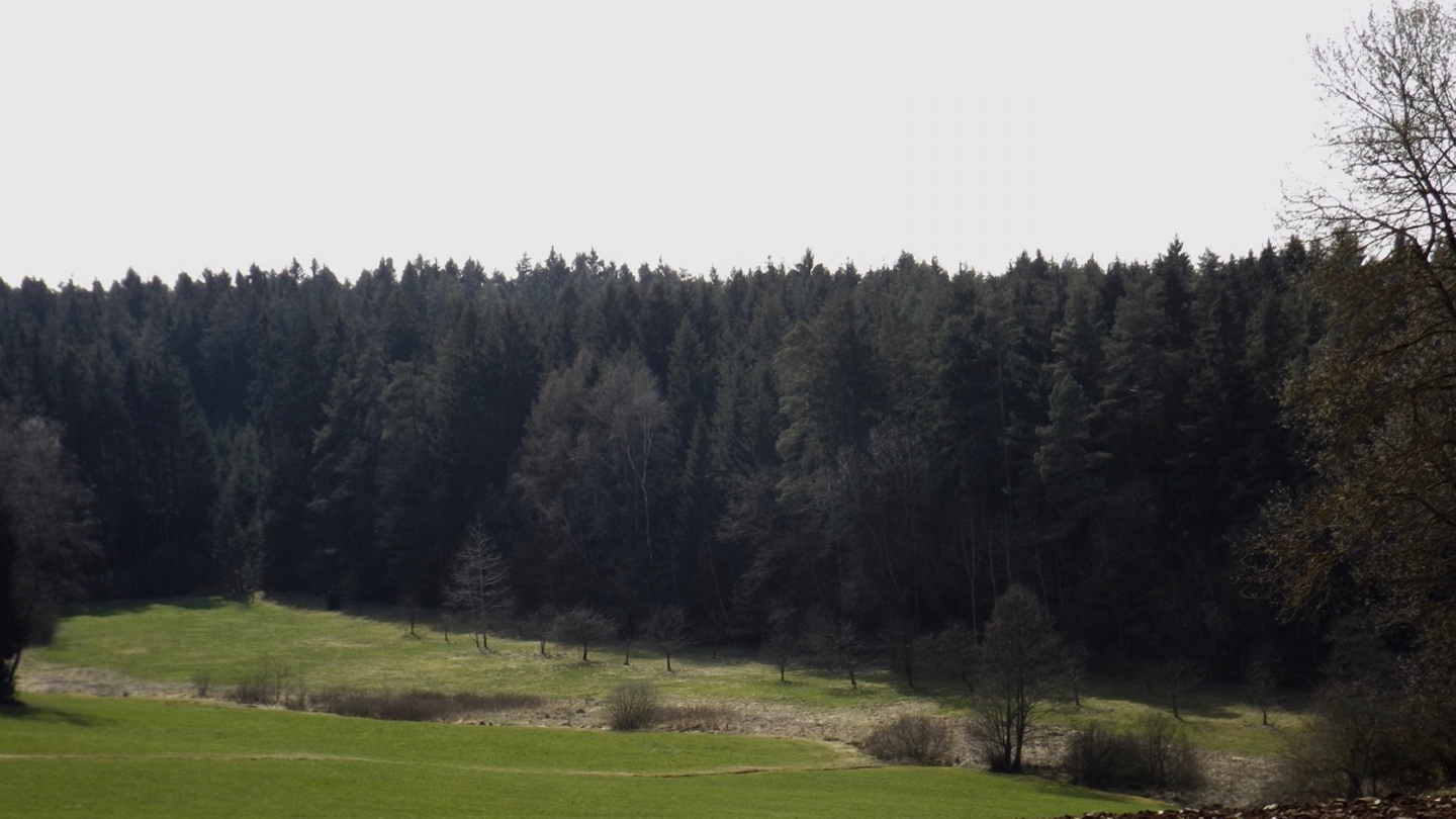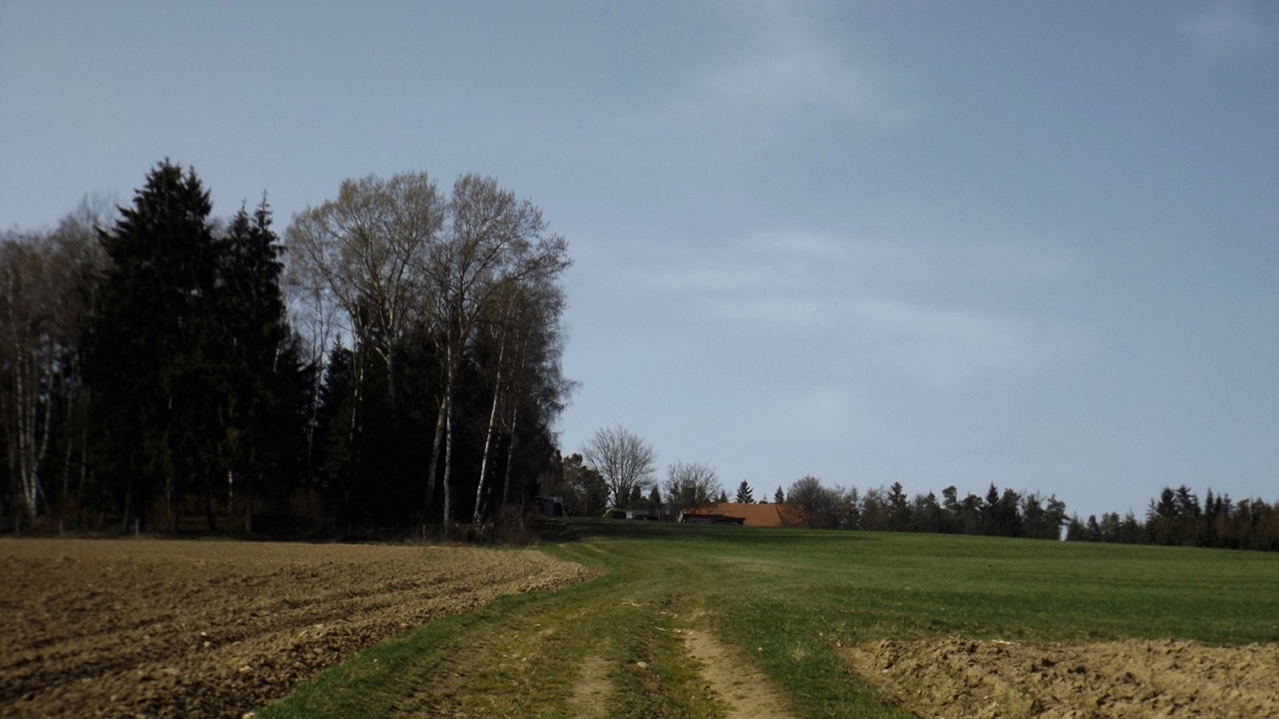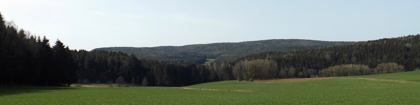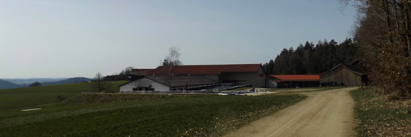 Die Strecke sei an dieser Stelle nur kurz umrissen, denn ganz unten ist ja eine Übersichtskarte angefügt. Es ging von der Mehrzweckhalle hinunter zum ehemaligen Bahnhof und von dort hinaus Richtung Niedermurach und bald den Berg hinauf Richtung Obermurach. Auf halber Höhe folgte die erste Stempel- und Suppenstation, an der wir uns von den Kurzstreckengängern verabschiedeten. Die Absolventen der Zehn-Kilometer-Variante verließen mich dann am Ortseingang von Obermurach, hätte ich gewusst, dass die Strecke kürzer ist, hätte ich wohl der Ruine Haus Murach den Besuch abgestattet, der vor ein paar Wochen mangels Schlüssel nicht möglich war, denn es waren eindeutig Personen im Burggelände zu sehen. So blieb ich auf der langen Strecke, die auf dem Goldsteig über den Kätzlesberg führte. Dieser stand, wenn auch ohne besonders hohe Priorität, auf meiner To-do-Liste in der Open-Office-Datei und ist dort ab jetzt als erledigt markiert. Kurz vor dem höchsten Punkt kam mir eine junge Dame mit zwei Pferden entgegen und wollte von mir wissen, wo man denn hinkommt. Auf meine Auskunft hin drehte sie um und suchte nach einem anderen Weg dorthin, wo sie hinwollte, da ihr der Weg über Obermurach zu weit und zu asphaltlastig war. Sie sollte mir später noch zwei Mal begegnen. Irgendwann endet jeder Kamm und so war es auch dieses Mal, unsere Strecke verließ den Wald beim Hauserlohhof und führte über die Staatsstraße und durch noch mehr Wald hinunter ins Aschatal, wo in Hohenthal die zweite Stempelstelle eingerichtet war. Dort pausierte ich für die mitgebrachte Schinkensemmel (die obligatorischen Apfelvierterln verteilten sich wie immer über den ganzen Tag), bevor es auf der anderen Talseite hinauf nach Zengeröd und über Untereppenried hinauf zum Johannisberg ging. Dieser hat mit seinem Namenskollegen bei Freudenberg eigentlich nur die Existenz einer Wallfahrtskirche gemeinsam, wobei es da bereits einen gewaltigen Altersunterschied gibt. Auf diesem Wegabschnitt gab es ein hin und her in Sachen Überholen mit zwei älteren Herren aus Zirndorf, es blieb aber freundschaftlich. Die Strecke war speziell hier sehr abwechslungsreich, es war für jeden etwas geboten, sogar für die Freunde des gepflegten Gestrüppkampfes. Der Abstieg vom Johannisberg folgte erst einmal dem Kreuzweg, nach der Unterquerung der Ostmarkstraße bog die Strecke jedoch noch einmal ab und führte vorbei an Tressenried, um noch ein paar hundert Meter Länge zu gewinnen. Am Ende plätscherte die Wanderung wieder auf der Bahnstrecke aus, bevor sie durch eine kleine Auenlandschaft zurück zur Mehrzweckhalle führte. Dort bedankte ich mich bei den Organisatoren und verhalf wie bereits erwähnt den Wanderfreunden noch zu etwas Verpflegungsumsatz, bevor ich mich nach Nabburg aufmachte.
