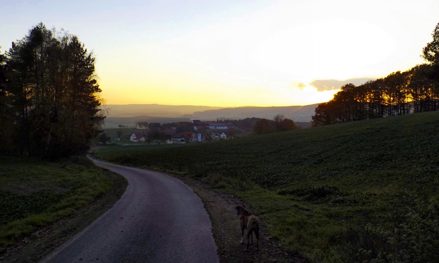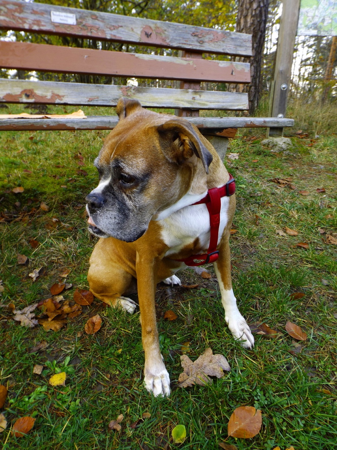Mittlerweile ist es hier meistens ziemlich neblig und nicht gerade einladendes Spaziergehwetter. Daher war es logisch, dass ich die Nebelpause am Sonntagnachmittag für eine kleine Runde nutzen wollte. Das Zeitfenster war kurz, also durfte die Anfahrt nicht weit und die Strecke nicht übertrieben lang sein. Der Kulm bei Nabburg mit seinem Aussichtsturm erfüllte all diese Kriterien selbst bei einem Start in der Gegend um Brudersdorf. Die Herrschaften wählten den Steinberger See für ihren (noch viel kürzeren) Spaziergang, so dass ich die Frage stellte, ob sie Coco mitnehmen würden. Die Reaktion des Reservefrauchens war eher verärgert, was mich dazu bewegte, Coco, die in Erwartungshaltung im Flur hockte, zu fragen, ob sie sieben Kilometer noch schaffen würde. Ihre Antwort war, aufzustehen und zu mir zu traben. Also legte ich ihr das Geschirr an und nahm sie mit.