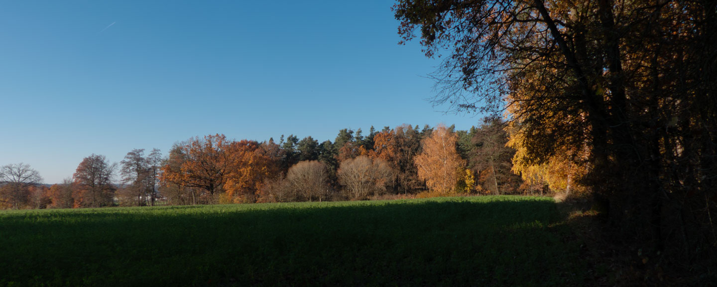Besonderes, was über die Bilder hinaus geht, kann ich für diesen Nachmittag nicht berichten. Die Streckenabschnitte sind lediglich stark unterschiedlich bei den Fotos repräsentiert. Ist aber ganz logisch, weil im November die Lichtverhältnisse im Wald doch extrem schlechter sind als auf der freien Fläche. Dazu kam ab dem Schnaitterhof die rapide sinkende Sonne, wobei ich danach ausschließlich im Holz unterwegs war. Dort kam mir noch ein nicht angeleinter Hund entgegen, dessen Herrchen extrem mit seinem Handy beschäftigt war und somit nichts gegen unsere Anfreundungsaktionen unternehmen konnte. Gut so. OK, es ist im Holz besser, wenn Hunde angeleint sind, aber es gibt ja welche, die wirklich dableiben und nicht jeder Rehfährte nachstöbern. Siehe Hooligan, wenn er sich in einer Pfütze wälzt. Leider ist er in der Galerie nicht enthalten, welcher wir uns jetzt zuwenden.