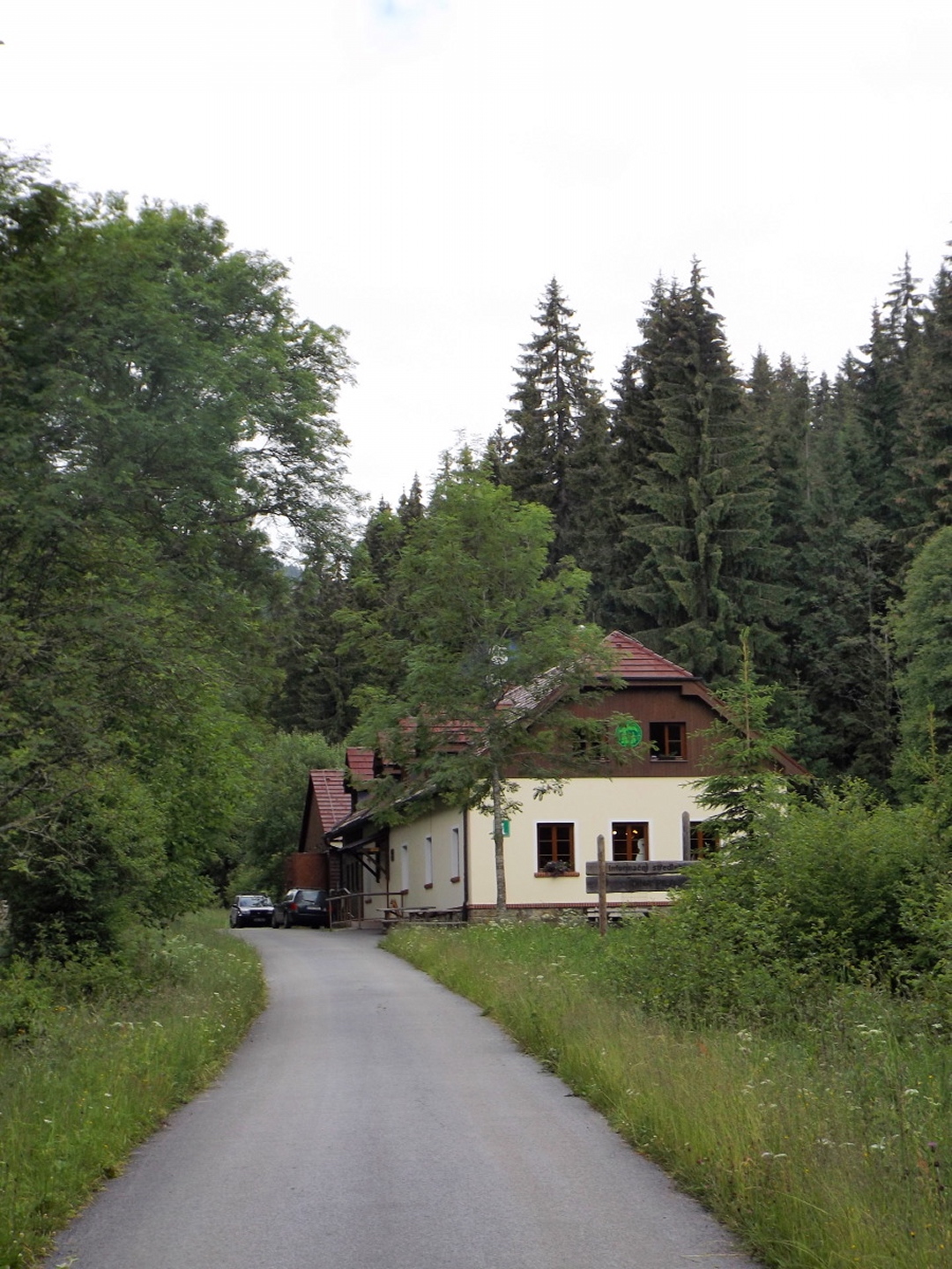 Der langweilige Abstieg hatte zur Folge, dass ich bereits um 16 Uhr, also eigentlich viel zu früh, am Auto war und bei der Einkehr spekulieren musste. Erfolg hatte ich dabei in Lenora im Penzion Restaurace U Grobiána. Dieses hatte ich durchaus auf meiner Liste der möglichen Unterkünfte, warum ich mich für Volary entschied, ist nicht logisch nachvollziehbar. Das Nudelgericht war jedenfalls wieder ziemlich gut, das Schwarzbier ebenfalls, und im Gegensatz zum Restaurace gestern gab es ein Nichtraucherzimmer. Zur Krönung war alles noch einmal etwas günstiger als gestern, was letztendlich dem Wirt / Kellner ein paar Kronen mehr Trinkgeld einbrachte.