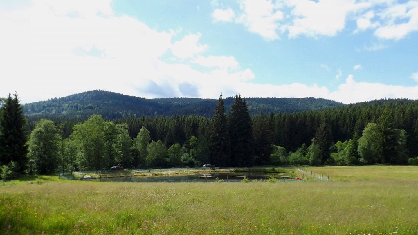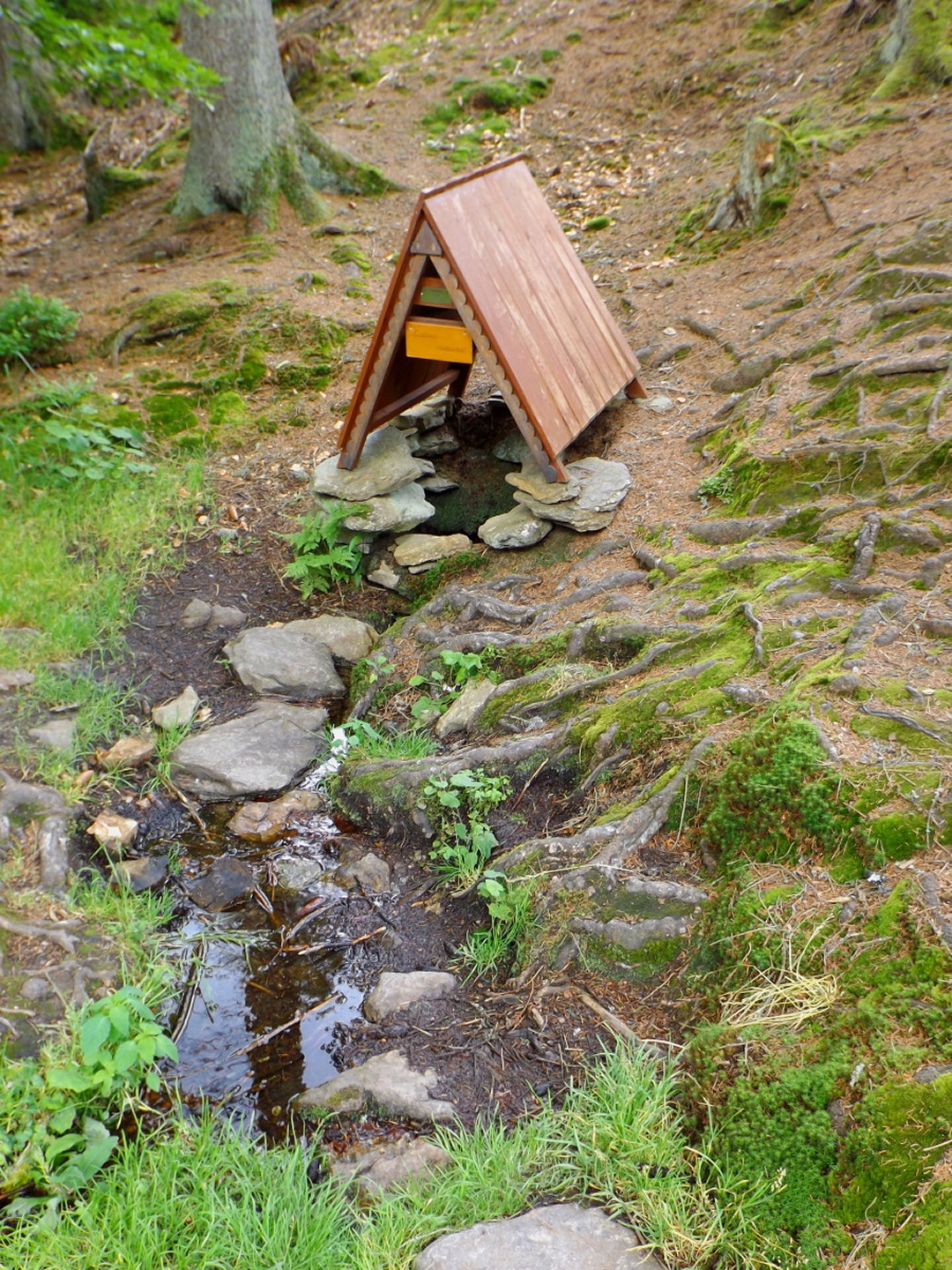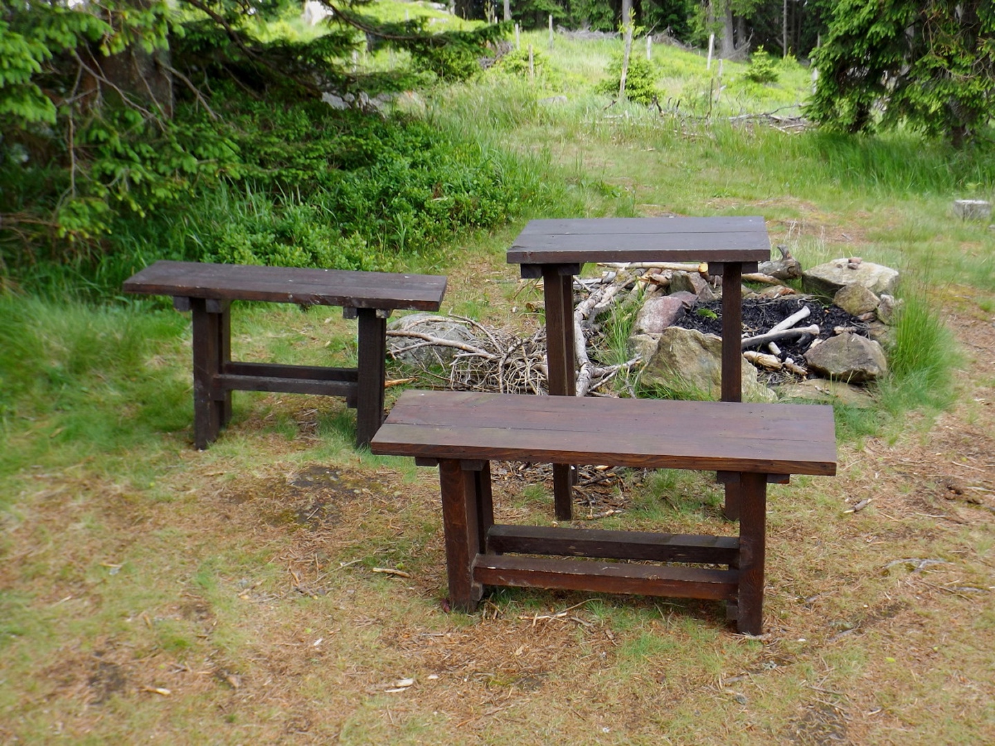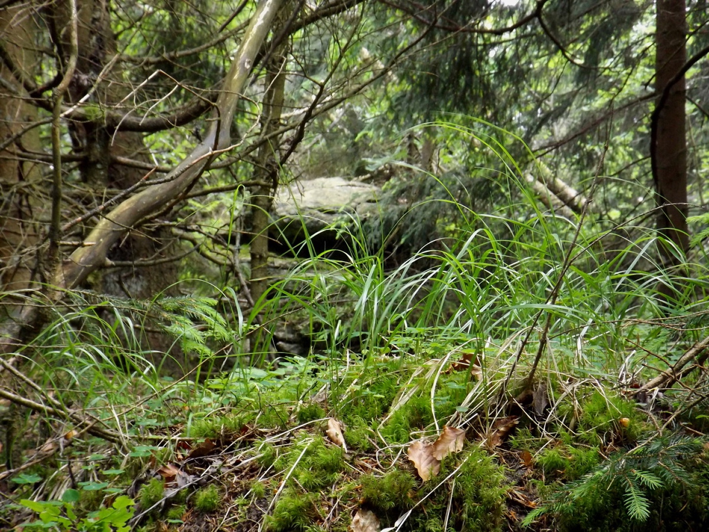 Nach einem liebevoll zubereiteten und sehr reichhaltigen Frühstück, bestehend aus 3 Kipferln, von denen eines mit dem obligatorisch geviertelten Apfel in der Brotzeitbox landete, einem feinen Wurst-Käse-Teller und einem Joghurt, dazu einem Kännchen schwarzen Tee, setzte ich mich ins Auto und fuhr die am Ende doch 14 Kilometer zum Ausgangspunkt, wo ich bereits vor neun Uhr lostigern konnte. Der Parkplatz ist ganz nebenbei gebührenpflichtig und die 50 Kronen Tagesgebühr sind für tschechische Verhältnisse ein ganz ordentlicher Preis, aus deutscher Sicht aber immer noch ziemlich günstig (umgerechnet etwa 1,85 Euro). Erst geht es auf Asphalt unter der Bahnlinie hindurch zum Infozentrum, das bereits geöffnet war. Dumm ist nur, dass alle Infotafeln rein in tschechischer Sprache sind und auch der eigentlich ganz nette Nationalparkmitarbeiter weder deutsch noch englisch spricht. Immerhin konnte das Team vor Kurzem die Existenz des Blauelfen nachweisen und sogar ein Exemplar davon in den Ausstellungsraum bringen. Weiter ging es immer noch auf Asphalt zum Abzweig Amortovka, an dem ich auf einer geschotterten Forststraße ins Naturschutzgebiet hineinwanderte. Ich war früh dran, also ließ ich mir Zeit. Bald erreichte ich den Boubínské jezírko, einen kleinen Triftteich, der viel kleiner ist als die berühmteren Karseen beispielsweie am Künischen Gebirge und auch nicht ganz die Größe des Teiches bei der Höllbachschwelle erreicht. Das ändert aber nichts daran, dass er wunderbar als Spiegel taugt, weshalb auch ein bisserl Infrastruktur zum Rasten vorhanden ist. Ein Teil davon wurde gerade erneuert, was mit etwas Motorgesäge und Gehämmere verbunden war, so dass die Rast kürzer ausfiel als an ruhigeren Tagen. Der kürzere Weiterweg führt rechts am östlichen Seeufer vorbei, ich hatte aber Zeit und außerdem von vornherein die längere Variante geplant, die nach Westen steil den Hang hinaufging, direkt an einem eingezäunten Teil des Urwaldes entlang. 100 Höhenmeter weiter oben mündet dieser Steig in eine Forststraße, die sich bei sanfter Steigung an den Hang schmiegt. Dieser folgte ich vorbei an einem etwas baufälligen Rasthütterl, in dem ich trotzdem Station machte (ich hatte ja Zeit und langsam auch Lust auf das erste Apfelvierterl), bis zum Abzweig Boubínský prales – severozápad (Nordwest), der etwas weiter nördlich liegt als in der Karte eingezeichnet. Hier verließ ich die Forststraße und stieg auf einem schönen Pfad weiter nach oben. Dieser Pfad mündete bald in die nächsthöhere Forststraße, auf der ich zuerst zum Forsthaus mit Terrasse und Kapelle Lovecký zámeček kam und 700 Meter später die Kreuzung Na Křížkách erreichen sollte. Allerdings gibt es etwa auf halber Strecke eine Abkürzung durch den Wald, die zwar nicht markiert ist, aber wohl außerhalb des Naturschutzgebietes oder zumindest direkt auf seiner Grenze liegt, gerade mal 20 Meter lang ist und einen gut frequentierten Eindruck macht. Lange Rede, kurze Aussage: Ich nahm diese Abkürzung. Sie macht natürlich nur Sinn, wenn man den Boubín von Süden her besteigen will, ansonsten geht man besser wirklich bis Na Křížkách. Der Südaufstieg zum Boubín ist ein bisserl uneben, ein bisserl steil und ansonsten total unspektakulär. Ein paar Felsriegelchen hier, jede Menge Bäume dort und am Ende Stufen und ein beidseitiges Geländer, das weniger zum Festhalten notwendig ist als zur Verhinderung von unerlaubten Abschweifern ins Schutzgebiet. Oben auf dem Gipfel gibt es dann neben dem Gipfelfelsen und ein paar Rastbänken den obligatorischen trigonometrischen Punkt, den genauso obligatorischen Wegweiser und einen der in Tschechien weit verbreiteten Aussichtstürme. Aus diesem Grund ist der Boubín auch sehr gut frequentiert, ohne aber überlaufen zu wirken. Der Aussichtsturm hat seinen Namen auch wirklich verdient, lediglich die Bewölkung verdarb die Freude ein kleines bisserl. Immerhin war der Gipfel im Gegensatz zu den Plöckensteinen und dem Smrčina frei, gut dass ich heute nicht auf einem dieser beiden Höhenzüge unterwegs war. Nach dem Abstecher auf den Turm setzte ich mich auf eines der Bankerln und futterte das dritte Kipferl. Um zwölf Uhr setzte ich mich wieder in Bewegung und stieg über die Nordwestseite ab. Den Abzweig zum Srní vrch und Johnův kámen ließ ich links liegen und hob ihn mir fürs nächste Mal auf. Stattdessen stieg ich, jetzt nicht mehr auf dem Waldboden, sondern auf Holzplanken ab bis zur Forstraße, die von Kubova Hut‘ heraufkommt. Dort wandte ich mich aber nicht jenem Dorfe zu, sondern ging in entgegengesetzter Richtung an der Nordostflanke entlang hinunter nach Na Křížkách und steuerte die Kreuzung dieses Mal auch wirklich an. Es gibt dort das fast obligatorische Rasthütterl und einen Zaun mit verschlossenem Tor sowie einem Trepperl für Fußgänger, über das der markierte Weg nach Na Kubrnech führt. Dieser ist bis auf das nochmal eingezäunte Naturschutzgebiet Milešický prales eher langweilig und im letzten Viertel auf einer Asphaltstraße. Auf dieser kam mir auch prompt ein Škoda mit Pferdeanhänger entgegegen. Die Kreuzung Na Kubrnech hat ihren Namen von der Wüstung Kuberna, wobei etwas weiter oben Richtung Bobík ein Ferienhaus gleichen Namens steht. Einen halben Kilometer weiter oben führt der gleiche Zaun über den Sattel und ist mit den gleichen Elementen ausgestattet wie eine Stunde vorher. Hier wird auch der Grund ersichtlich: Das Forstamt will den Wald ungestört bewirtschaften. Beim nächsten Mal folge ich dem Pfad, der außerhalb am Zaun entlang führt, das sind zwei zusätzliche Kammgipfel. Draußen bog ich links ab und folgte der roten Markierung Richtung Volary. Denn dieser Weg führt in angenehmer Steigung zu einem weiter oben gelegenen Sattel, an dem der Gipfelpfad zum Bobík abzweigt. Es gibt vorher einen unmarkierten Weg hinauf zum Gipfel, aber das wusste ich von unten nicht und hatte außerdem keinerlei Eile. Außerdem hätte ic