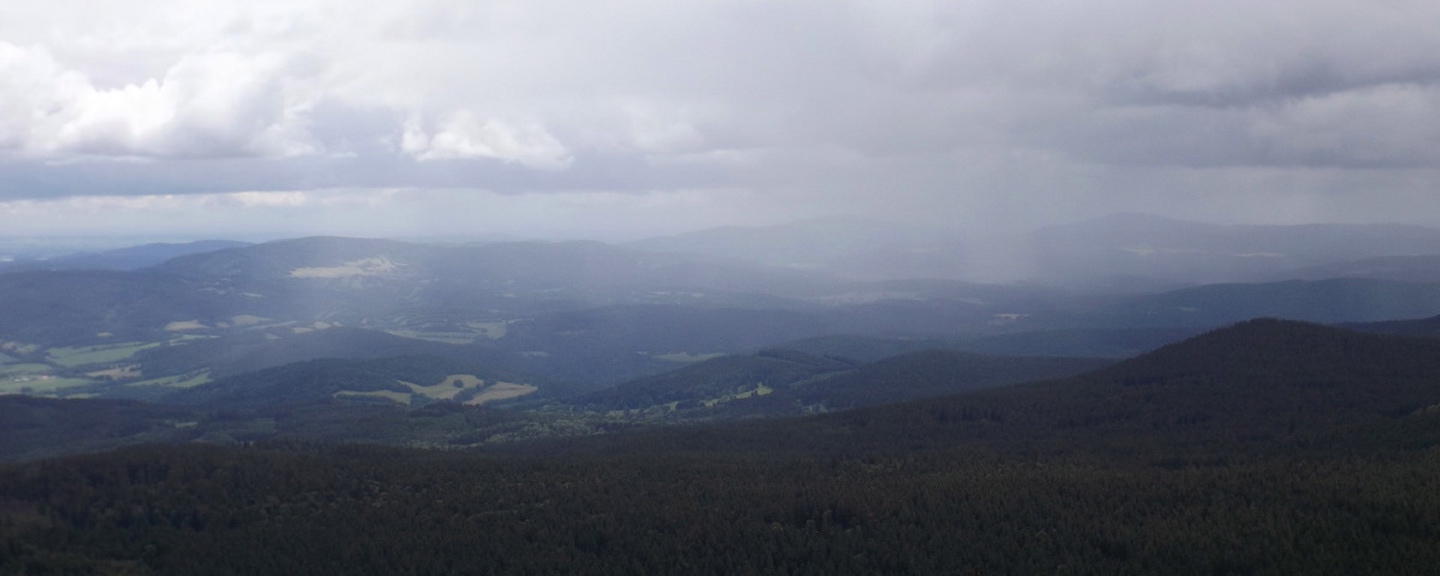 Der Boubín ist der zehnthöchste Gipfel des Böhmerwaldes insgesamt und der höchste, der komplett auf tschechischem Gebiet liegt. Erstmals aufgefallen ist er mir vor gut einem Jahr vom Großalmeyerschloss aus, wo er zusammen mit dem Bobík das Panorama nach Osten dominiert. Bei der Recherche im Internet fand ich heraus, dass der Gipfel mit dem Kamm nach Süden hin zum Pažení das Naturschutzgebiet Boubínský prales (Boubin-Urwald) bildet, von dem es auf mapy.cz sehr eindrucksvolle Bilder gibt. Dazu kommt gleich nach dem Parkplatz nördlich von Zatoň die Nationalparkinfostelle Idina Pila, und das, obwohl der Boubín eigentlich nicht mehr im Narodní park Šumava liegt, sondern im CHKO. All das führte dazu, dass die beiden auf meiner Projektliste ziemlich weit oben standen, allerdings wurden mir im vergangenen Oktober die Tage zu kurz für dieses Projekt, so dass ich es um einen Sommer verschob.
