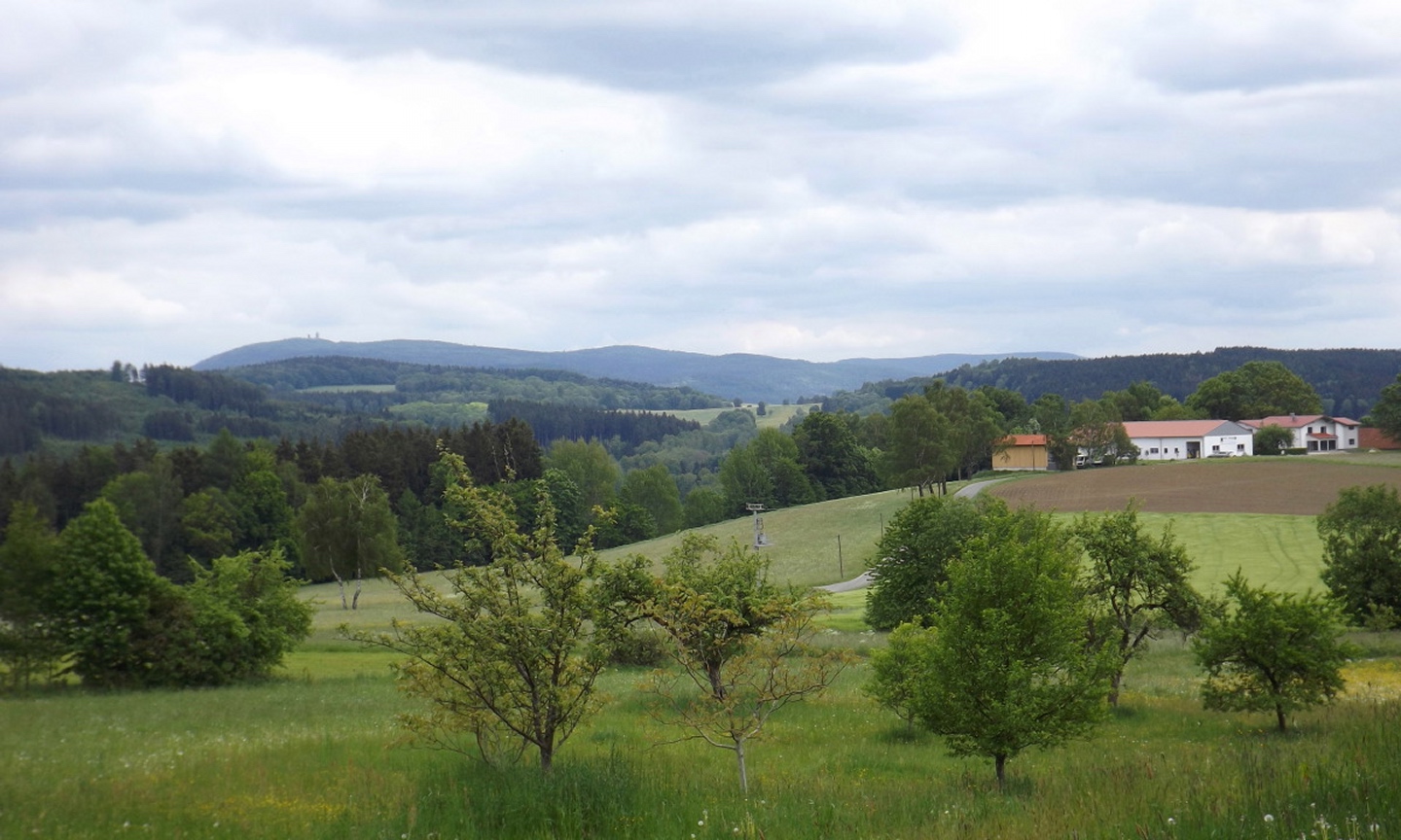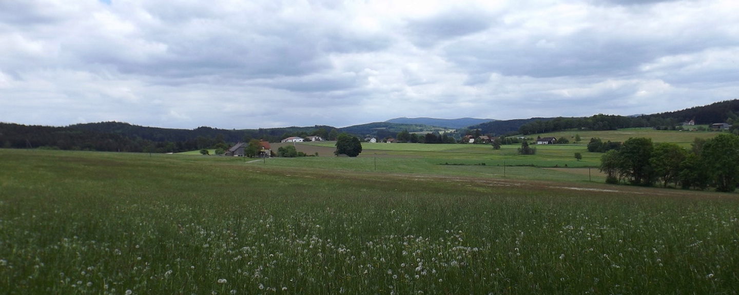 Eigentlich wollte ich ja am Dienstag mit Marga & Co nach Schareben. Als ich jedoch auf dem kurzen Weg zu Marga auf mein Handy schaute, um zu sehen, ob ich rechtzeitig dran war, fand ich zwei Mitteilungen auf der Mailbox, in denen Christa die Tour absagte, weil das Wetter in Schareben so schlecht wäre, dass sich die Anfahrt nicht lohnte. Also drehte ich um, frühstückte gemütlich ein zweites Mal, kümmerte mich um die Wäsche und überlegte, was ich machen könnte. Dabei schaute ich gegen elf Uhr auch auf die Arber-Webcam und sah nur Nebel, womit Christas Entscheidung definitiv richtig war. Anschließend wollte Coco auch noch versorgt werden, so dass ich mich dafür entschied, mich gleich im Raum Tiefenbach umzuschauen, wo wir am 19. Juli mit dem OMV herumstreifen werden, und nicht erst nächste Woche. Konkret ging es mir darum, den Abschnitt der Route, der nicht im Tourenführer von Eva Krötz enthalten ist, auf Existenz und Begehbarkeit der Grenzübertrittsstelle zu überprüfen. Damit es sich lohnte, fuhr ich ein paar Kilometer weiter nach Norden und startete am Grenzübergang Schwarzach.