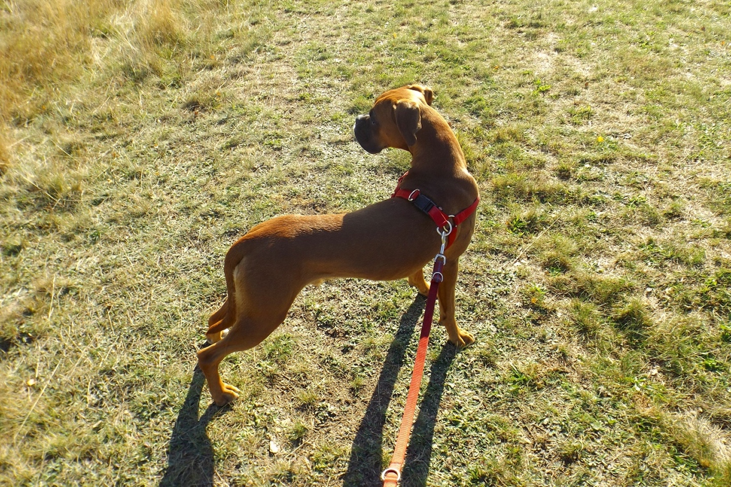 Dummerweise waren die ersten sieben Fotos komplett unbrauchbar, weil ich einen Fleck auf der Linse übersehen hatte. Karlie folgt eigentlich recht gut, das Hauptproblem ist halt die Zieherei an Leine oder Jacke, wenn ihm langweilig ist. Das nächste Mal nehme ich Spielzeug mit, vielleicht klappt auch das dann.