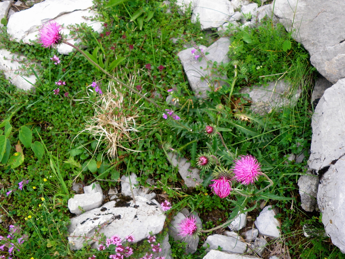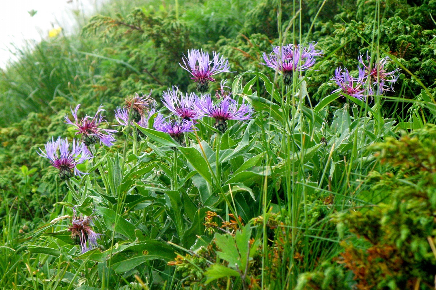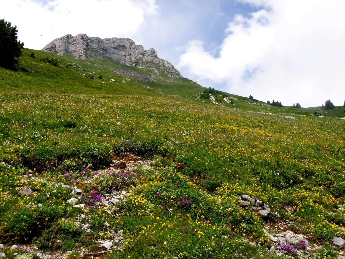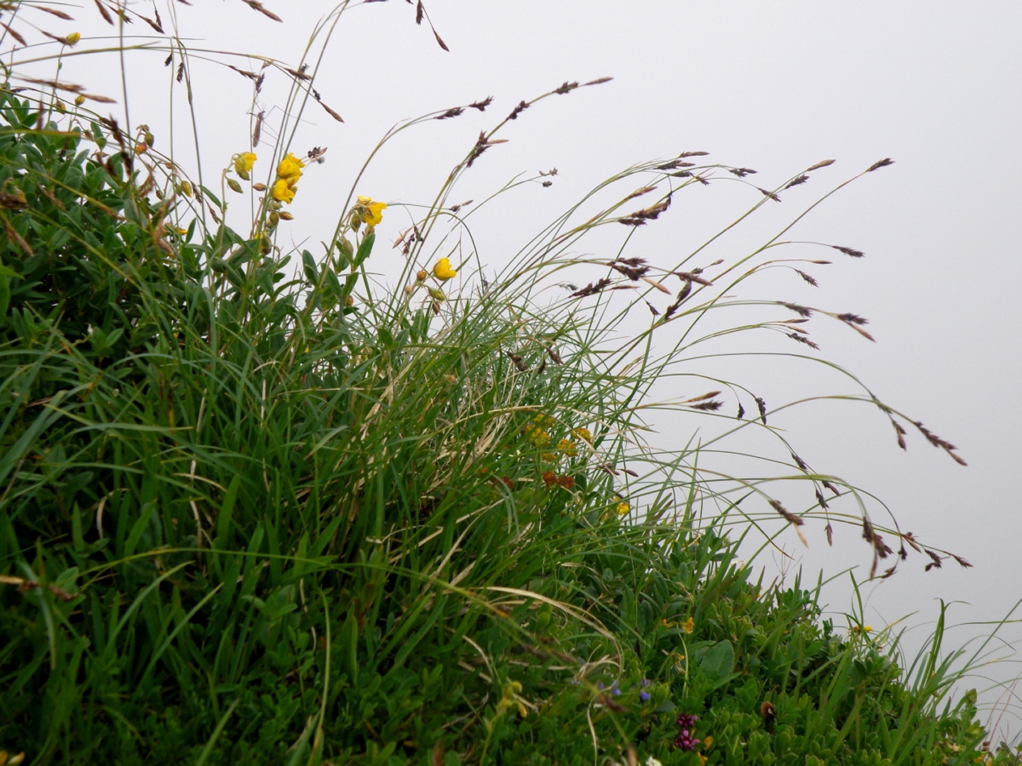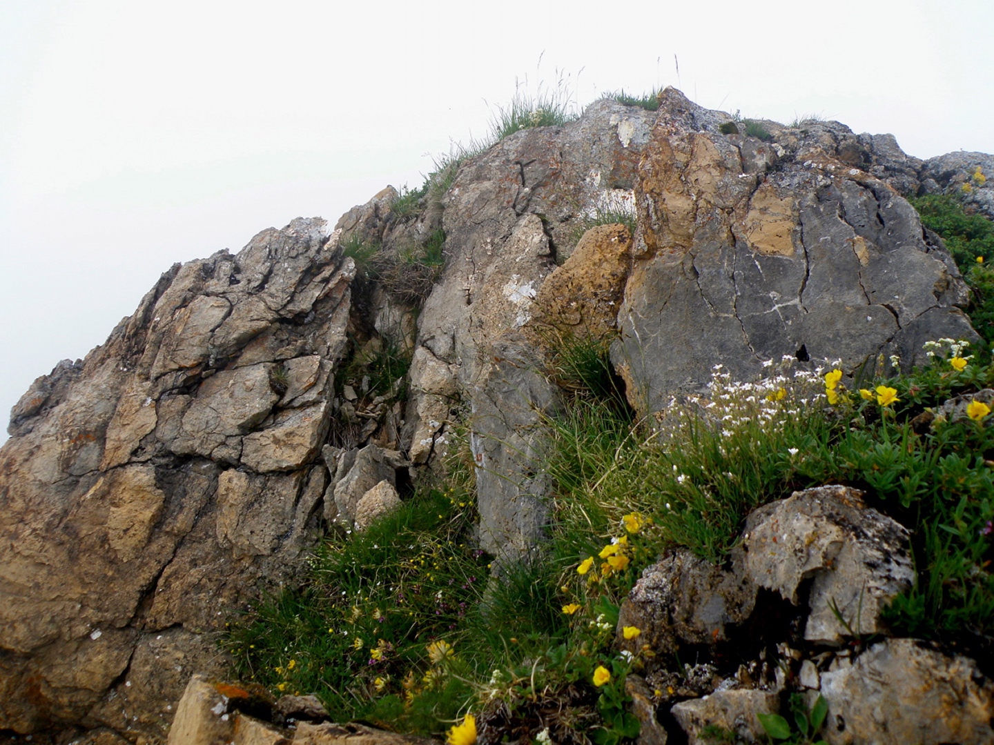 Der Weg ist eigentlich ausführlichst auf Hikr.org beschrieben und folgt eigentlich immer der Fahrstraße. Man muss nur bei Mittler Stafel aufpassen, dass man richtig abbiegt (durch den Alphof). Bis zum Fronalppass folgte ich Renaiolo, dort bog ich nach Hineinfühlen in meinen Bauch aber nicht links zum Fronalpstock, sondern rechts Richtung Schilt ab. Die Ostflanke des Färistocks hat unter dem Winter etwas gelitten, an zwei Stellen war der Pfad durch Lawinen oder Muren ganz ordentlich beschädigt. Je näher ich dem Breitfeld kam, umso dicker wurde der Nebel, aber ich wollte trotzdem einen Gipfel haben und versuchte, von Punkt 1956 aus den Südgrat des Färistocks. Wären ja nur 60 Höhenmeter gewesen. Am ersten größeren Gratgipfelchen / Felsblock wurde mir die Sache aber zu heikel, außerdem verfiel ich der irrigen Meinung, bereits nach 35 Höhenmetern den Gipfel erreicht zu haben (mein Kartenausdruck 1:25000 war zu weit nördlich angesetzt, um auch den Nüenchamm mit auf dem Blatt zu haben). Jedenfalls setzte ich mich unterhalb des Felsens ins Gras, mampfte ein Butterbrötli mit Schokistücken und machte mich wieder auf den Weg hinab. Nach etwas Blindflug in der Senke südlich des Färistocks erreichte ich dann auch wieder den Pfad und nach wenigen Metern den Abzweig Breitfeld. Von dort ging es auf dem gut markierten und trotz Nebels nicht zu verfehlenden Weg durch den Heuboden zurück nach Mittler Stafel und auf der Fahrstraße zum Naturfreundehaus.