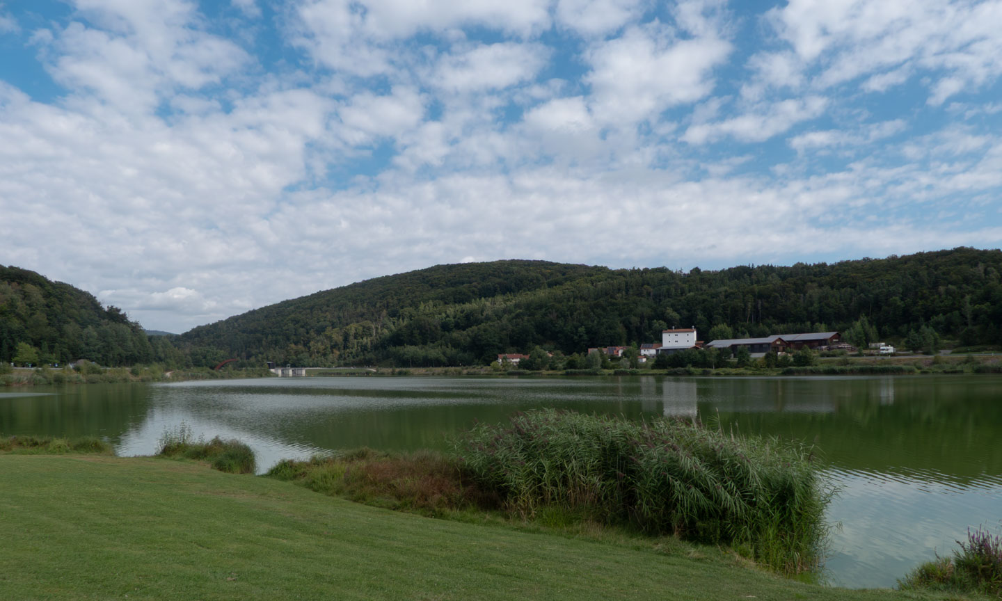 Ich hatte beim Chodenfest in einem Laden eine schöne Handtasche entdeckt. Da ich aber eine Halbe Bier in der Hand hielt und die nicht exen wollte, konnte ich sie nicht sofort mitnehmen. Also stand für die letzten Ferientage noch ein Ausflug nach Domažlice an. Da traf es sich gut, dass der Tank fast leer war und ich schon seit zwei Monaten keine Oblaten mehr hatte. Auch wollte ich einmal das Brauereirestaurant testen. Um das alles zusätzlich zu rechtfertigen, fing ich den Tag mit der ebenfalls lange überfälligen Umrundung des Drachensees an, selbstverständlich inclusive der noch überfälligeren Besteigung der Bayernwarte.