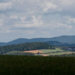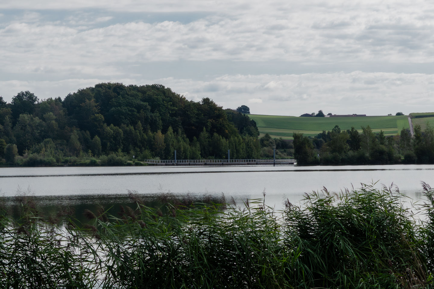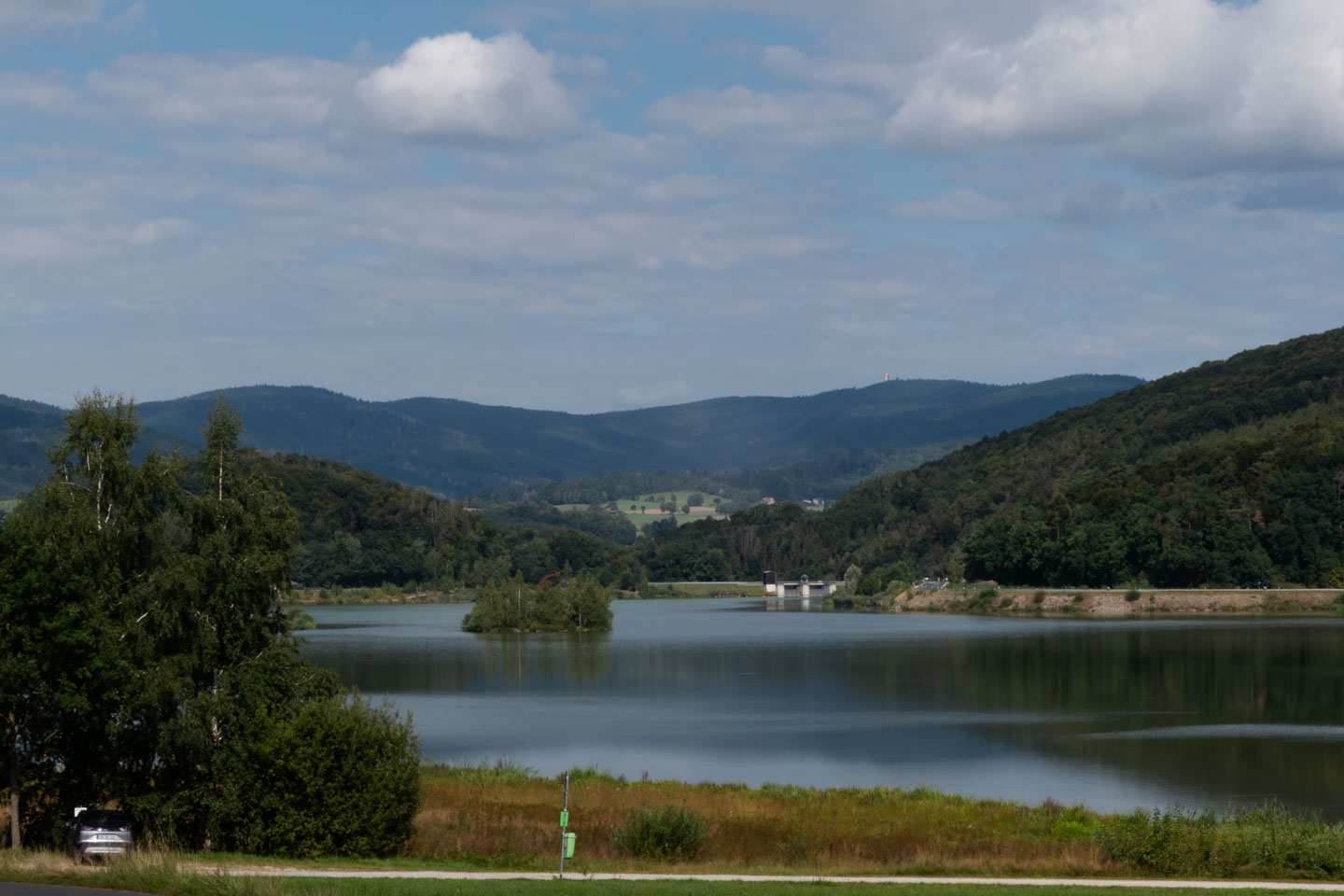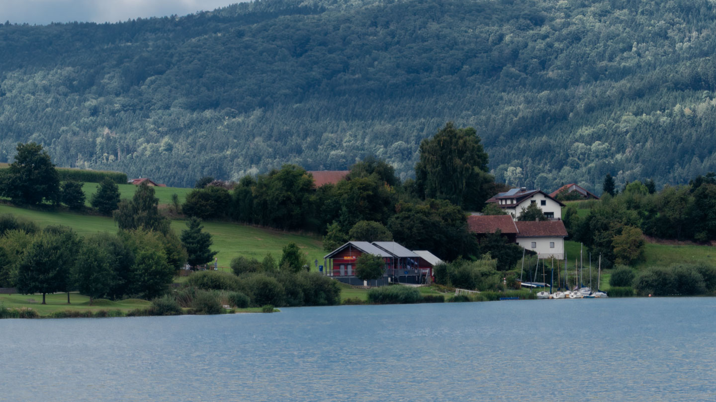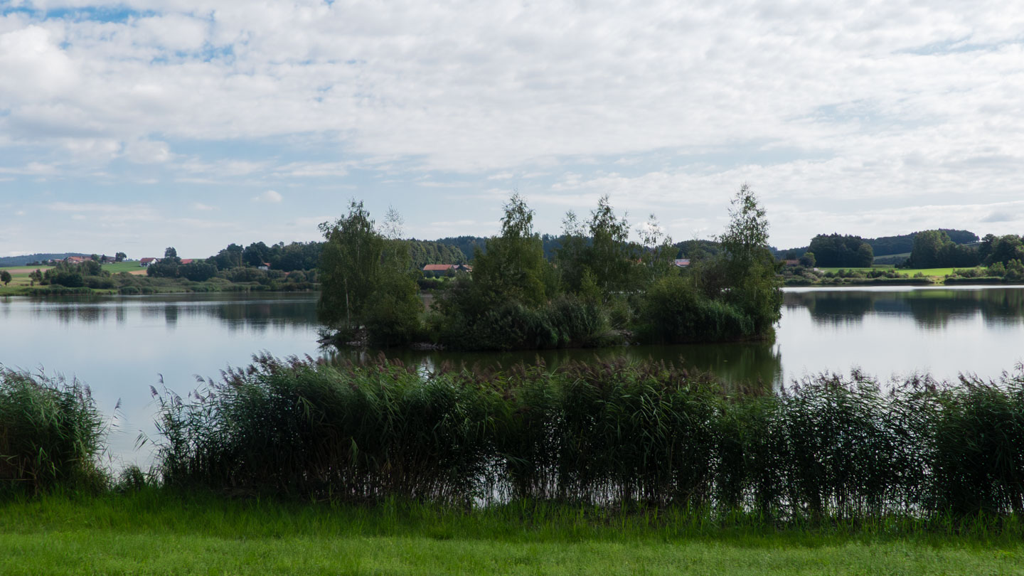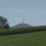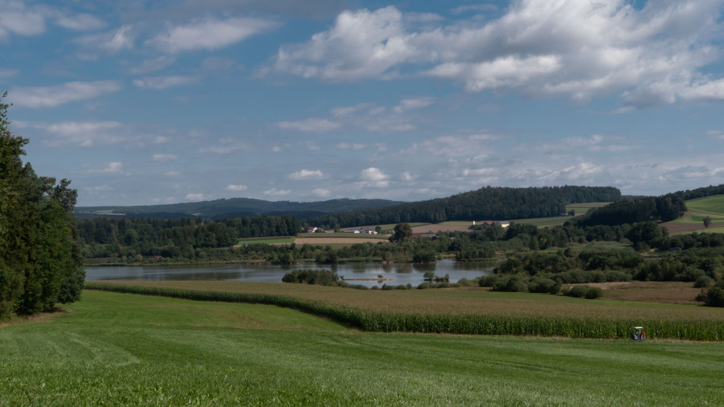 Um es kurz zusammenzufassen: Der Tag war nach dem sechsten Foto unkaputtbar als genial gelaufen. Das war nämlich das erste von gefühlt fünfzig vom Čerchov. Ich hätte locker eine eigene Čerchovgalerie in diesen Bericht stellen können, aber das wäre bei aller Liebe zu diesem tollen Berg ein bisserl langweilig gewesen. Denn der Drachensee bietet neben seinen Naturschönheiten noch wunderbare Blicke auf diverse andere Bergprominenz, insbesondere den Osser und den Hohen Bogen. Aber auch Arber und Gibacht können bewundert werden, da habe ich den Dieberg jetzt gar nicht genannt, obwohl er den Blick vom Südwestufer total dominiert. Nachgeholt. Überhaupt ist des Südwestufer um einiges aussichtsreicher als die andere Seite, dafür ist dort die Pflanzenwelt etwas vielfältiger. Etwas oberhalb von Kleinaign gibt es auch einen Aussichtsturm, der zeigt, dass vier Meter Plattformhöhe oft ausreichen, um über den Mais drüberzusehen und die wichtigen Sachen genießen zu können. Das geht natürlich nur, wenn rundherum Äcker sind und kein Holz. Damit wären wir beim zweiten Aussichtsturm des Tages, der Bayernwarte. Er ist hoch genug, um noch über die Bäume hinauszuragen, hat aber das gleiche Handicap wie der Böhmerwaldturm: dreckige Scheiben. Ich kann zwar mit CameraRAW (einem Hilfsprogramm von PhotoShop) da einiges korrigieren, aber es ist um einiges mühsamer als wenn die Scheiben sauber oder gar nichtexistent wären. Ist aber so wie es ist, also lasse ich es bei dieser Bemerkung. Der Weg hinauf ist um einiges weniger anstrengend als erwartet, aber auch wenig spektakulär. Ausnahmen sind eigentlicher die Überquerung des Tunnelportals unserer geliebten Bahnstrecke von Schwandorf nach Pilsen und die Kapelle ein paar Meter oberhalb. Die Bergwachthütte am Nordhang ist hübsch, das Denkmal davor angemessen, aber leider nur unregelmäßig geöffnet. War aber egal, weil ich ja die Brauereiwirtschaft testen wollte.