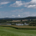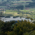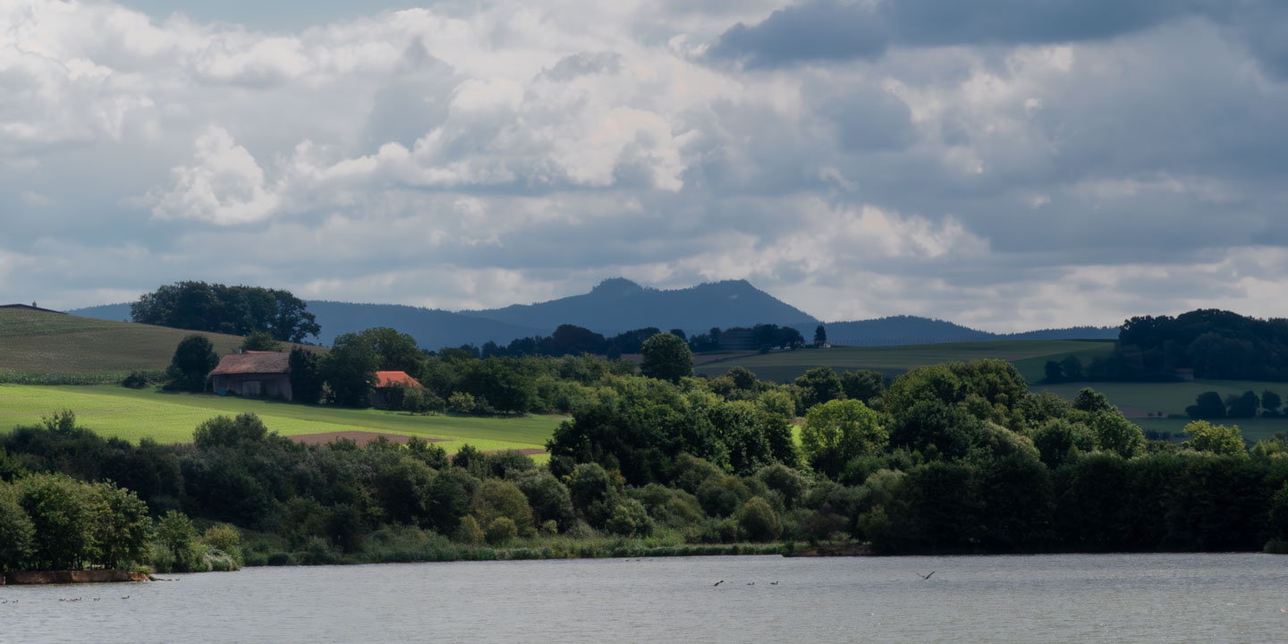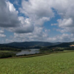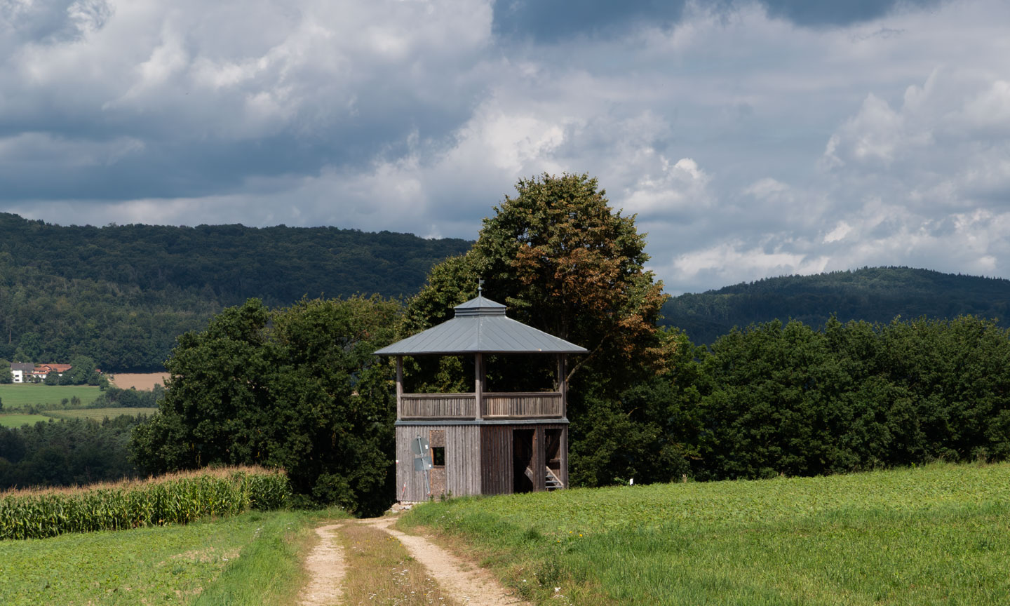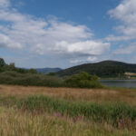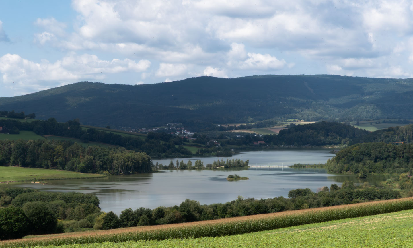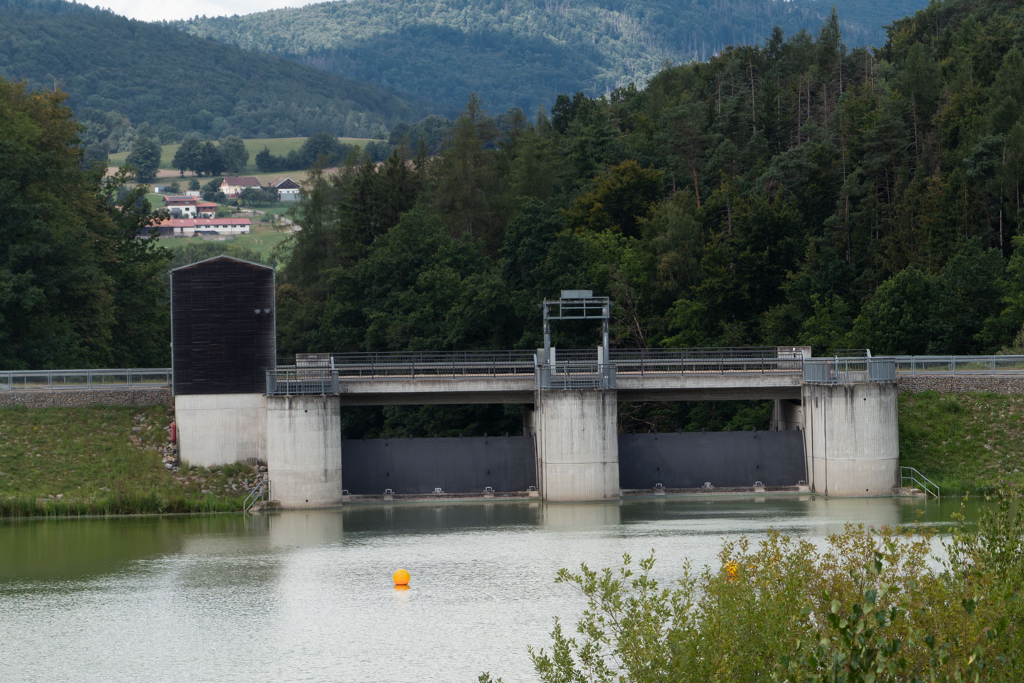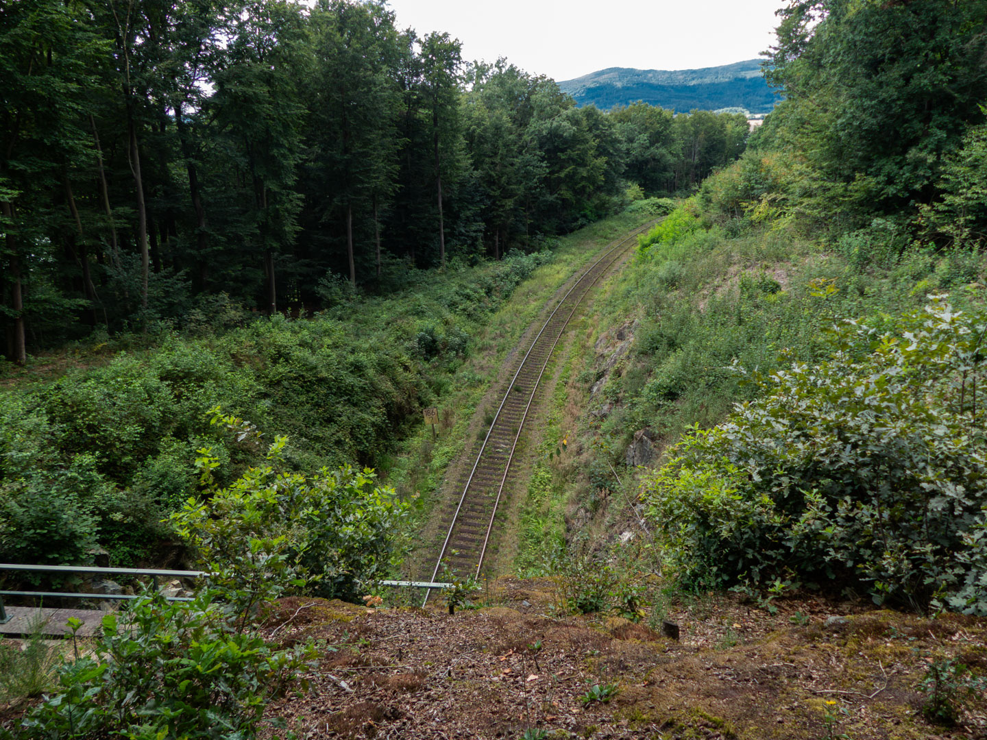Um es kurz zusammenzufassen: Der Tag war nach dem sechsten Foto unkaputtbar als genial gelaufen. Das war nämlich das erste von gefühlt fünfzig vom Čerchov. Ich hätte locker eine eigene Čerchovgalerie in diesen Bericht stellen können, aber das wäre bei aller Liebe zu diesem tollen Berg ein bisserl langweilig gewesen. Denn der Drachensee bietet neben seinen Naturschönheiten noch wunderbare Blicke auf diverse andere Bergprominenz, insbesondere den Osser und den Hohen Bogen. Aber auch Arber und Gibacht können bewundert werden, da habe ich den Dieberg jetzt gar nicht genannt, obwohl er den Blick vom Südwestufer total dominiert. Nachgeholt. Überhaupt ist des Südwestufer um einiges aussichtsreicher als die andere Seite, dafür ist dort die Pflanzenwelt etwas vielfältiger. Etwas oberhalb von Kleinaign gibt es auch einen Aussichtsturm, der zeigt, dass vier Meter Plattformhöhe oft ausreichen, um über den Mais drüberzusehen und die wichtigen Sachen genießen zu können. Das geht natürlich nur, wenn rundherum Äcker sind und kein Holz. Damit wären wir beim zweiten Aussichtsturm des Tages, der Bayernwarte. Er ist hoch genug, um noch über die Bäume hinauszuragen, hat aber das gleiche Handicap wie der Böhmerwaldturm: dreckige Scheiben. Ich kann zwar mit CameraRAW (einem Hilfsprogramm von PhotoShop) da einiges korrigieren, aber es ist um einiges mühsamer als wenn die Scheiben sauber oder gar nichtexistent wären. Ist aber so wie es ist, also lasse ich es bei dieser Bemerkung. Der Weg hinauf ist um einiges weniger anstrengend als erwartet, aber auch wenig spektakulär. Ausnahmen sind eigentlicher die Überquerung des Tunnelportals unserer geliebten Bahnstrecke von Schwandorf nach Pilsen und die Kapelle ein paar Meter oberhalb. Die Bergwachthütte am Nordhang ist hübsch, das Denkmal davor angemessen, aber leider nur unregelmäßig geöffnet. War aber egal, weil ich ja die Brauereiwirtschaft testen wollte.