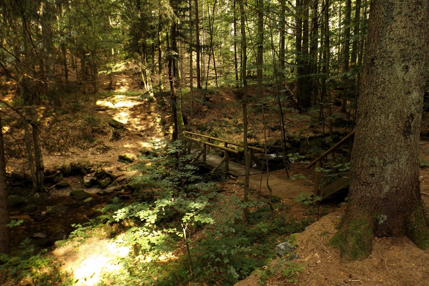 Ich hatte für den ersten AKW-Tag nach dem 15. Juli als große Nationalparktour bereits letztes Jahr geplant, von der Fredenbrücke durch das Teufelsloch zur Glasarche aufzusteigen, zur Blauen Säule hinüberzuqueren und auf dem Grenzsteig zum Rachel zu gehen. Die Rückkehr sollte über die Racheldiensthütte erfolgen, wo ich einkehren wollte.