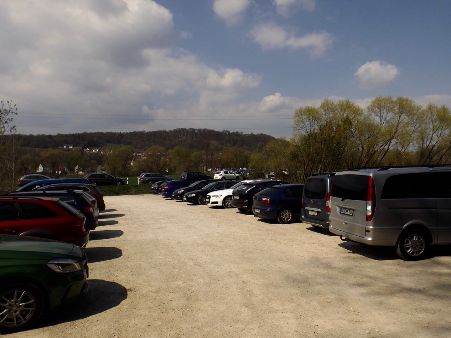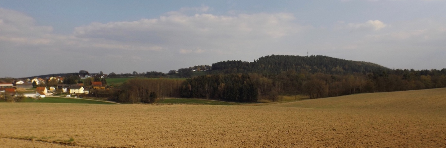 Bei AKW trafen wir uns also zur üblichen Zeit am Volksfestplatz und fuhren über Münchshofen in die Höllohe, weil Erwin diese Variante für einfacher hielt. Dort warteten bereits Jan und Waltraud auf uns und halfen bei der Suche nach Parkplätzen für fünf Autos, was wegen des AKW gar nicht so einfach war. Bei der anschließenden Einführung durch Jan mussten wir uns gleich zwei mal blöd anreden lassen, weil wir angeblich im Weg standen. Es gibt scheinbar neben der bei der Waldwipfelpfad-Lusen-Tour im vergangenen November vorgestellten Hoppla-jetzt-komm-ich-Touristen auch Hoppla-jetzt-komm-ich-Einheimische. Es folgten nach der nicht ganz ungefährlichen Überquerung der ehemaligen B15 sechs relativ eintönige Kilometer auf Forststraßen durch den Samsbacher Forst. Die Farbtupfer auf diesem Abschnitt waren die Ersteigung der Abraumhalde der Katzdorfer Tongrube mit wunderbarer Über-, aber null Aussicht und die Schnapspause beim Weißen Kreuz, welches vom Lauftreff Teublitz an seinen Ort gestellt wurde. Die tausend Frösche, von denen Waltraud geschwärmt hatte, waren hingegen nicht mehr im Weiher südlich von Reuting anzutreffen. Kurz darauf wartete Erwin mit dem Auto, um einen zweiten Schnaps auszugeben und die weniger fitten Teilnehmer zur Einkehr zu fahren, während sich die Gruppe auf die kürzere, dafür aber interessantere der beiden Restwegvarianten machten. Diese führte uns unvermittelt auf den Hauptzugang zur Ruine Stockenfels und damit aus der Ruhe ins bunte Treiben, weil der Kastellaun mal wieder das Burgtor aufgesperrt hatte und damit genauso viele Ausflügler anzog wie die Höllohe. Stefan und sein Sohn bogen sogar zur Burg ab, um irgend etwas mit dem Kastellaun auszuhandeln. Ab jetzt wurde der Weg sogar aussichtsreich, was ich noch zur Aufbesserung der Fotoquote nutzte. Außerdem stellte sich heraus, dass ich einen der Teilnehmer eigentlich schon seit vielen Jahren kenne, wir hatten aber seit bestimmt 25 Jahren keinen Kontakt mehr gehabt und er war durch ein Baseballkäppi so gut getarnt, dass ich ihn nicht auf Anhieb erkannt hatte. Bei der Einkehr genehmigte ich mir neben dem Dunklen eine Pizza Modena, die nicht nur exzellent schmeckte, sondern auch so riesig war, dass ich bis zum Frühstück nichts mehr brauchte.
