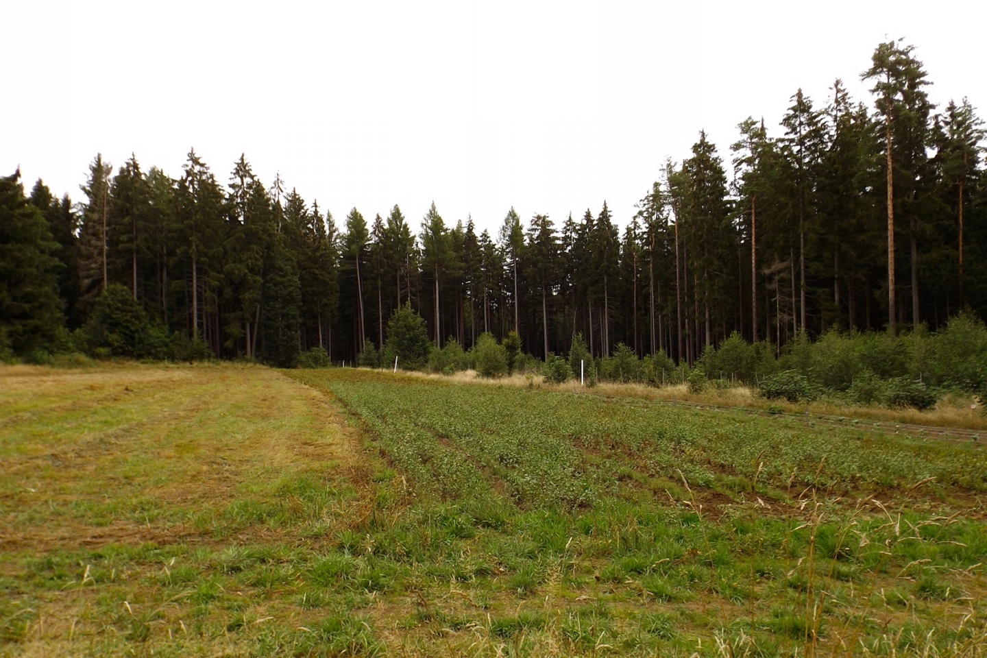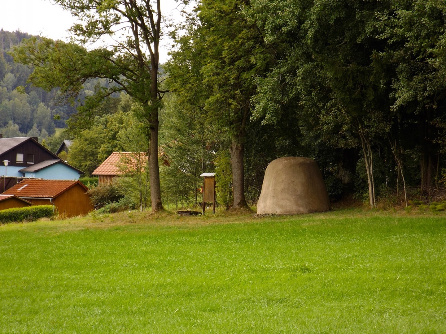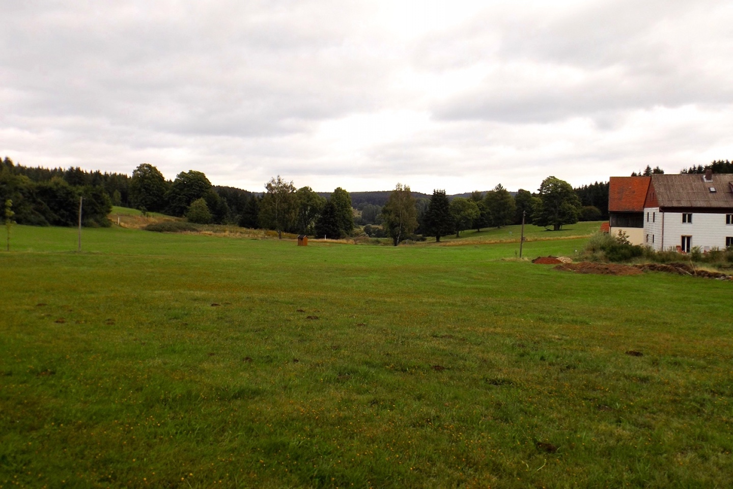 Also hatten wir in Schwandorf die Qual der Wahl und entschieden uns, beides zu verbinden. Immerhin liegt Pfreimd auf dem Weg nach Georgenberg und der Zweigverein Schwandorf war noch nie bei der Festmesse dabei, sondern bisher immer mit dem Zug nach Nabburg gefahren, von dort aus zum Berg gewandert und am frühen Nachmittag angekommen. Dieses Mal fuhren wir eben rechtzeitig zur Messe mit dem Auto hinauf, setzten uns nach der Messe zum Frühschoppen und Mittagessen in einen der Festpavillions und fuhren kurz nach 13 Uhr weiter nach Georgenberg. Dort war ebenfalls schon ein Festzelt vor dem Vereinslokal aufgebaut, in dem es nach der Wanderung, die ich eher als Spaziergang bezeichnen würde, noch ein gemütliches Beisammensein mit Musik geben sollte. Die Route war so gewählt, dass sie einerseits nicht langweilig, aber eben auch von den älteren Teilnehmern zu schaffen war und führte vorbei an Neukirchen zu St. Christoph nach Neudorf zum Grenzsteig. Leider blieben wir nur etwa 150 Meter auf diesem und bogen dann ab zur Kapelle am Wasserbehälter, wo Manfred Janker den sicher 150 Teilnehmern das Panorama erklärte. Weiter ging es über den Troidelberg zur Mühle Gehenhammer, die dem OWV Georgenberg gehört und es Schnaps gab. Nach einem Viertelstünderl ging es dann auf einer anderen Route zurück zum Festzelt. Unterwegs entdeckte Waltraud noch ein paar Schwammerln und nahm auch einen Teil davon mit. Im Festzelt gab es noch eine Brotzeit und das eine oder andere Bier, bevor wir kurz nach 18 Uhr wieder zurückfuhren.