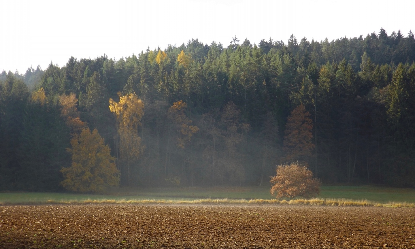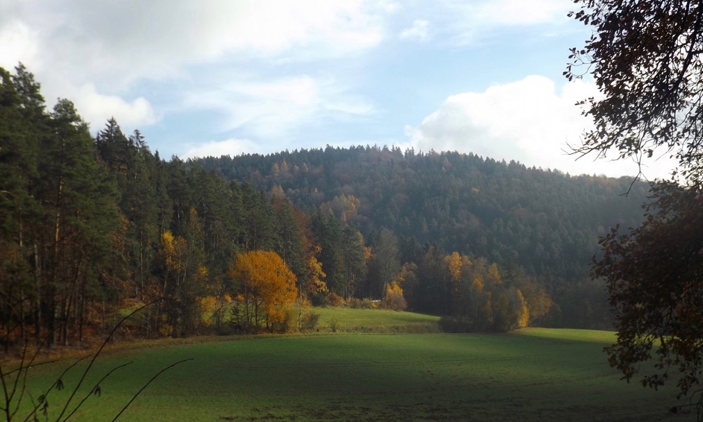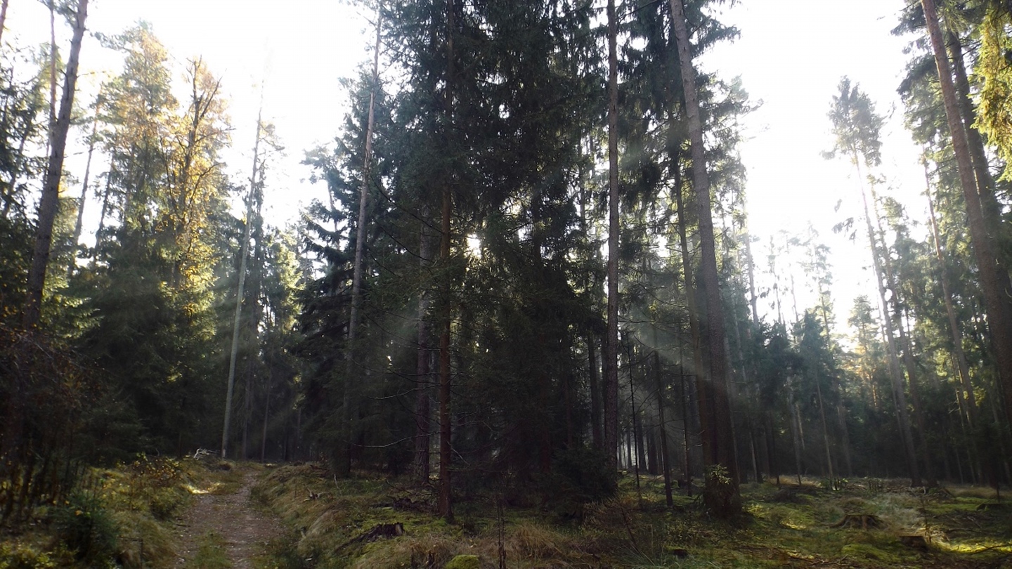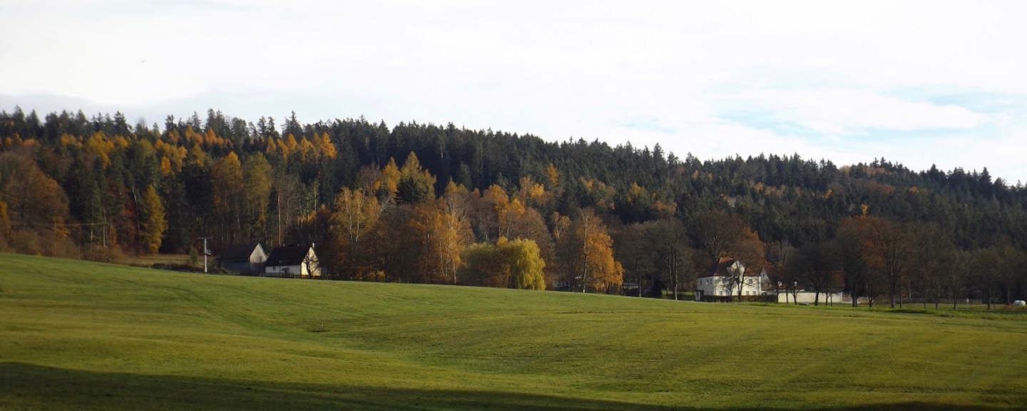 Eigentlich wollte ich ja schon vor zwei Wochen die Strobelhütte besuchen und auf dem Rückweg bei der Tea time in Nabburg aufschlagen. Dieser Plan scheiterte an meinem Ausrutscher auf dem Čerchov und der Unmöglichkeit, am nächsten Tag Auto zu fahren. Mittlerweile geht das wieder, was die vorherige Tour bewies, und ich musste nur auf einen Wochenendtag mit zumindest OWW (Ordentlichem Wanderwetter) warten. Als ich aufstand, sah ich nur Nebel, aber nach dem Frühstück war dieser schon wesentlich heller und ich fuhr los. Ab Nabburg löste sich der Nebel komplett auf, und als ich kurz nach halb elf am Hopfenweg in Weiden ankam, wurden auch die höheren Wolkenschichten immer weniger.