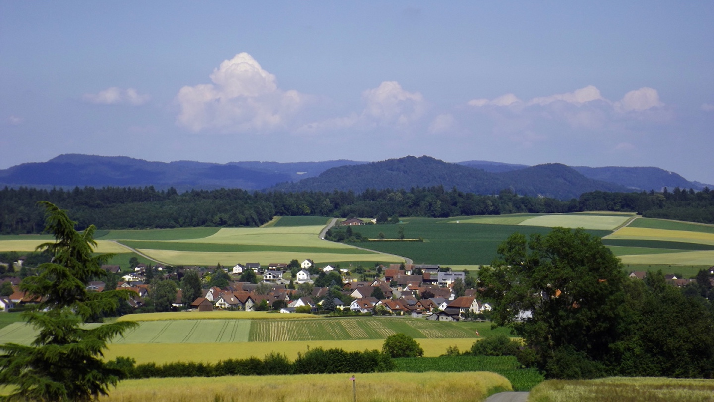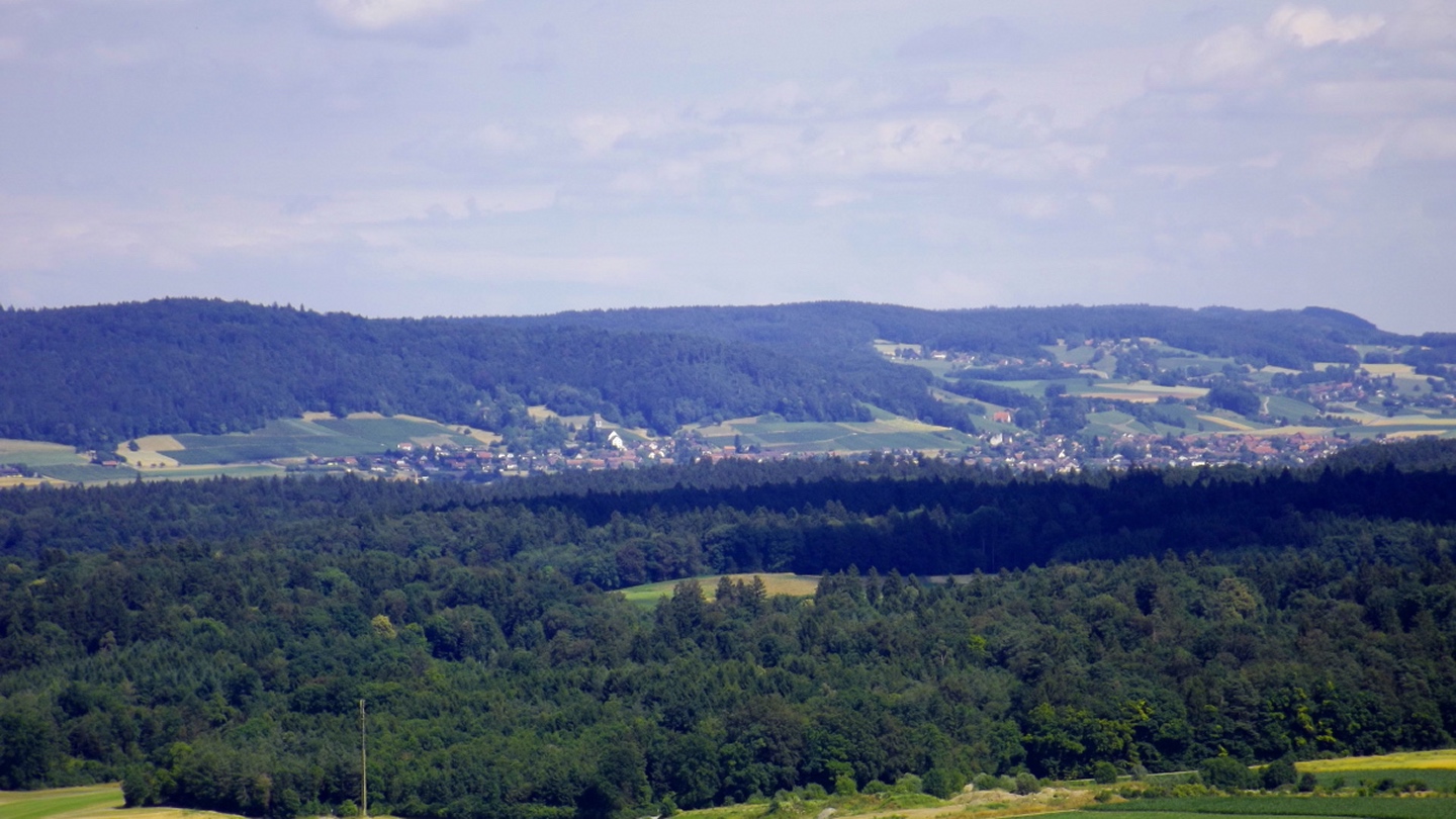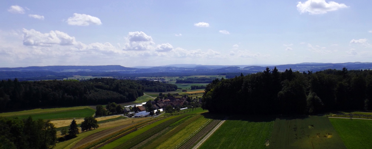 Nach einem etwas regnerischen Dienstagmorgen, den wir zu einem Einkaufsbummel in Frauenfeld nutzten, klarte es am Nachmittag auf und ich wurde wieder zu einem Spaziergang aufgefordert. Da ich keine Lust hatte, irgendwo hinzufahren, und ich bei der Anreise bereits den Aussichtsturm über dem Dorf gesehen hatte, war das Ziel klar. Man bot mir an, dass ich einen der (sehr lieben) Hunde als Begleitung haben könnte, jedoch stört die Leine beim Fotografieren, also zog ich alleine los.