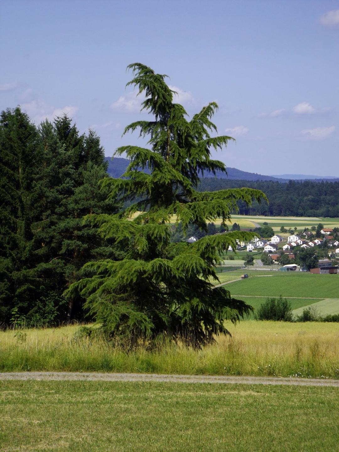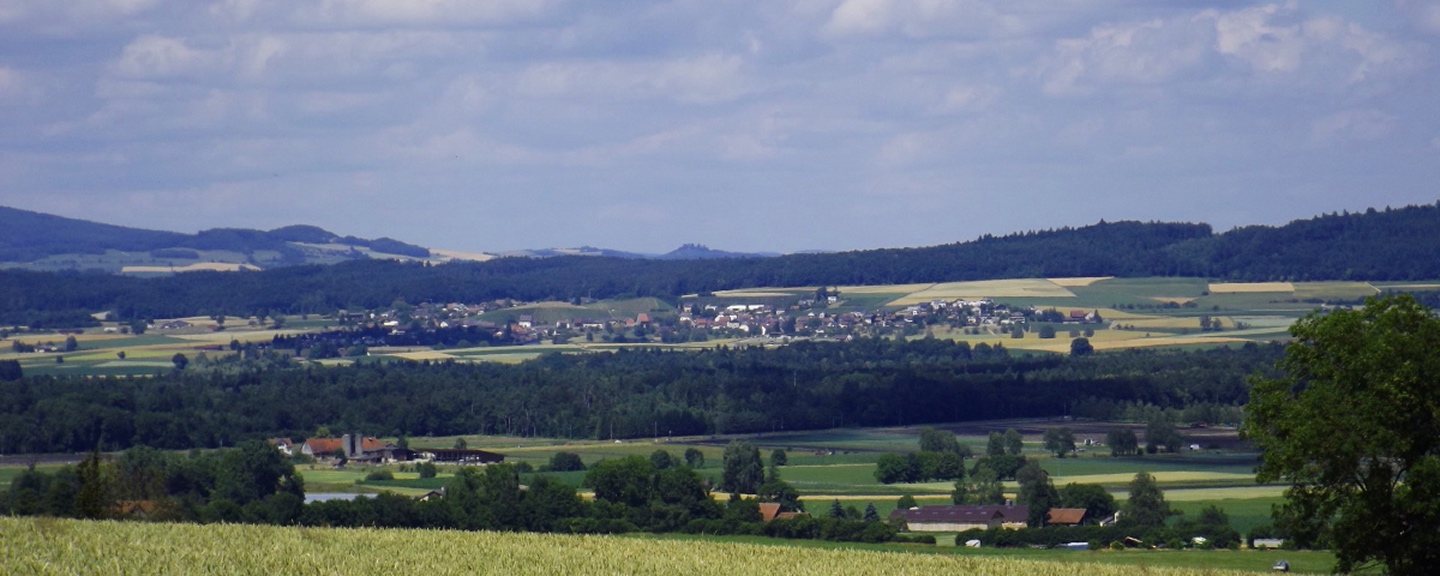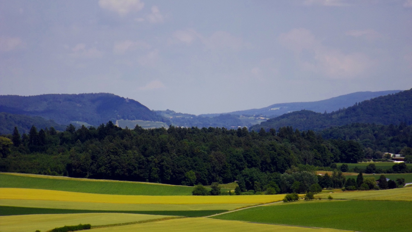 Nach einem etwas regnerischen Dienstagmorgen, den wir zu einem Einkaufsbummel in Frauenfeld nutzten, klarte es am Nachmittag auf und ich wurde wieder zu einem Spaziergang aufgefordert. Da ich keine Lust hatte, irgendwo hinzufahren, und ich bei der Anreise bereits den Aussichtsturm über dem Dorf gesehen hatte, war das Ziel klar. Man bot mir an, dass ich einen der (sehr lieben) Hunde als Begleitung haben könnte, jedoch stört die Leine beim Fotografieren, also zog ich alleine los.