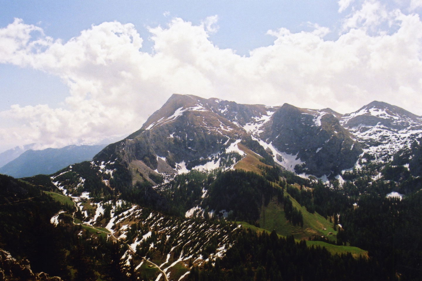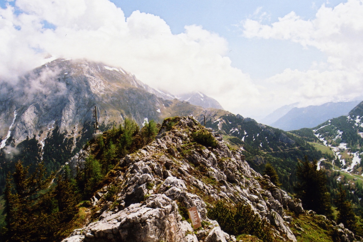 Die Route war im Aufstieg über Krautkaseralm und Mitterkaseralm, ausführliche Aussichtspause auf dem total überfüllten Gipfel, anschließend ging ich die Touristenautobahn hinüber zum Carl von Stahl-Haus, von wo aus ich nach einer gemütlichen Halben am Schneibsteinhaus vorbei den Abstieg Richtung Königsbachalm in Angriff nahm. Dort genehmigte ich mir noch eine zweite Halbe und ging über die nächste Touristenautobahn an der Jennerbahn-Mittelstation vorbei zurück zum Hinterbrand.