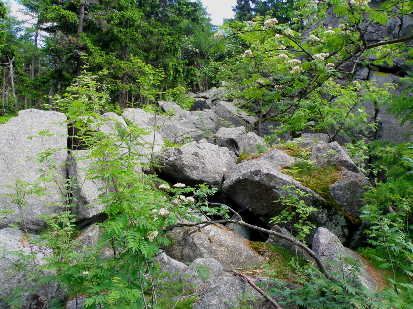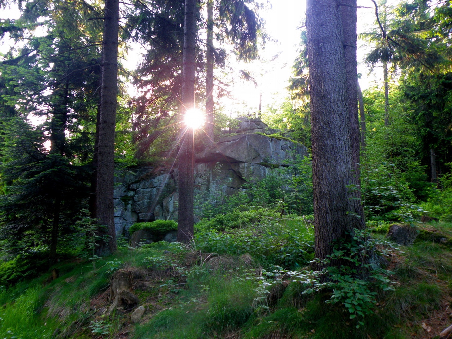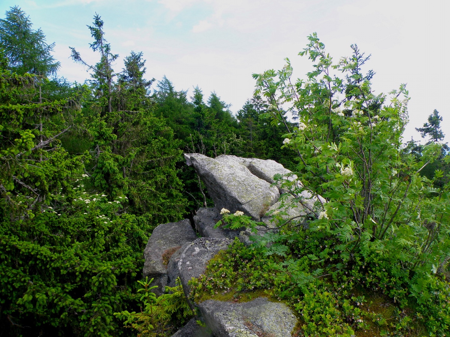 Endlich war am Tag des Stammtisches für Alternative Heilweisen wieder einmal AKW angesagt. Ideale Voraussetzungen also, um den höchsten Gipfel des Landkreises Tirschenreuth zu besteigen und mein Projekt der Seven Summits der Oberpfalz voranzubringen. Auf Hikr sind zwei Winterbegehungen von der Nordostseite beschrieben, ich hatte allerdings einen anderen Ausgangspunkt im Sinn, der noch ein paar markante Felsgruppen mehr erlaubte. Mein kleiner Neffe Moritz ging heute mit Oma ins Schwimmbad und hatte zwei Feuerkäfer in einem Eimer mitgebracht, die ich noch anschauen musste, also kam ich um 13.15 Uhr in Schwandorf weg und war um 14.21 Uhr auf dem Weg.