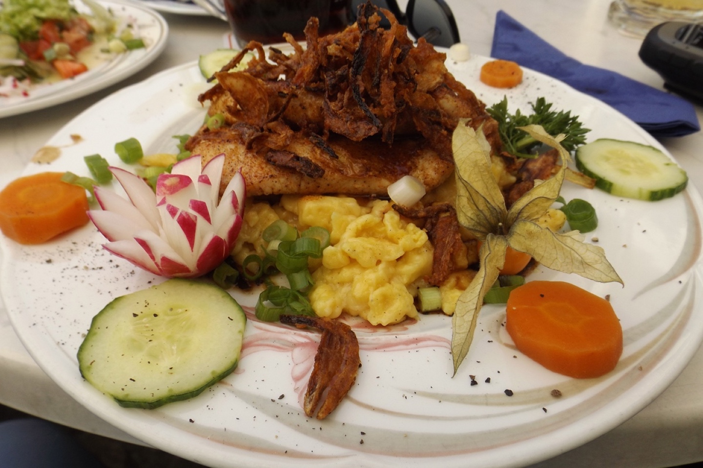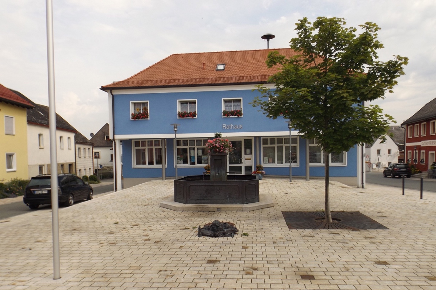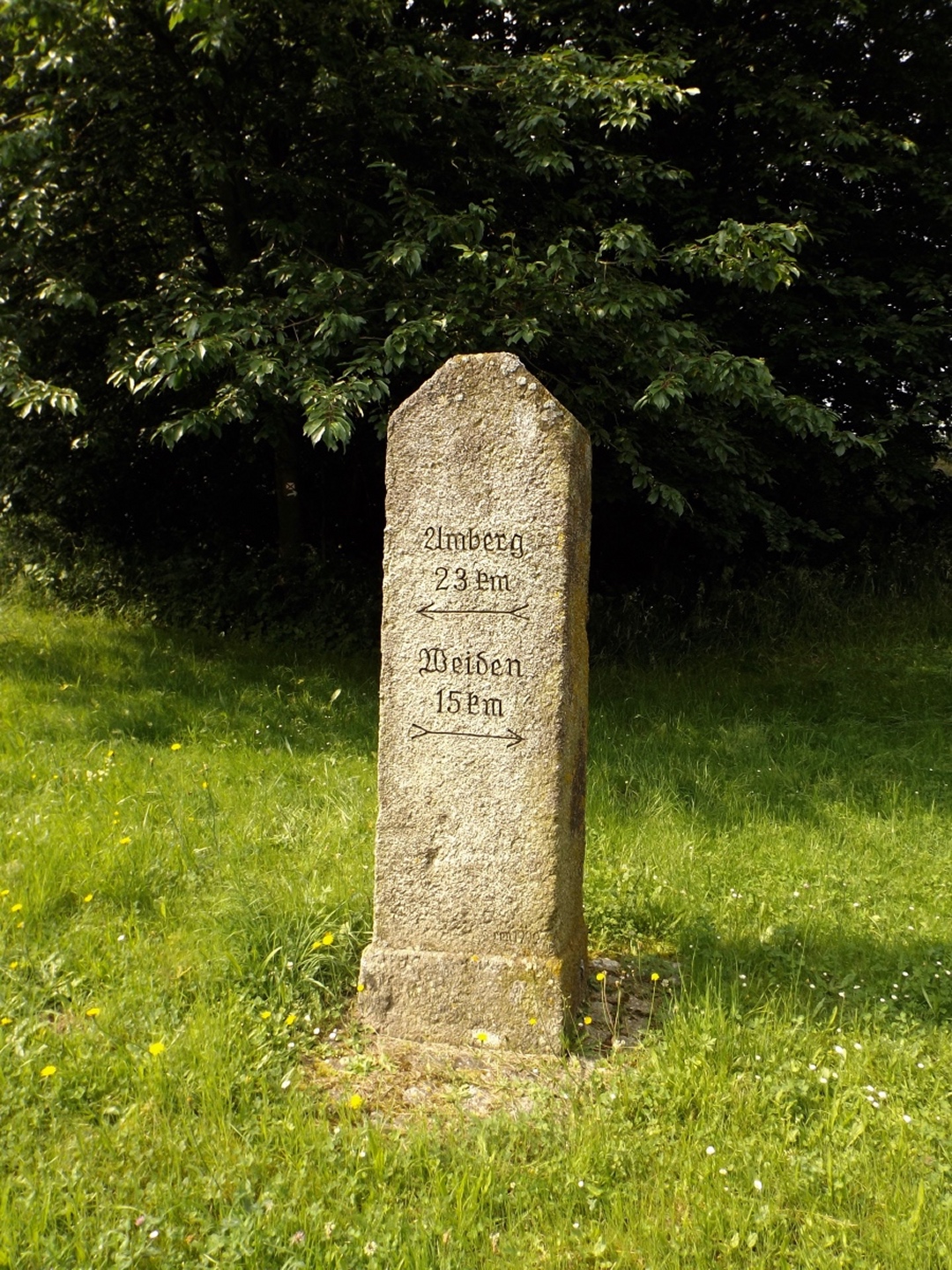 Denn der Zweigverein Kohlberg war, wenn ich mich nicht verzählt habe, mit anfangs acht und nach der ersten Steigung noch sechs Teilnehmern vertreten. Und die beiden, die umkehrten, taten gut daran, da es aufgrund ihres Alters bzw. ihrer körperlichen Voraussetzungen gerade im Abstieg vom Höllberg extrem happig für sie geworden wäre. Bei der Einkehr gesellten sich neben den beiden, die dann eben mit dem Auto nach Hirschau gefahren waren, noch drei Leute vom Zweigverein Hirschau zu uns, eine nette Geste. Dafür wird auch die fränkische Delegation jedes Mal kleiner, was ich aber erstens verstehen kann und zweitens zum Teil an Terminüberschneidungen lag. Die Überschrift leitet sich daher ab, dass in der Oberpfalz eine besondere Dummheit als Hirschauer Stückl bezeichnet wird und somit theoretisch die Gefahr bestand, bei der Einkehr Opfer eines Ereignisses dieser Art zu werden. Spätestens beim Salatteller konnten wir alle beruhigt sein. Denn die Preise waren zwar höher als im Durchschnitt der Etappen, aber im Gegensatz zur Stadthalle in Neustadt war die Qualität nicht nur ok, sondern gehoben. Und auch das Hirschauer Bier ist alles andere als ein Hirschauer Stückl, sondern dem Freudenberger im Wettbewerb um das beste Dunkel im Landkreis Amberg-Sulzbach dicht auf den Fersen. Nach der Einkehr kamen mir zwei Abschnitte etwas bekannt vor: ich bin sie letzten Sonntag beim IVV bereits mit Karlie gegangen. Über den Marktplatz in der gleichen Richtung, von den Moosweihern bis etwa zur Mitte des Waldstücks Richtung Gebenbach entgegengesetzt. Die Kreidemarkierung, mit der der heutige Weiterweg am Sonntag sperrmarkiert wurde, war noch deutlich zu sehen. Aber alle anderen Markierungen haben die Hirschauer Wanderfreunde vorbildlich sauber aufgeräumt! Obwohl wir dieses Mal bis zum Ende alle beieinander blieben, waren wir sehr früh in Gebenbach und konnten deswegen noch fast eineinhalb Stunden auf der Terrasse des Gasthofes zur Blauen Traube sitzen. Dort gab es Veldensteiner, welches auch ok war, aber mit dem Hirschauer nicht mithalten kann. Das Taferl, dass der Gasthof eine Wanderstation des BWV Amberg ist, habe ich großzügig ignoriert, weil die Wirtsleute ja nichts mit der Affäre vom März zu tun hatten und wohl außer Beitragszahlertum nicht viel mit dem Verein zu tun haben. Kurz nach fünf setzten sich meine fränkischen Freunde in den einzigen Bus des Nachmittags nach Amberg und ich zu Heinz, der wie seit der dritten Etappe immer paparazzte und die Einkehren organisert hatte, ins Auto, in dem ich zurück nach Kohlberg gebracht wurde und von dort aus nach Hause zu Karlie fahren konnte.