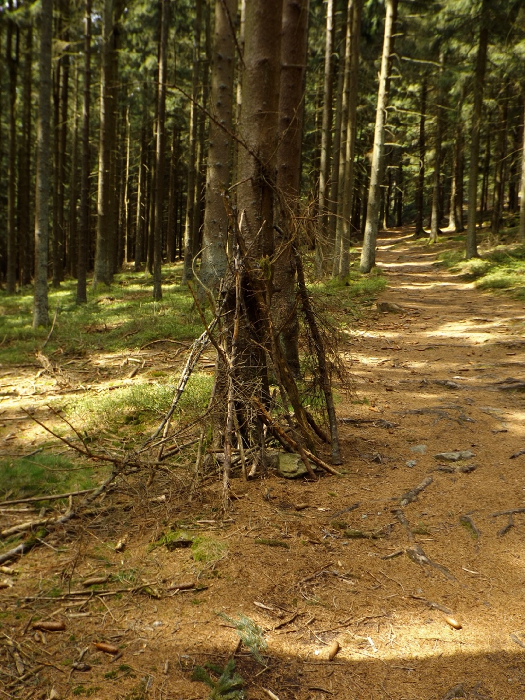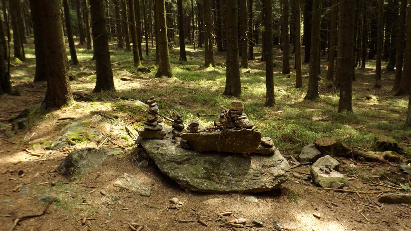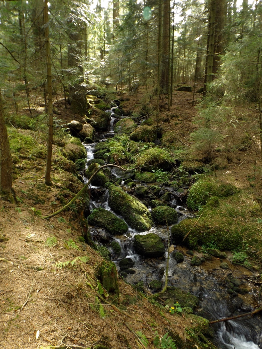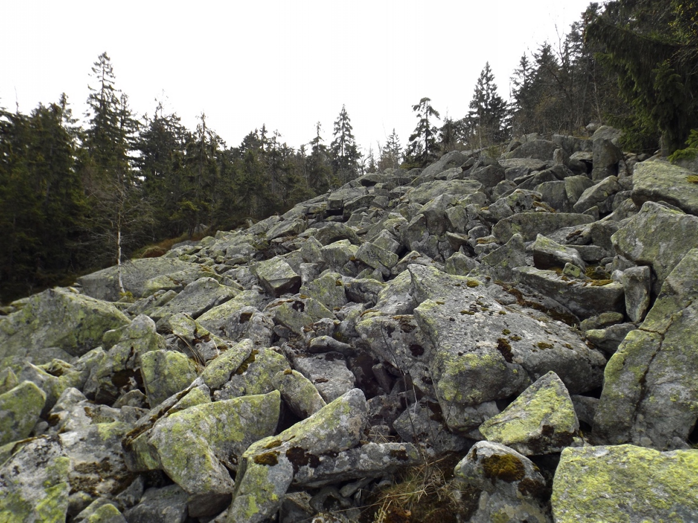 Es war sicher keine einmalige Sache, dass ich mit Jess gemeinsam auf Tour gegangen bin, der Osser wartet beispielsweise schon. Denn wir haben neben gutem persönlichen Verständnis vor allem zwei Vorlieben gemeinsam, die sich eigentlich gegenseitig bedingen: Gemütliches Tempo und Fotografieren. Jess hat etwa doppelt so viele Fotos geschossen wie ich. Auch zeigt sie keine Scheu vor gelegentlichen etwas abenteuerlichen Passagen und kleinen Kraxeleinlagen wie im Blockmeer.