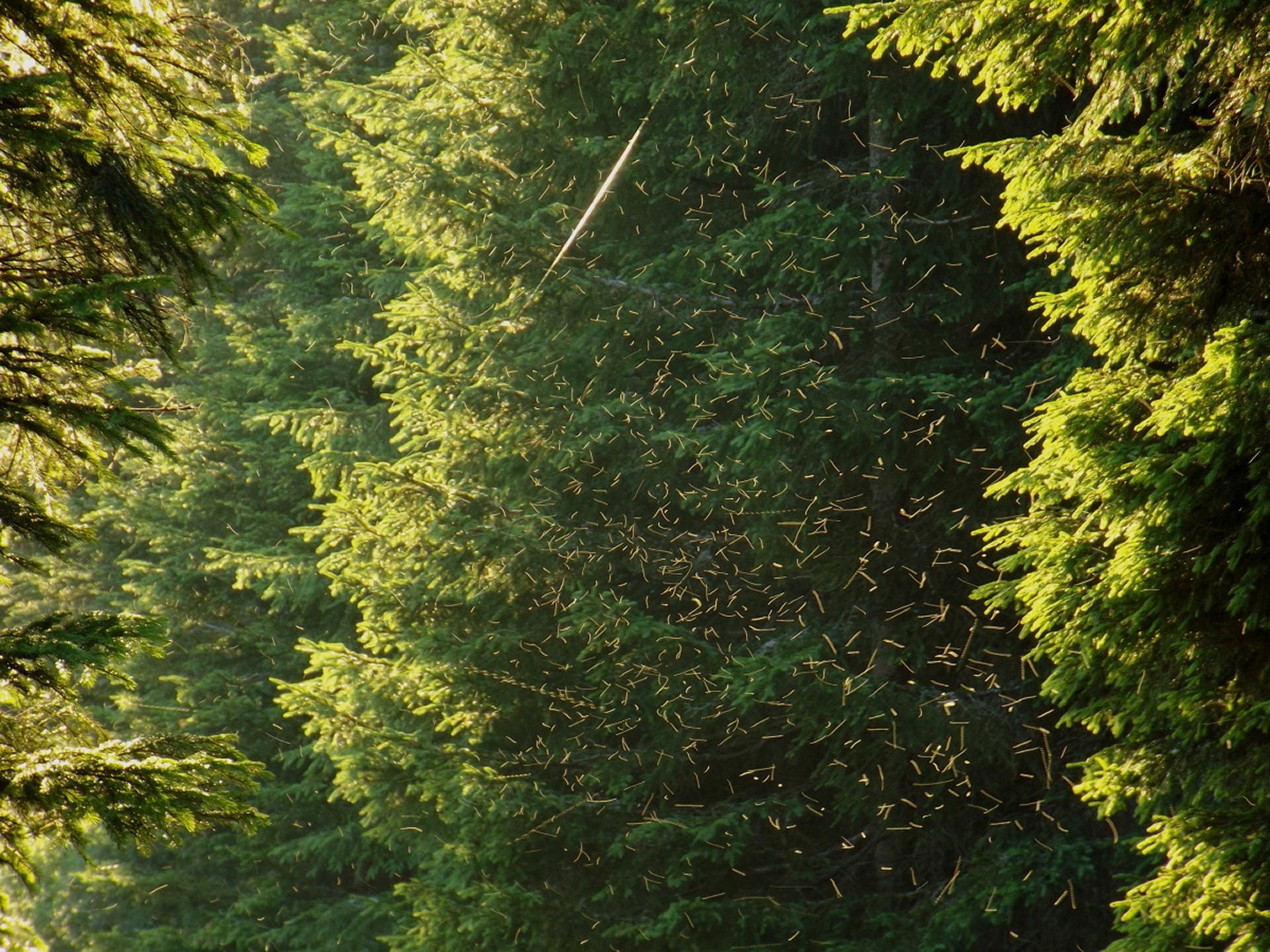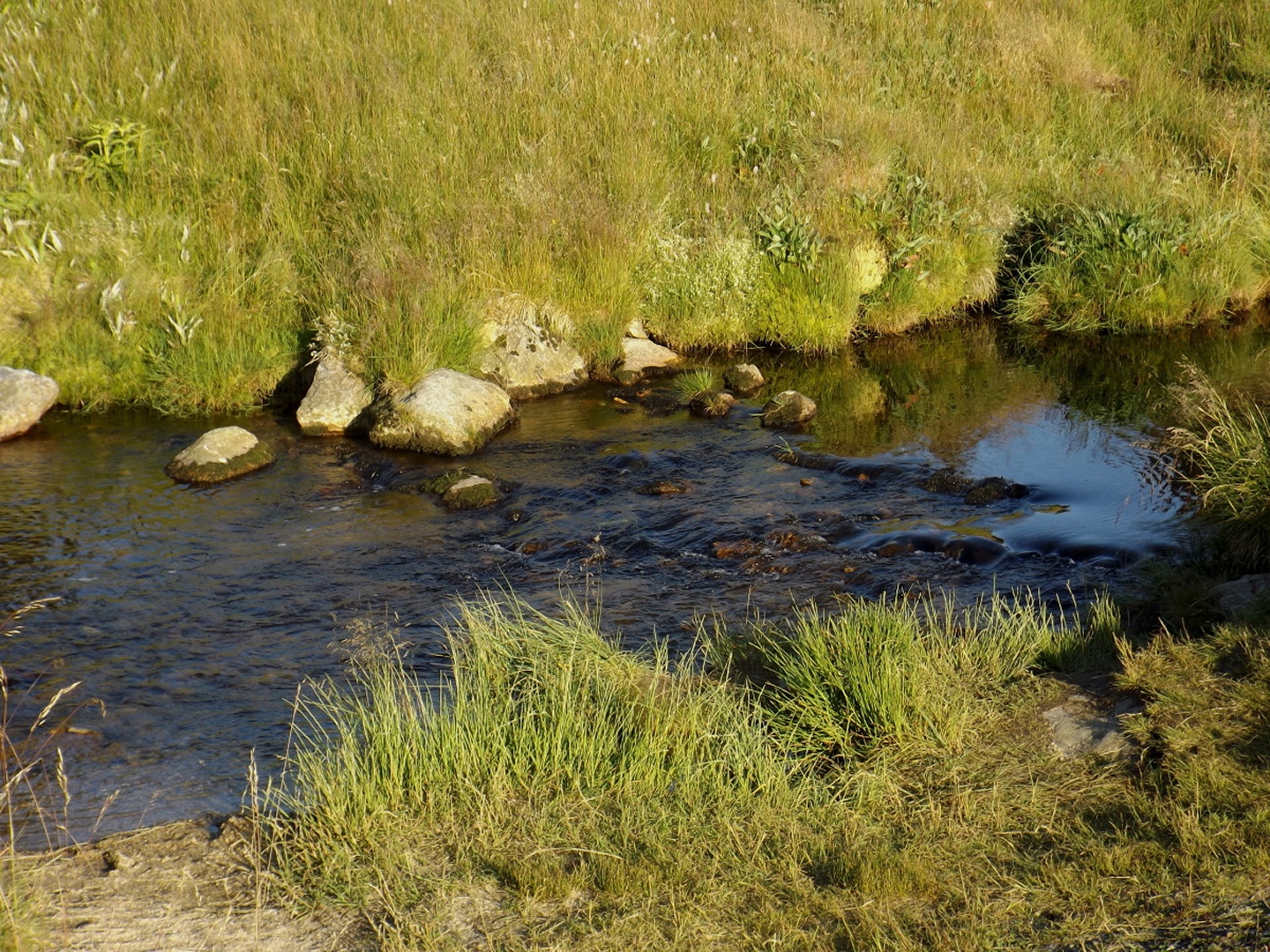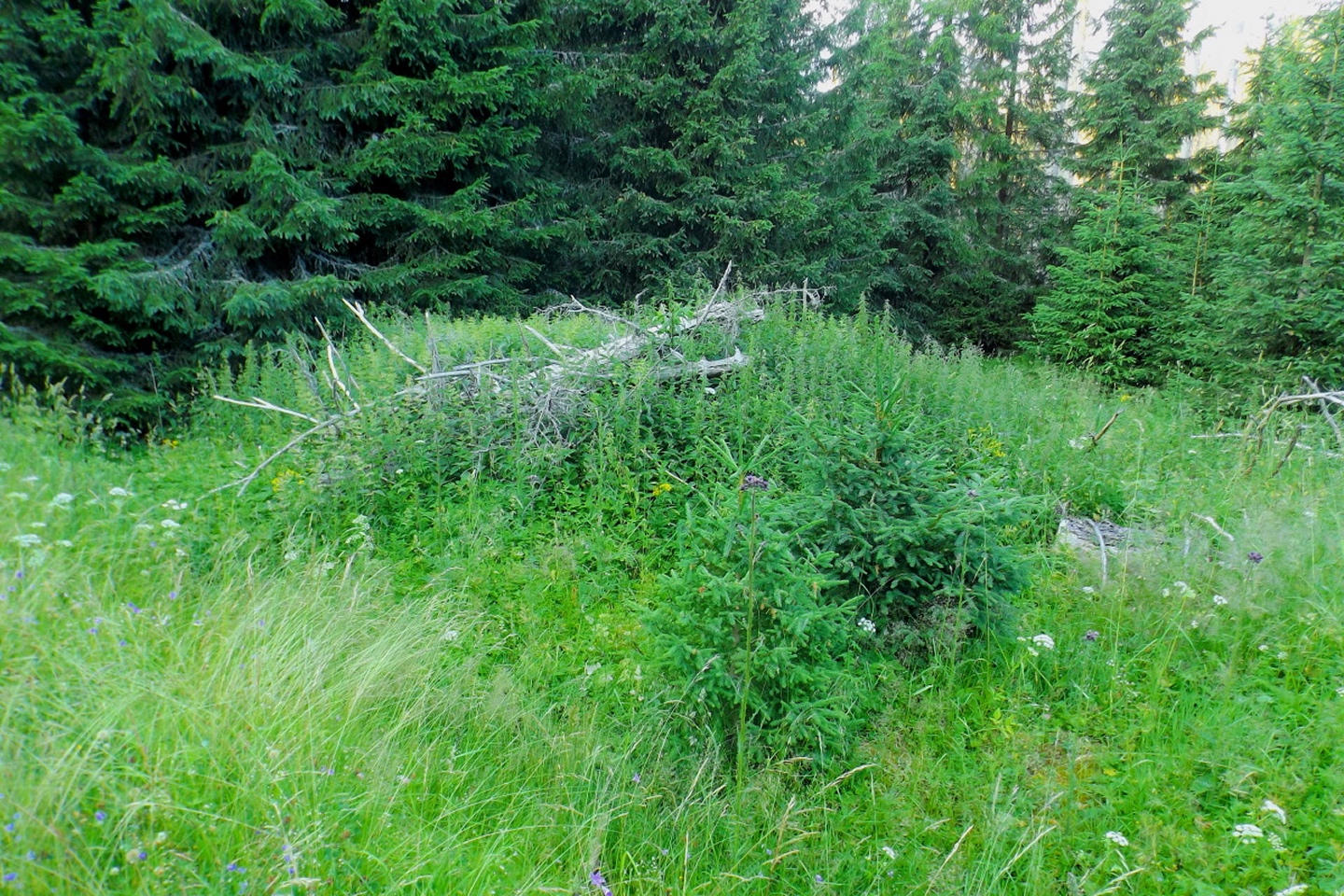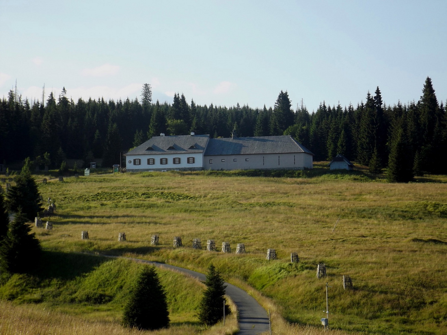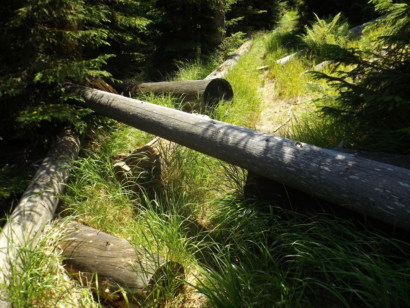 In früheren Tourenberichten dieses Jahres gab es ja öfter mal Andeutungen bezüglich einer Lusenüberschreitung. Diese war und ist nur zwischen 15. Juli und 15. November möglich, wenn (fast) alle Wege und Pfade in der Kernzone des Nationalparks sowie verschiedene besonders geschützte Wege in der I. Zoná Narodního Parku, wo es ja irgendwie noch strenger zugeht, für Wanderer geöffnet sind. Geistig und auch in meinen Äußerungen war dies meine Königstour für das Jahr 2015, noch höher eingestuft als alles, was ich in den Alpen geplant habe. Dementsprechend legte ich mich auf den ersten Schönwettertag nach dem 15. Juli als Termin fest, wobei die Temperaturen auch nicht zu hoch sein durften. Netterweise musste ich auf diesen Schönwettertag nicht lange warten, sondern konnte gleich am Tag darauf um sieben Uhr Schwandorf verlassen und nach Modrava fahren. Nach ein paar kleineren Komplikationen in Sachen Geldwechsel und Tanken in Železná Ruda wähnte ich mich trotzdem noch gut in der Zeit, bis ich kurz nach Prášily plötzlich hinter dem Bus herfuhr, in den ich in Modrava einsteigen musste. Das war zunächst unproblematisch, weil er noch mindestens zweimal vorher anhielt und ich somit vorbeikam, aber dann war noch die Baustelle zwischen Antýgl und Modrava… Auch die verleitete mich nicht zur Panik, denn der Bus war ja hinter mir, und außerdem war ich doch zehn Minuten vor der fahrplanmäßigen Abfahrt auf dem gebührenpflichtigen Parkplatz in Modrava. In Ruhe 70 Kronen in den Ticketautomaten geworfen (gut, dass ich zumindest auf zehn Euro Kronen herausbekam), die Schuhe gewechselt, Stöcke am Rucksack befestigt und Richtung Bushaltestelle losmarschiert, sah ich gerade den Bus losfahren. Netterweise reagierte der Fahrer auf mein Winken und ließ mich einsteigen, sonst wäre der gesamte Plan für heute erledigt gewesen. In Kvilda dauerte das Umsteigen wesentlich länger als geplant, weil etwa 100 Leute nach Bučina mitfahren wollten, aber das spielte keine Rolle mehr, weil das Lusenschutzhaus bis 18 Uhr geöffnet hat und dass Auto in Modrava auch nicht ohne mich wegfährt. Blöd war nur, dass ich da merkte, dass die in Železná Ruda gekaufte zweite Wasserflasche in eben diesem Auto liegengeblieben war. Aber auch das ließ mich relativ kalt, ich verließ um 10.45 Uhr an der Endhaltestelle 100 Meter vor der Grenze den Bus und machte mich erst einmal auf den Weg hinüber nach Bayern.