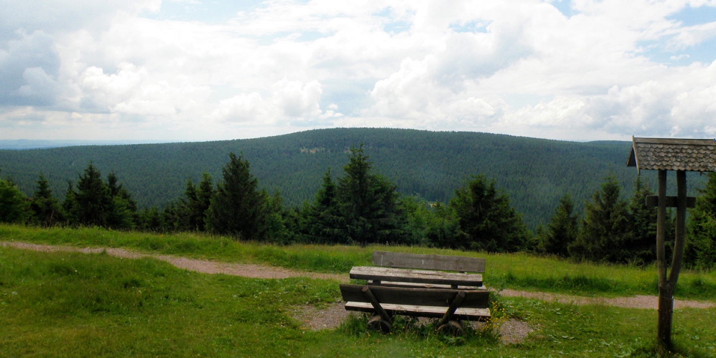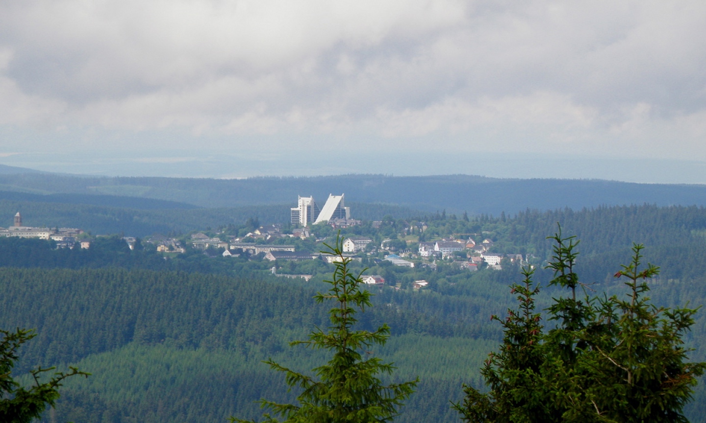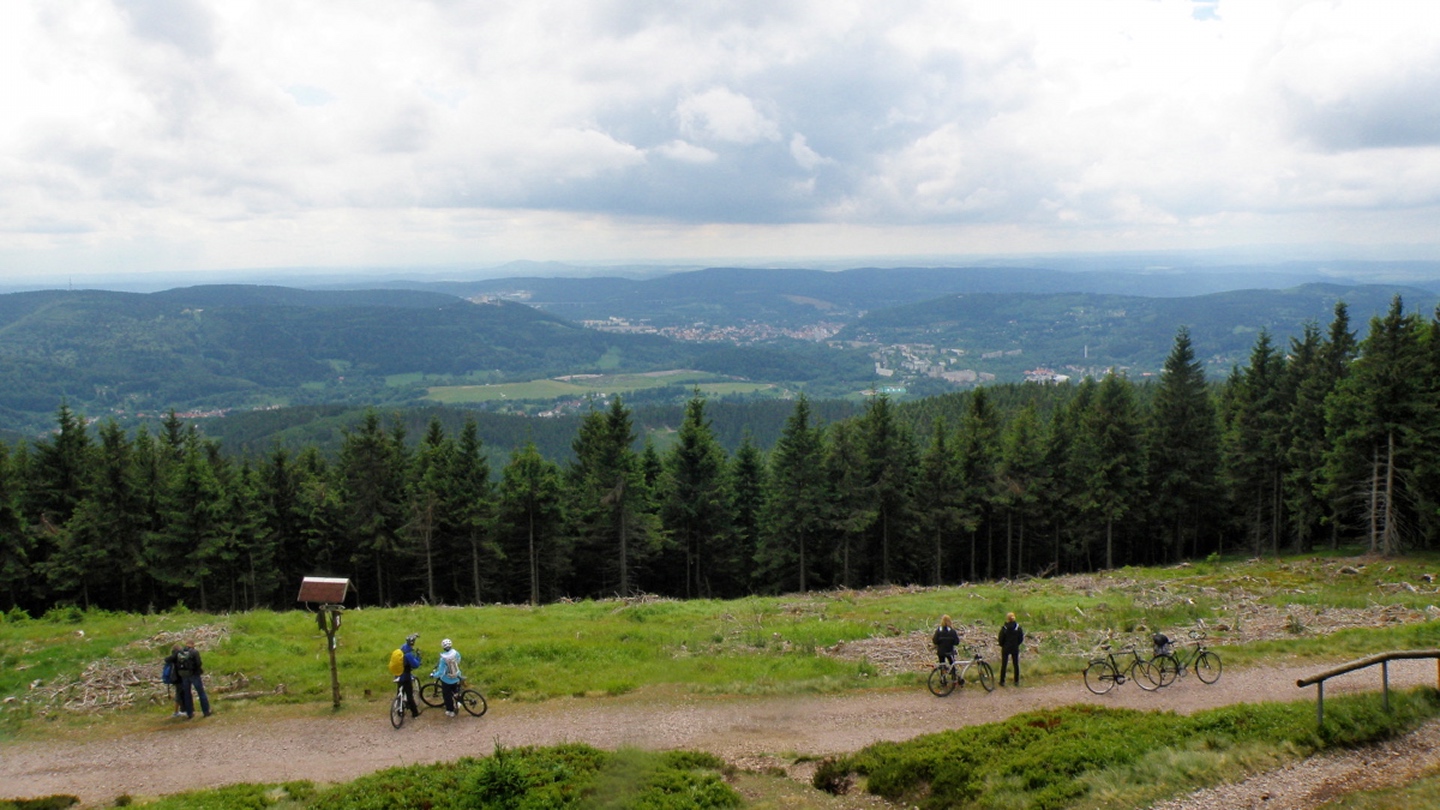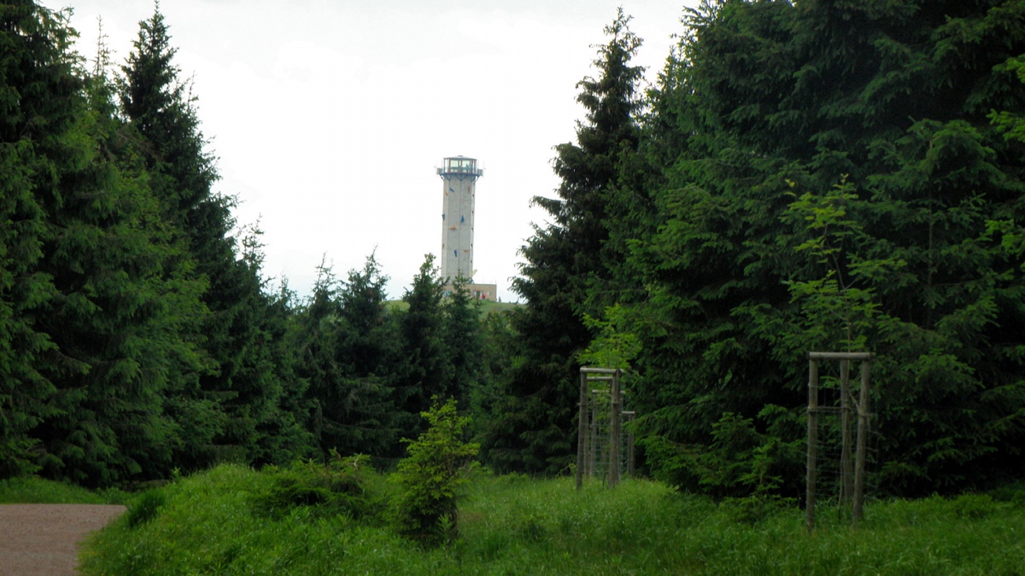 Vom Parkplatz zwischen Sportplatz und Kleingartenanlage auf einen Waldpfad. Dieser mündet nach 300 Metern in eine ashaltierte Straße, von der aus man (leider) Blick auf die Autobahn hat. Hier links bis zum Ende der Straße, anschließend über einen breiten Forstweg der Beschilderung „Schneidergrund“ folgen bis zu einer Kreuzung. Hier hat man zwei Möglichkeiten: Entweder geradeaus Richtung „Wills-Grab“, „Suhler Ausspanne“ oder rechts einen kleineren Weg Richtung „Pirschhaus Sommerbach“. Ich entschied mich für die erste Variante und ging in einem Bogen über eine Aussichtsstelle Richtung Suhl den Waldweg hinauf. Nach einem Steilstück (für regionale Verhältnisse, in den Alpen wäre es nicht der Rede wert gewesen) vorbei am Grabmal für die Gebrüder Will, im ersten Weltkrieg gefallene Söhne eines ortsansässigen Waffenfabrikanten und dem Pirschhaus erreichte ich nach dank eines kleinen Verlaufers etwas mehr als eineinhalb Stunden die Suhler Ausspanne, eine kleine Hütte mit Sitzgelegenheit an der Einmündung des Weges in den Rennsteig. Diesem folgte ich nach rechts, bis ich nach 20 weiteren Minuten vor einem Aussichtstürmchen stand, das mit „Großer Beerberg“ bezeichnet war. Der Gipfel selbst liegt im Naturschutzgebiet (Hochmoor) und ist nicht zugänglich. Da ich noch lange nicht ausgelastet war, beschloss ich auf Anregung eines Einheimischen, noch zum Schneekopf hinüberzuwandern, wo es einen Aussichtsturm und eine neue Hütte gibt. Dazu folgte ich dem Rennsteig zwei weitere Kilometer bis zum „Rosenberg“, wo der Gipfelweg nach links abzweigt, die Landesstraße kreuzt und dem Fahrweg zum Schneekopf folgt (eine halbe Stunde ab Beerberg). Dort war früher eine Funkstation der sowjetischen Armee, weshalb der Gipfel frei ist und gute Rundumsicht bietet. Der Aufstieg auf den Aussichtsturm hätte zwei Euro gekostet, weshalb ich angesichts des suboptimalen Wetters darauf verzichetete. Man kann übrigens auch außen auf den Turm klettern. Nix für mich, aber sicher eine interessante Variante. Die Neue Gehlberger Hütte übertraf dann noch, was der Einheimische versprochen hatte. Grandiose Thüringer Küche und leckeres Köstritzer bewegten mich zu einem lyrischen Eintrag in das Gästebuch. Nach der Einkehr folgte ich zunächst dem Weg einige Meter zurück bis zu einer großen Wandertafel, auf der ich eine in die Kompass-Wanderkarte nicht eingezeichnete Route zur Ausspanne entdeckte und ihr folgte. Dem Wanderweg 3 folgend hinab zu einer nicht beschilderten, aber zumindest mit Markierungen versehenen Abzweigung, dort links, bis man bei der Dürrenberger Hütte wieder auf eine Fortstraße trifft. An der Hütte vorbei bis zu einer Kreuzung, an der allerdings nur nach links zum „Adler“ und rechts zum „Kamerun“ beschildert ist. Die Markierung zeigt aber, dass es zur Ausspanne geradeaus weitergeht. Also folgte ich einem mäßig bergauf verlaufenden Forstweg, der an einigen Stellen überflutet war und auf den letzten 800 Metern parallel zur in diesem Bereich noch höher liegenden Landesstraße verläuft. Diese wird dann an einem größeren Parkplatz mit Bushaltestelle überquert, von wo eine Forststraße wieder zur Suhler Ausspanne führt. Von dort ging es auf dem Anstiegsweg zurück zum Pirschhaus, wo ich die Abkürzung über den Pirschweg wählte, welche etwas steiler an einem durchaus kletterbar aussehenden Felsen vorbei zur Kreuzung beim Schneidergrund führt. Von dort aus ging es ebenfalls auf dem Anstiegsweg zurück zum Auto.