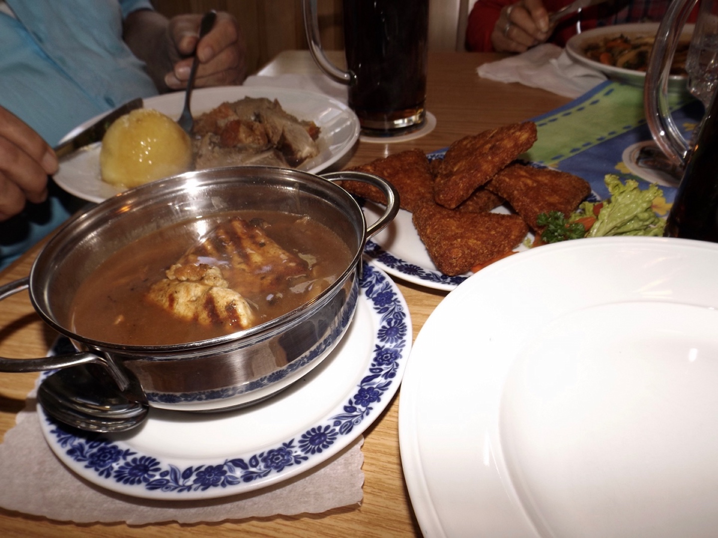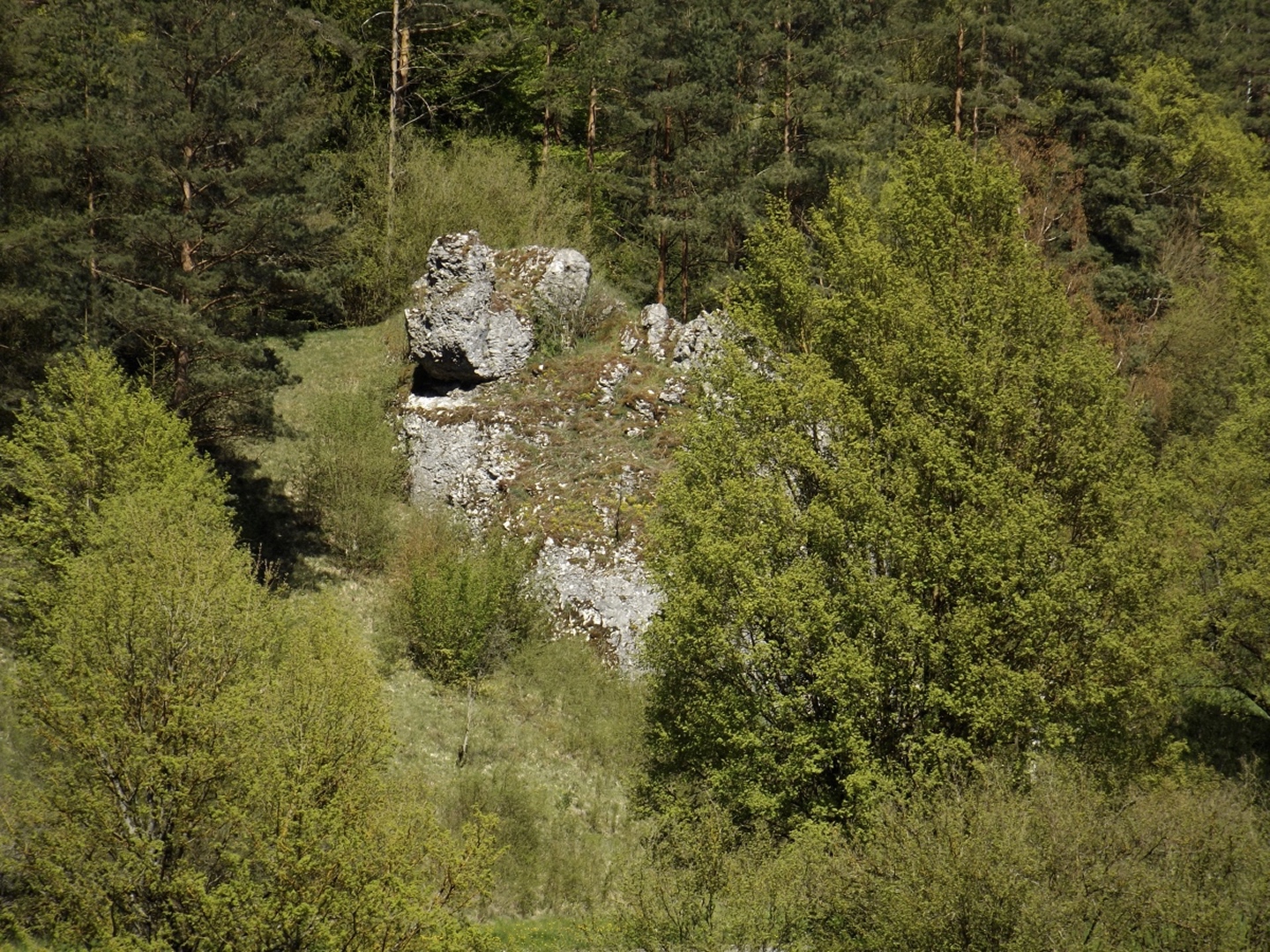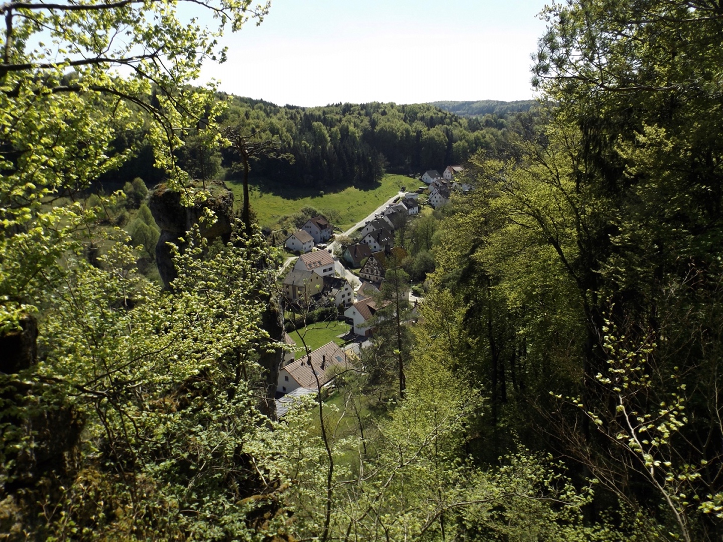 Das heißt, Chaos gab es eigentlich nicht. Die Züge kamen pünktlich in Sulzbach-Rosenberg an, bei der Einkehr in Högen war auch alles bestens vorbereitet und die Strecke war genauso gut markiert wie im Bereich des OWV. Ich ließ mich von den Herrschaften zum Bahnhof fahren und wurde ab Amberg von den beiden Annas vom dortigen OWV begleitet, aber das war es auch schon mit der oberpfälzer Delegation, der Rest der immerhin 30 Teilnehmer kam vom FAV. Ansonsten war es ziemlich genauso wie eine Woche zuvor, die Rennsemmeln rannten voran, Gaby gab dort, wo etwas Besonderes zu sehen war, die Erklärbärin für diejenigen, die nicht vorausgerannt waren, und der Rest genoss die Strecke und die Landschaft. Kurz vor der Einkehr kam uns ein 84-jähriger, nicht ganz schlanker Mann entgegen, der Mitglied des OWV Weiden ist, aber im Raum Würzburg wohnt und von dort aus angereist war. Da er in Nürnberg den Anschlusszug der Hauptgruppe nicht erreicht hatte, war er in Hartmannshof ausgestiegen und der Gruppe entgegengelaufen. Nach der Einkehr versuchte er uns zu folgen, was ihm nicht ganz gelang, aber er erreichte wenigstens kurz vor 17 Uhr heil den Bahnhof in Hartmannshof und die S-Bahn zurück nach Nürnberg. Da kann ich nur meinen nicht vorhandenen Hut ziehen. Bei der Einkehr gab es lediglich die kleine Komplikation, dass die Terrasse zu klein für uns alle war, aber es schmeckte den fünf im Gastraum speisenden auch dort. Denn der Dorfwirt hielt das, was mir Marga über ihn erzählt hatte, mehr als voll und ganz. Auch das dunkle Landbier aus Veldenstein war richtig gut, so dass ich mir ausnahmsweise eine zweite Halbe genehmigte, mein Auto war schließlich in der Garage geblieben. Am Ortsende von Haunritz wies Gaby darauf hin, dass man in zehn Minuten zur Felsformation Alter Fritz aufsteigen könne, wo es nette Aussicht gibt. Die fränkischen Teilnehmer waren alle schon dort gewesen und verzichteten, wir OWVler nahmen das Angebot gerne an und verließen die Gruppe zugunsten des kleinen Abstechers. Hier gab es doch ein klitzekleines bisserl Chaos, weil die Gemeinde Weigendorf einen Wegweiser verkehrt angebracht hatte und wir deswegen am Abzweig erst einmal vorbeigegangen sind. Andererseits brachte uns dieser „Fehlweg“ ein paar weitere schöne Ausblicke und zwei gute Fotos. Bei der Ankunft in Weigendorf fanden wir die Markierung dann nicht mehr und gingen den direkten Weg zum Bahnhof Hartmannshof entlang der Ortsdurchfahrten anstatt hintenrum, was aber auch egal war. Im Bahnhofsgebäude ist jetzt eine Gelateria, in die wir noch bis zur Abfahrt unseres Zuges einkehrten. Diese Idee hatten auch einige andere Teilnehmer und Gaby, womit wir beim Notfall wären. Kurz vor dem Ziel war Gaby nämlich umgeknickt und hatte sich Kapsel oder Band im Sprunggelenk verletzt.
