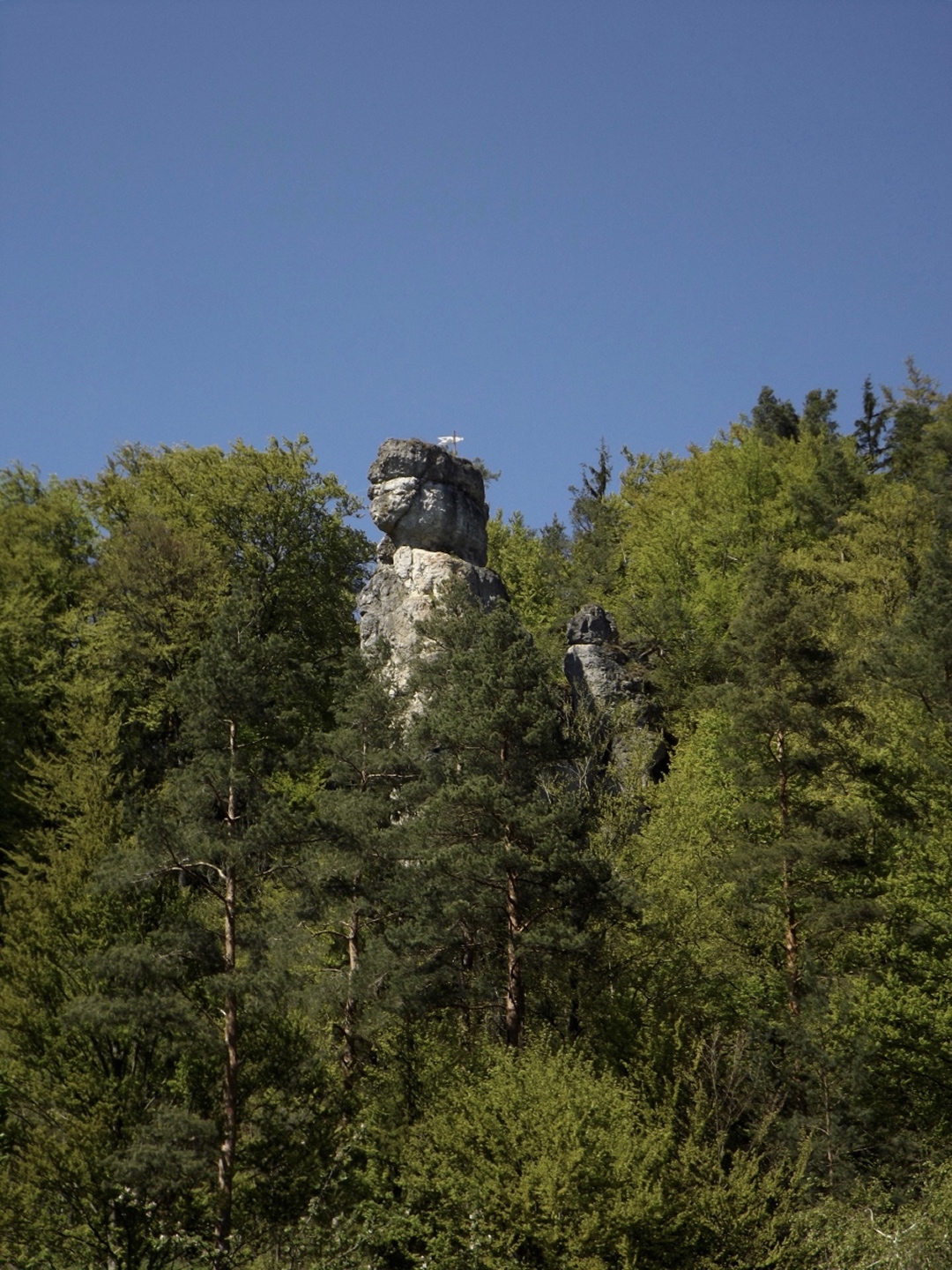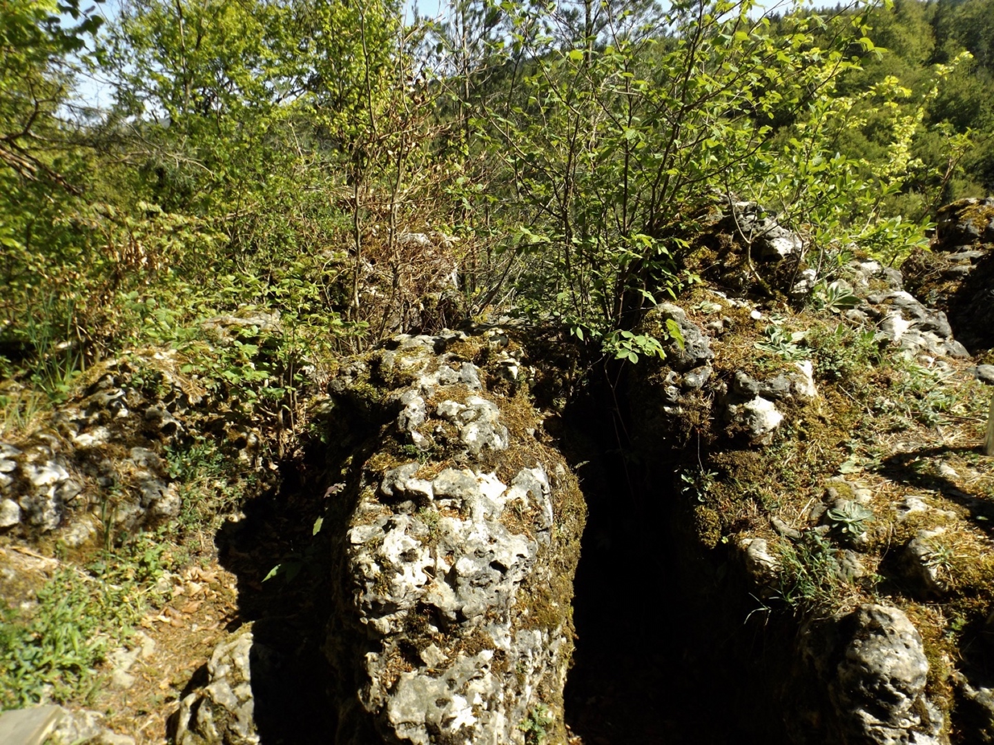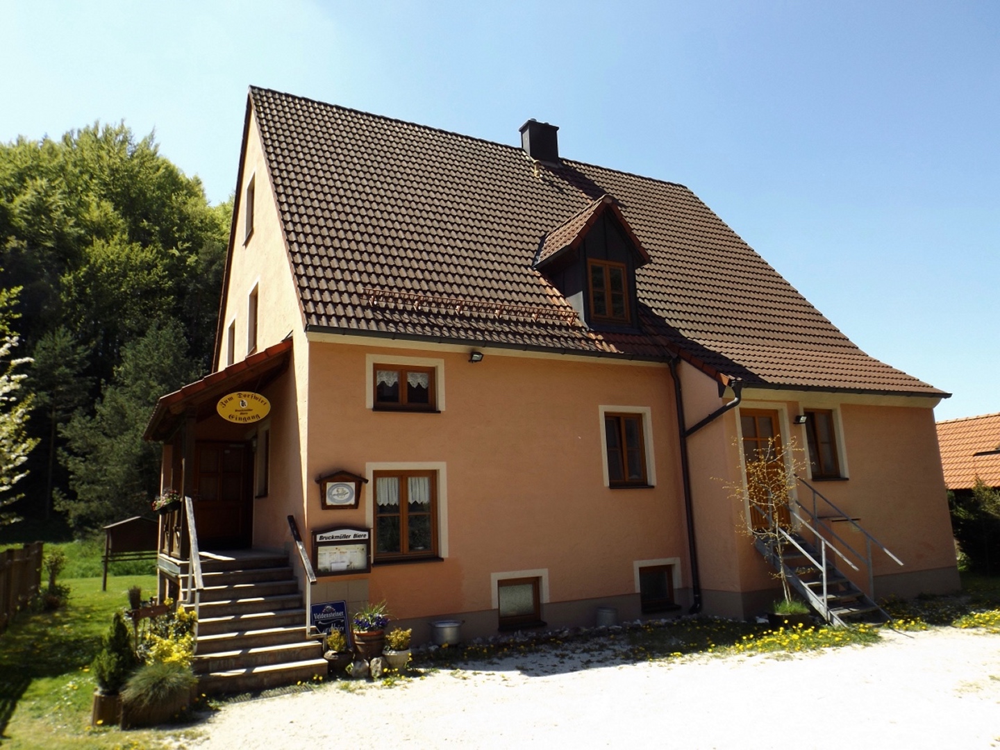 Das heißt, Chaos gab es eigentlich nicht. Die Züge kamen pünktlich in Sulzbach-Rosenberg an, bei der Einkehr in Högen war auch alles bestens vorbereitet und die Strecke war genauso gut markiert wie im Bereich des OWV. Ich ließ mich von den Herrschaften zum Bahnhof fahren und wurde ab Amberg von den beiden Annas vom dortigen OWV begleitet, aber das war es auch schon mit der oberpfälzer Delegation, der Rest der immerhin 30 Teilnehmer kam vom FAV. Ansonsten war es ziemlich genauso wie eine Woche zuvor, die Rennsemmeln rannten voran, Gaby gab dort, wo etwas Besonderes zu sehen war, die Erklärbärin für diejenigen, die nicht vorausgerannt waren, und der Rest genoss die Strecke und die Landschaft. Kurz vor der Einkehr kam uns ein 84-jähriger, nicht ganz schlanker Mann entgegen, der Mitglied des OWV Weiden ist, aber im Raum Würzburg wohnt und von dort aus angereist war. Da er in Nürnberg den Anschlusszug der Hauptgruppe nicht erreicht hatte, war er in Hartmannshof ausgestiegen und der Gruppe entgegengelaufen. Nach der Einkehr versuchte er uns zu folgen, was ihm nicht ganz gelang, aber er erreichte wenigstens kurz vor 17 Uhr heil den Bahnhof in Hartmannshof und die S-Bahn zurück nach Nürnberg. Da kann ich nur meinen nicht vorhandenen Hut ziehen. Bei der Einkehr gab es lediglich die kleine Komplikation, dass die Terrasse zu klein für uns alle war, aber es schmeckte den fünf im Gastraum speisenden auch dort. Denn der Dorfwirt hielt das, was mir Marga über ihn erzählt hatte, mehr als voll und ganz. Auch das dunkle Landbier aus Veldenstein war richtig gut, so dass ich mir ausnahmsweise eine zweite Halbe genehmigte, mein Auto war schließlich in der Garage geblieben. Am Ortsende von Haunritz wies Gaby darauf hin, dass man in zehn Minuten zur Felsformation Alter Fritz aufsteigen könne, wo es nette Aussicht gibt. Die fränkischen Teilnehmer waren alle schon dort gewesen und verzichteten, wir OWVler nahmen das Angebot gerne an und verließen die Gruppe zugunsten des kleinen Abstechers. Hier gab es doch ein klitzekleines bisserl Chaos, weil die Gemeinde Weigendorf einen Wegweiser verkehrt angebracht hatte und wir deswegen am Abzweig erst einmal vorbeigegangen sind. Andererseits brachte uns dieser „Fehlweg“ ein paar weitere schöne Ausblicke und zwei gute Fotos. Bei der Ankunft in Weigendorf fanden wir die Markierung dann nicht mehr und gingen den direkten Weg zum Bahnhof Hartmannshof entlang der Ortsdurchfahrten anstatt hintenrum, was aber auch egal war. Im Bahnhofsgebäude ist jetzt eine Gelateria, in die wir noch bis zur Abfahrt unseres Zuges einkehrten. Diese Idee hatten auch einige andere Teilnehmer und Gaby, womit wir beim Notfall wären. Kurz vor dem Ziel war Gaby nämlich umgeknickt und hatte sich Kapsel oder Band im Sprunggelenk verletzt.