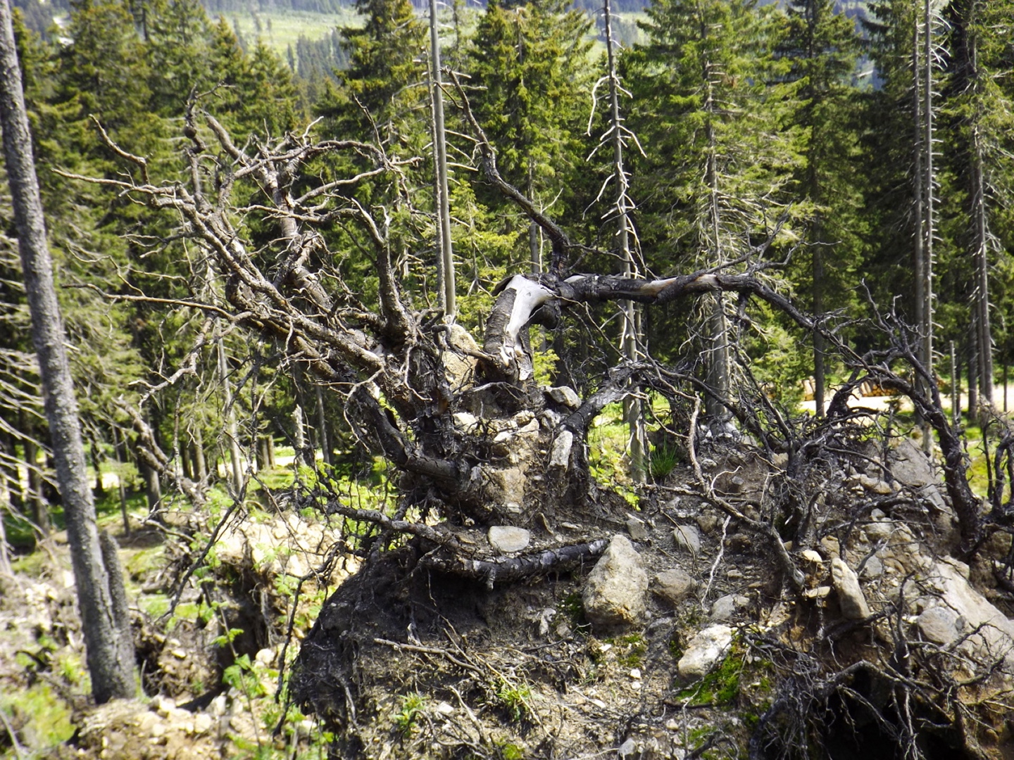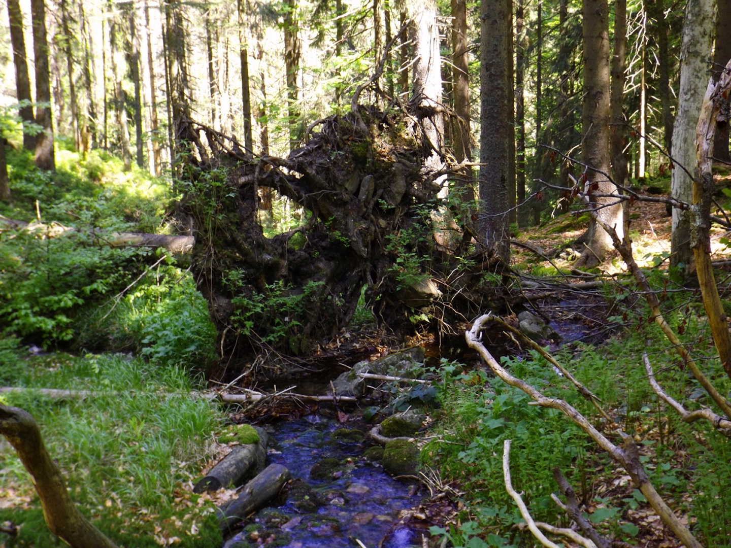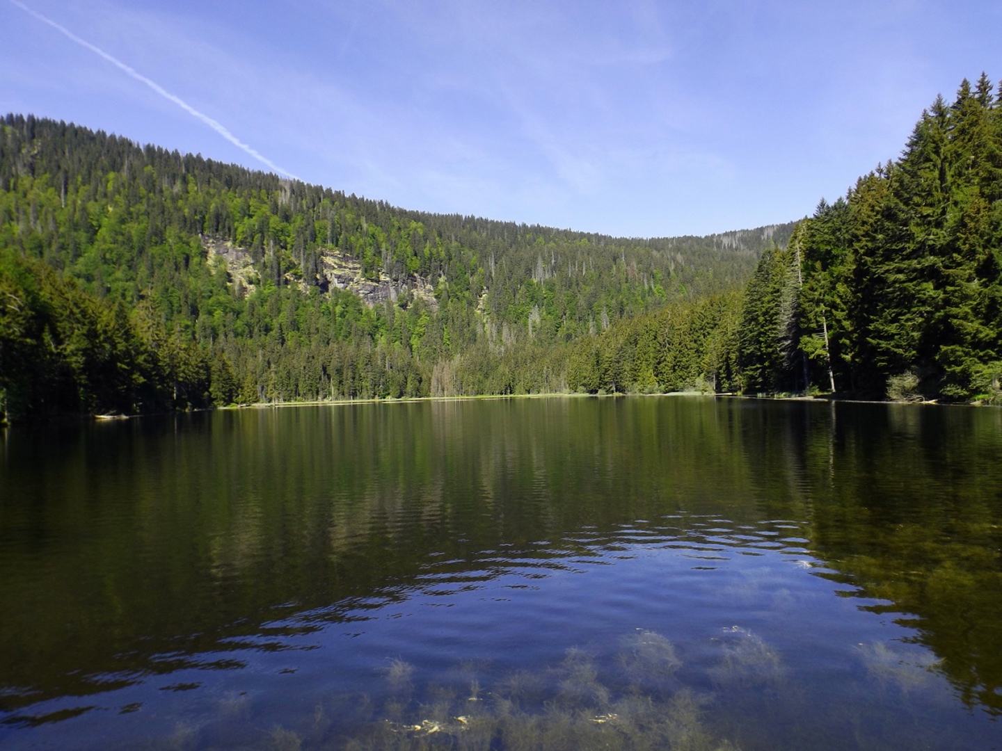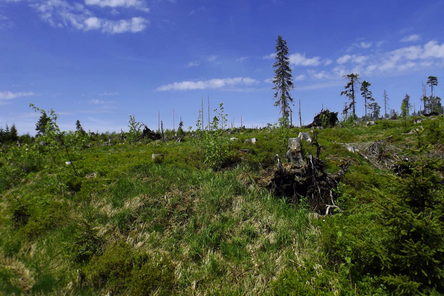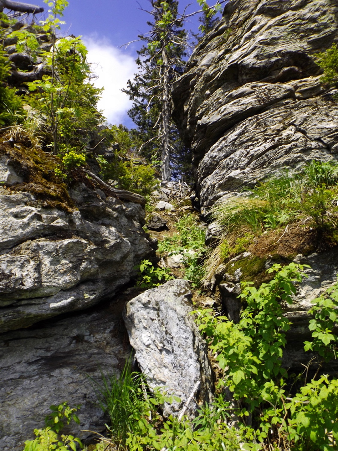 Ja, ich bin den Seewandsteig schon mal gegangen. Ich kann allerdings nicht nachvollziehen, warum ich ihn damals mit T2 bewertet habe. Vielleicht hatte es Coco mir eingeflüstert. Und ja, ich war auch schon auf dem Kleinen Arber und bin über die Chamer Hütte rüber zum Großen gegangen. Mit Karl vor ziemlich genau zwei Jahren. Da war es aber so stürmisch, dass wir die Gipfelriegel auslassen mussten, außerdem war die Seilbahn da noch in Revision und deswegen auch das Schutzhaus geschlossen. Aber das hatte alles keinen Einfluss darauf, dass ich das alles nochmal gemacht habe. Denn ich hatte bisher weder den Großen Arbersee umrundet noch war ich die Querung vom Ende des Seewandsteigs zur Chamer Hütte über den Arberschachten gegangen.