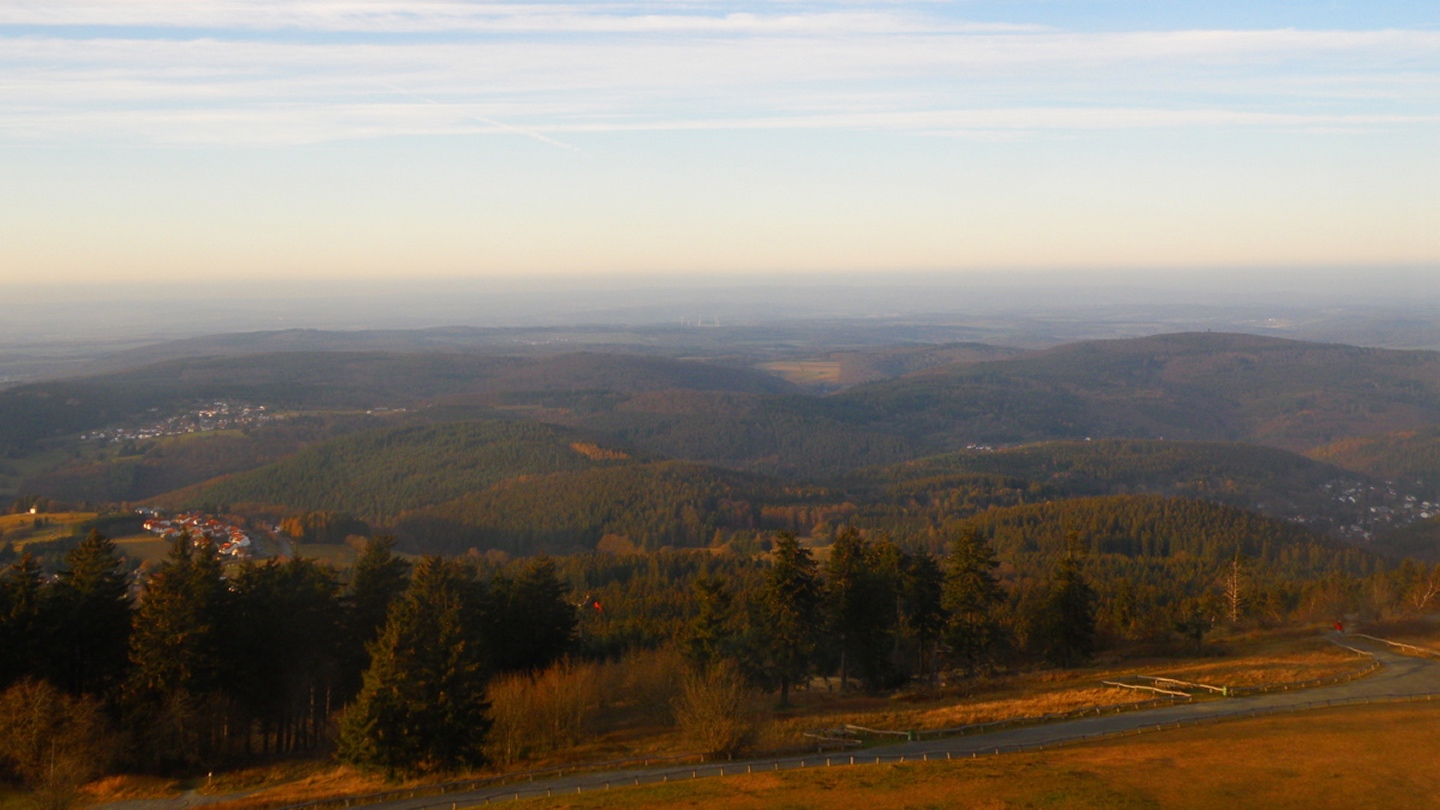 Diese Woche hatte ich das Vergnügen, zunächst bei einer Premiere im Wetteraukreis und tags darauf beim richtig feinen Slam in Wiesbaden dabei zu sein. Im Tal war es noch neblig, aber gegen 10.30 Uhr kam auch hier die Sonne durch, womit klar war, dass mein Tagesplan durchführbar sein würde. Ich verabreichte einem Kollegen noch eine kleine Abreibung am Schachbrett und fuhr im Gegensatz zu den Herren, die ebenfalls am Abend noch auftraten und einen Saunaaufenthalt in Wiesbaden bevorzugten, Richtung Großer Feldberg. Auf meinem Straßenatlas war eine Kreuzung eingezeichnet, von der aus man wohl alle drei höchsten Erhebungen des Taunus in einer Runde erreichen können würde. Und siehe da, es war im Prinzip möglich, dass ich den Gipfel des Kleinen Feldbergs nicht erreichen konnte, lag daran, dass dort ein Observatorium der Universität Frankfurt steht und nicht zugänglich ist.