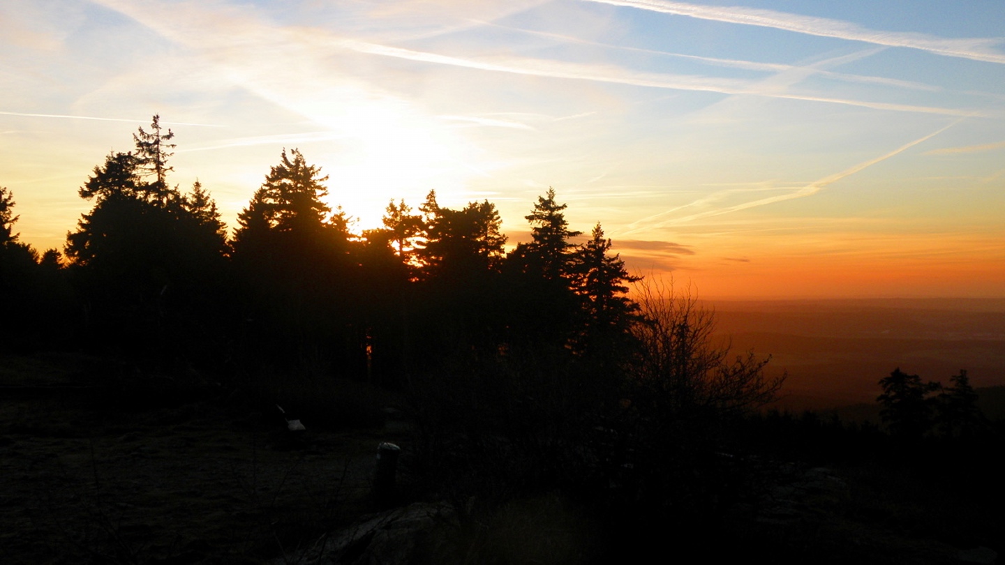 An besagter Kreuzung gibt es neben zwei Gasthöfen auch zwei Wanderparkplätze und durchaus brauchbare Orientierungstafeln, anhand derer ich beschloss, im Prinzip die große Runde, wunderbar mit einem Fuchssymbol markiert, zu machen und von Fuchstanz aus noch den Gipfelsturm auf den Altkönig dranzuhängen. Da selbst dieser ausschließlich über ordentlich ausgebaute und bestens markierte Wanderwege führt, hielten sich die Schwierigkeiten dermaßen in Grenzen, dass ich beim Aufstieg den alten, nicht mehr markierten Weg wählte, um wenigstens ein bisserl der Unterforderung zu entkommen. Die einzige Stelle, an der man etwas aufpassen sollte, ist eine Weggabelung 100 Meter hinter dem Gasthaus Fuchstanz, an dem man nicht links markiert Richtung Oberursel, sondern den nicht markierten rechten Weg gehen sollte. Andersrum ist es aber auch nicht schlimm, dann geht man die Altkönigrunde halt in entgegengesetzter Richtung. Insgesamt war der gesamte Weg dem Wetter entsprechend gut bewandert, auch der Gasthof auf dem Feldberg war gut gefüllt. Die zwei Euro für den Aussichtsturm finde ich grundsätzlich ok, man könnte aber die Fenster öfter putzen. Die Treppen hinauf waren für mich der mit Abstand anstrengendste Teil der Tour. OK, immer noch weniger anstrengend als der Feierabendverkehr in Wiesbaden inclusive Suche nach dem Veranstaltungszentrum, da ich von einer anderen Seite reinkam als mir der Routenplaner ausgedruckt hatte…