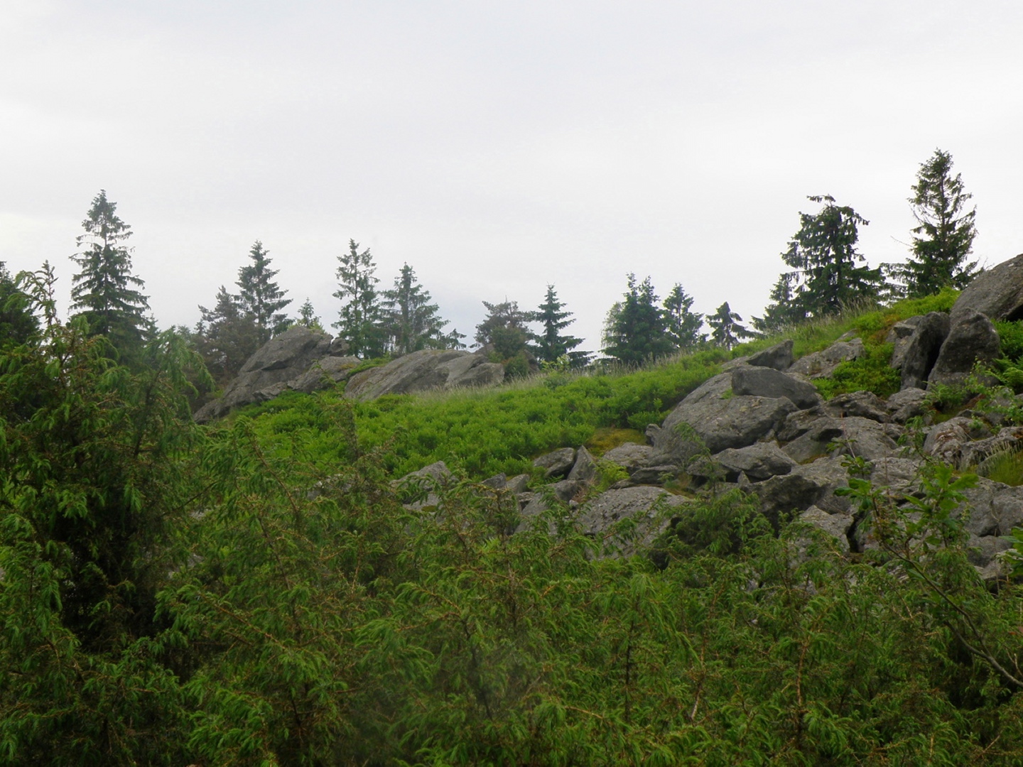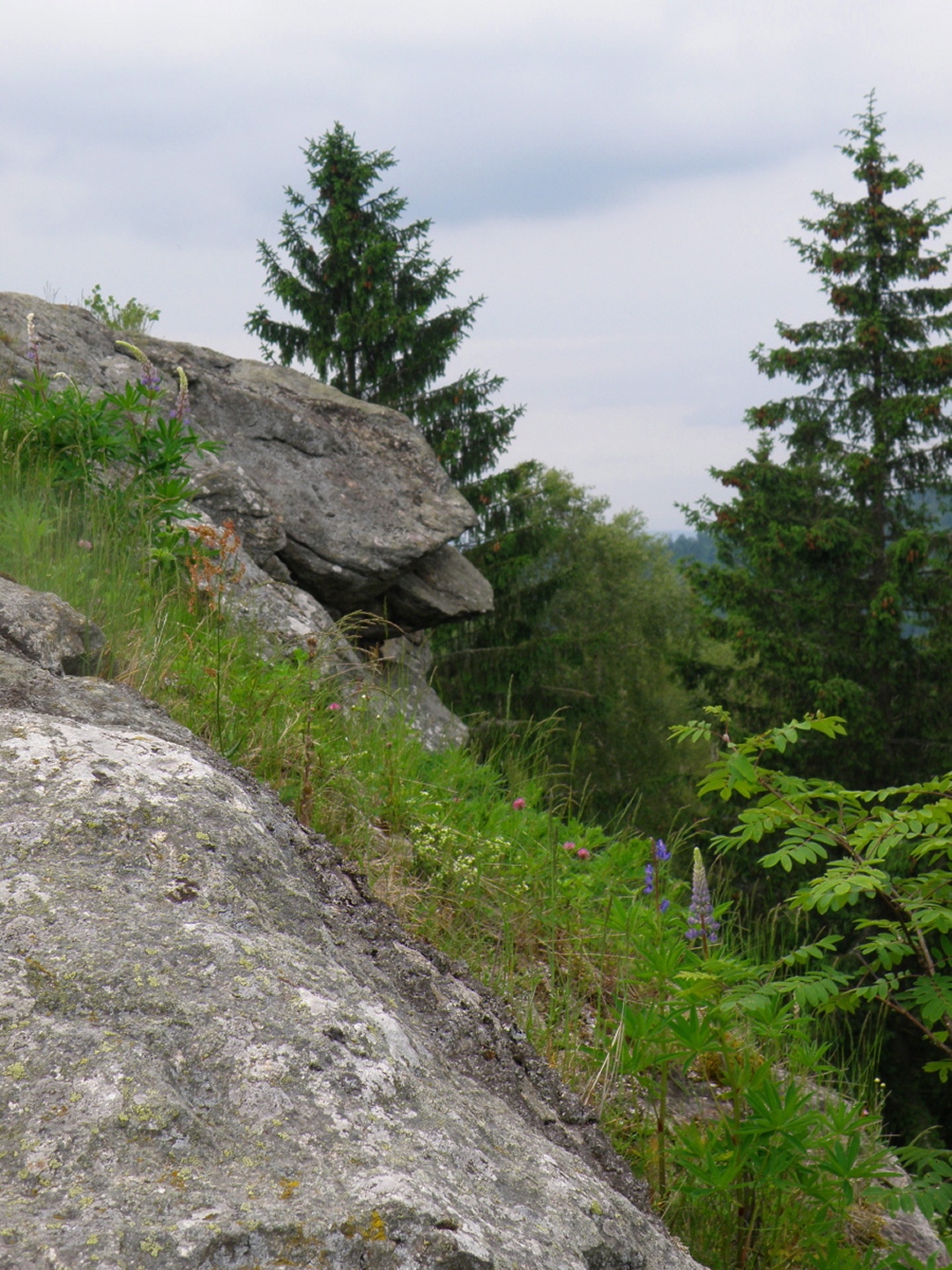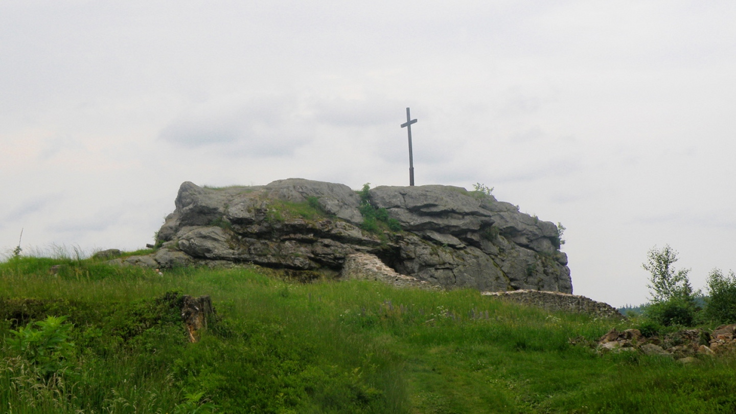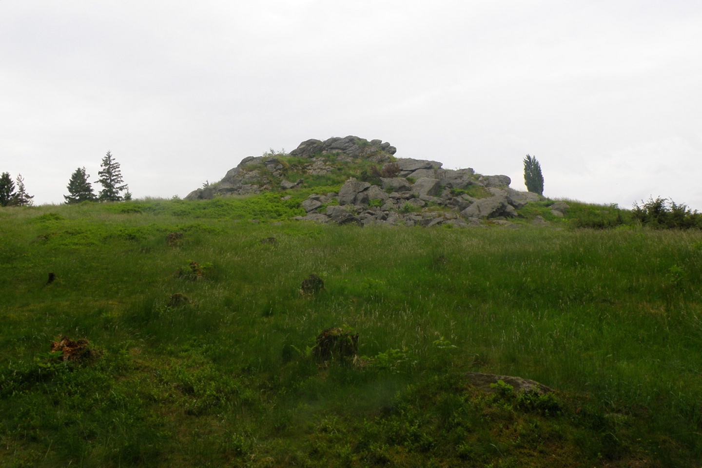 2010 ging es in den Altlandkreis Oberviechtach, wo auf einem der höheren Hügel einst die Burg Wildenstein throhnte. Von der Ortsmitte des Dorfes Wildstein aus folgte die Gruppe (etwa 40 Personen) bei zumindest trockenem Wetter einem Flurbereinigungsweg hügelaufwärts bis zur Waldgrenze, wo man auch parken könnte (bietet sich für Kletterer an). Von dort auf einem Waldsteig der Beschilderung Wildenstein folgen, bis man oben auf dem Plateau ankommt und die beiden Gipfelchen vor sich hat. Die Ruine schmiegt sich unten an den nördlichen der beiden, während man den zentraler auf dem Plateau gelegenen südlichen Gipfel leicht überschreiten kann (T2). Der Nordgipfel wird sogar von einem Kreuz verziert, erfordert etwas Handarbeit (T3, evtl. I) und vor allem an den Rändern Schwindelfreiheit, da es doch vor allem nach Norden und Westen zehn Meter ziemlich senkrecht, aber wohl interessant kletterbar hinuntergeht. Nach einem Vortrag und etwas Musik bogen wir dann Richtung Süden wieder in den Wald und wanderten entlang einer Wiese zurück ins Dorf. Wer sich die Gipfel spart, hat es ausschließlich mit T1-Gelände zu tun, weshalb ich dies auch als Gesamtwertung für die Tour vergebe.