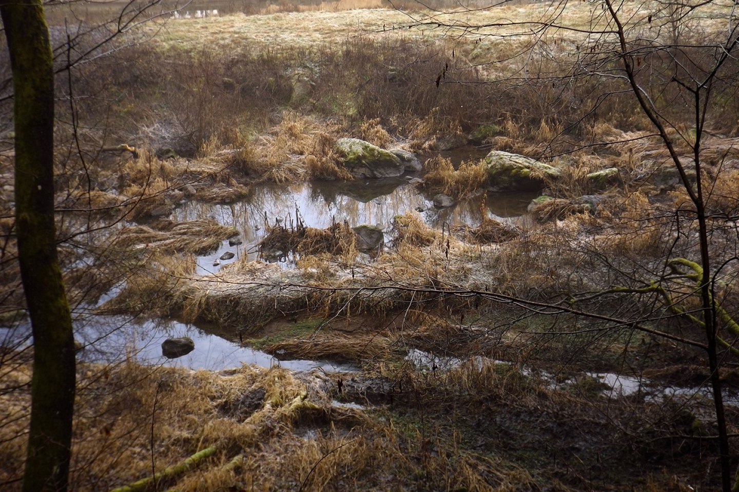 Ursprünglich wollte ich die Silvesterwanderung in Neunburg ohne Kamera, dafür mit Karlie, gehen. Ich war schließlich die Strecke über Penting schon in den beiden Jahren vorher gegangen, womit es kaum mehr etwas zu fotografieren gab. Dann aber las ich die Ankündigung in der Zeitung und stellte fest, dass es dieses Mal eine neue Strecke gab, noch dazu eine, die wesentlich interessanter aussah als die frühere. Folglich musste Karlie bei den Herrschaften bleiben und die Kamera landete im Rucksack. Kleiner positiver Nebeneffekt war, dass sich die neue Strecke als fast vier Kilometer länger erwies als die alte.