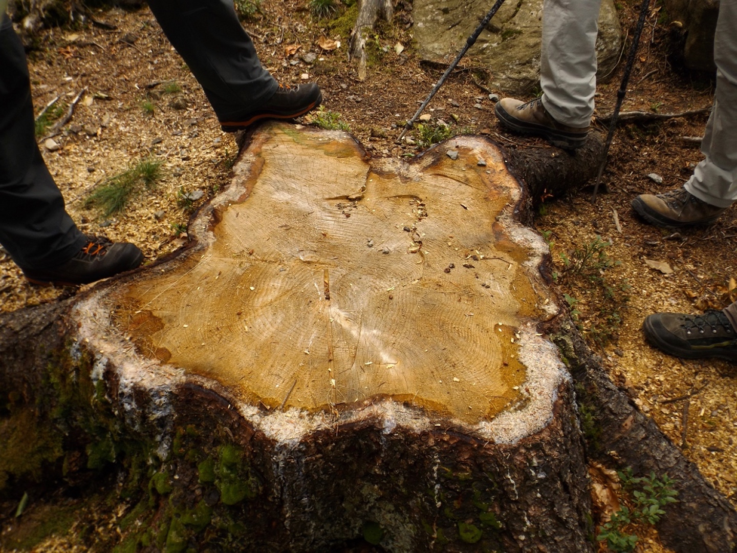 Ich werde mich auch kurz fassen. Denn das ist relativ einfach. Das Wichtigste vorweg: Ich habe den Lehrgang bestanden und darf mich jetzt zertifizierte Wanderführerin und Botschafterin der Natur (Natur- und Landschaftsführerin) nennen und entsprechende Anstecknadeln spazierentragen. Die beiden Hauptkonstanten des Lehrgangs waren erstens das Aprilwetter und zweitens die fröhliche und liebevolle Atmosphäre zwischen allen Teilnehmern und auch Referenten. Es gab keinen Abend, an dem nicht zumindest ein Teil der Teilnehmer nach dem Abendessen oder einem Spaziergang noch auf ein Getränk vor oder im Seminargebäude sitzenblieb. Da haben wir den Wunsch unseres Lehrgangsleiters voll und ganz erfüllt. Die Bezeichnung Aprilwetter ist hingegen fast ein Euphemismus, denn wir wurden eigentlich jeden Tag bei einer Geländeeinheit entweder nass oder mussten vor einem Regenguss oder gar Gewitter fliehen. Das ist auch der Grund, warum wir den Lusen nicht zu Gesicht bekamen geschweige denn erreichten, obwohl er eigentlich das Ziel der Orientierungswanderung war. Es war uns auch nicht vergönnt, am letzten Nachmittag nach dem offiziellen Ende des Lehrgangs noch hinaufzusteigen, pünktlich zum Gruppenfoto nach der Prüfungswanderung begann es wieder zu regnen. Dafür waren wir vier mal bei der Martinsklause.