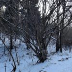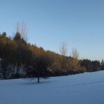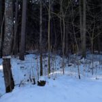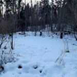 Das besonders Schöne an dieser Runde war, dass ich vier verschiedene Arten von Überresten begutachten durfte. Denn gleich am Start, hinter und unterhalb der Vierzehn-Nothelfer-Kirche am Eggenberg zieht sich ein Hohlwegbündel aus dem Hirschwald hinunter ins Vilstal, das von einer Altstraße zeugt, die aus dem Fränkischen zum Kloster Ensdorf führte. Durch den Riedener Burgstall bin ich letztes Jahr bereits zwei Mal ohne Schnee gegangen, hatte aber da keine Gelegenheit für intensivere Blicke, weil es beide Male geführte Touren des OWV Amberg waren. Der Eggenberghof (oder waren es sogar zwei Höfe, ich weiß es nicht mehr genau, die Überreste deuten aber darauf hin, während in der Geschichte der Wallfahrtskirche von dem Eggenbergbauern die Rede ist) war Subjekt meiner leider nie vollendeten Magisterarbeit, während ich damals überhaupt nichts über Palkering wusste. Der Grund dafür ist, dass die Hauptgrundlage meiner Arbeit ein Aufsatz von 1950 war, während das Forsthaus Palkering noch bis 1962 genutzt wurde, ein Stadel sogar heute noch in Betrieb ist und das Gelände als Weide für eine alte Hausrinderrasse genutzt wird. Sollten die netten Besitzer der Rinder diesen Bericht lesen, ein herzlichen Hallo, auch wenn ich eure Namen nicht kenne.