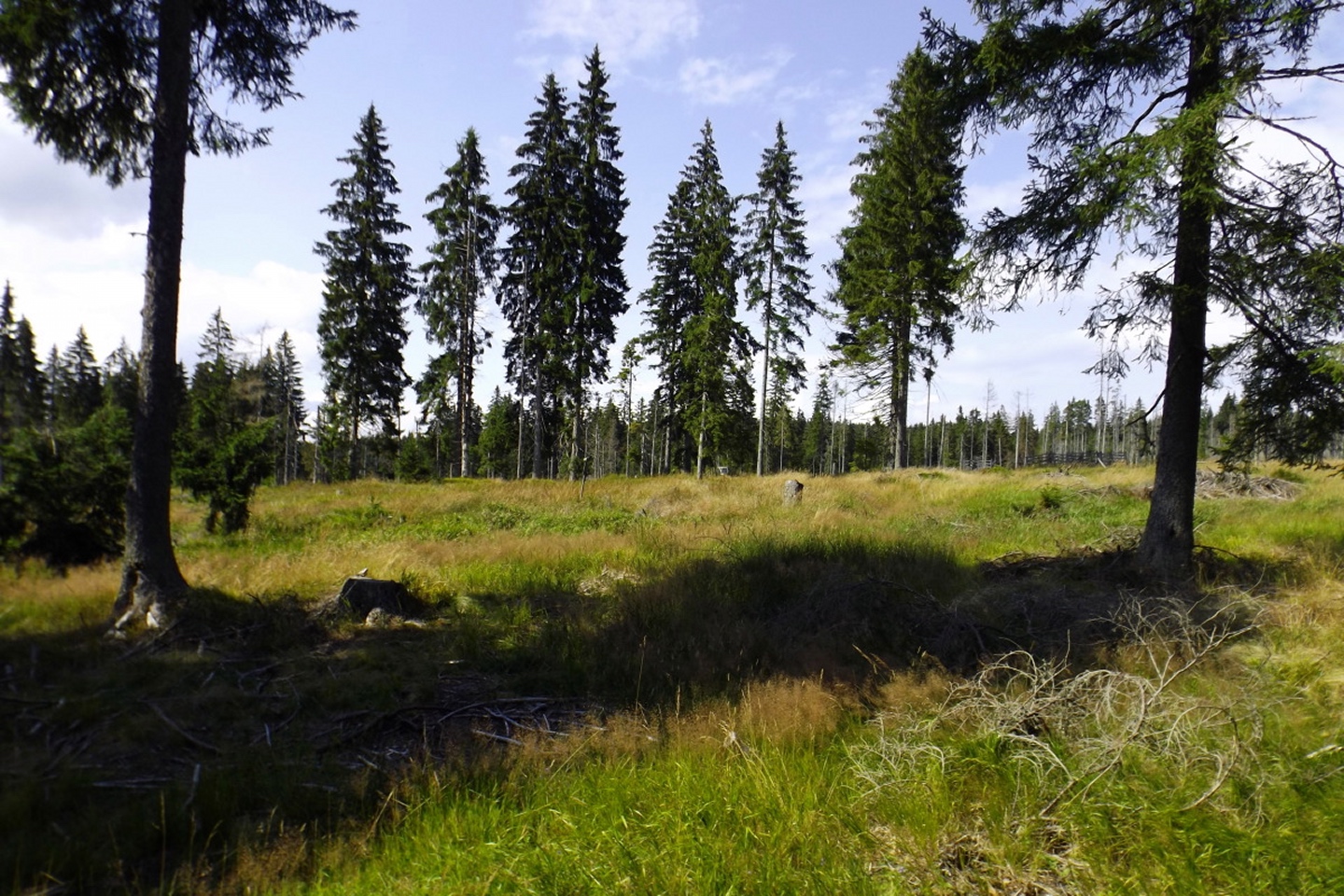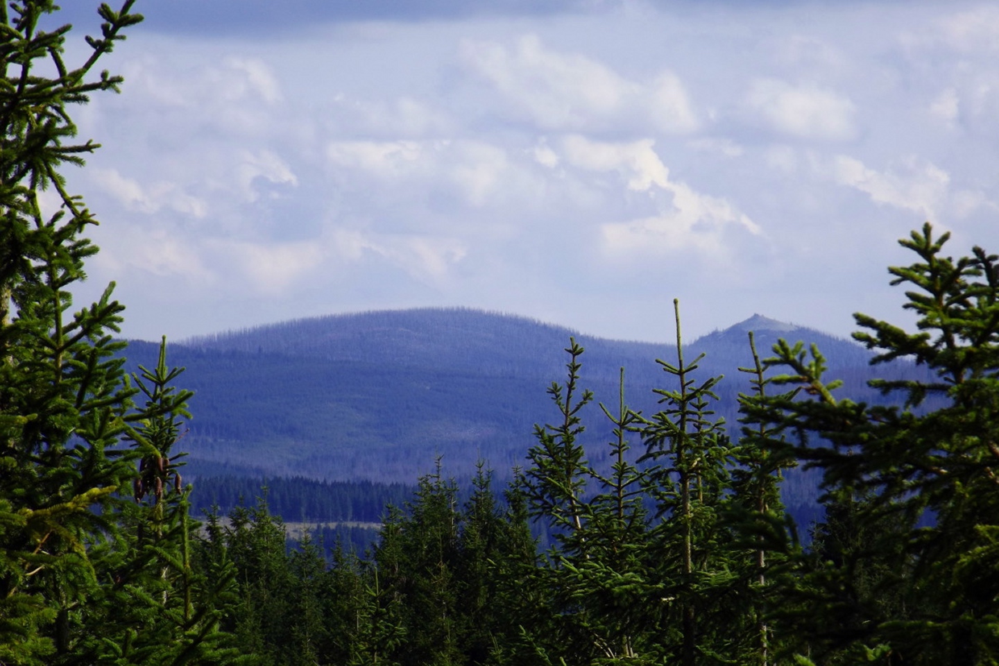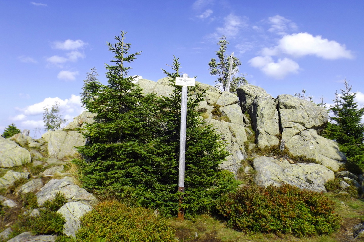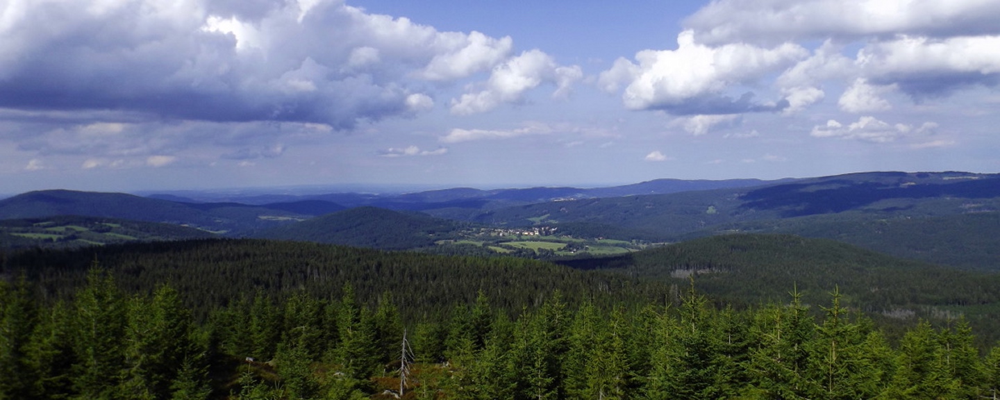Nachdem das Wetter in den Alpen in diesem Jahr eher wechselhaft ist und mir außerdem die Schönheit des Šumava so richtig bewusst wurde, habe ich mal kurz nachgerechnet, ob es denn eventuell günstiger wäre, zwei Übernachtungen zu nehmen als drei mal von Schwandorf aus zu den Tourenzielen zu fahren. Das „eventuell“ darf getrost durch ein „deutlich“ ersetzt werden, also machte ich mich auf den Weg nach Prášily und suchte mir dort eine Unterkunft, um drei Genusstouren am Stück zu gehen. Die erste davon führte mich auf den Oblík, einen auf der Karte eher unscheinbaren, aber doch immerhin 1224 Meter hohen Gipfel bei Srní mit mehr als ordentlicher Aussicht. Um die Sache richtig lohnend zu gestalten, umrundete ich dabei den Berg auch gleich noch.