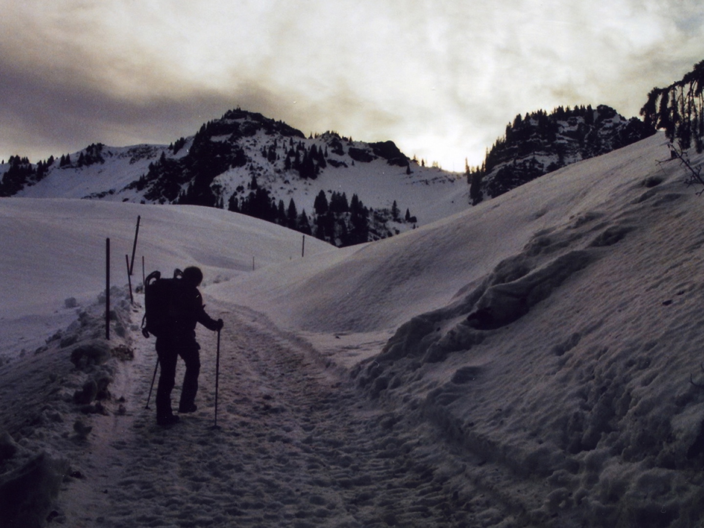 Der Zustieg erfolgte am Freitagnachmittag über den Normalweg von Neuhaus aus, der mehrfach beschrieben ist. Es lag bereits jede Menge Schnee, was vor allem die Skitürler erfreute, die sich am Samstag über die umliegenden Gipfel hermachten. Ich blieb in Hüttennähe und ging ein wenig den Wanderwegen entlang spazieren. Hasei organisierte gleich noch eine Lawinenübung, bevor dann am Abend die Weihnachtsfeier stattfand. Ich wurde von Pet, der damaligen Sektionspräsidentin, mit einem kleinen Steinchen in die Sektion eingeführt, welches sich als Aventurin entpuppte und seitdem mein Schutz- und Glücksbringer auf Bergtouren und sonstigen Wanderungen immer im Rucksack dabei ist. Am Sonntag folgte dann der Abstieg auf dem Aufstiegsweg und die Heimfahrt.