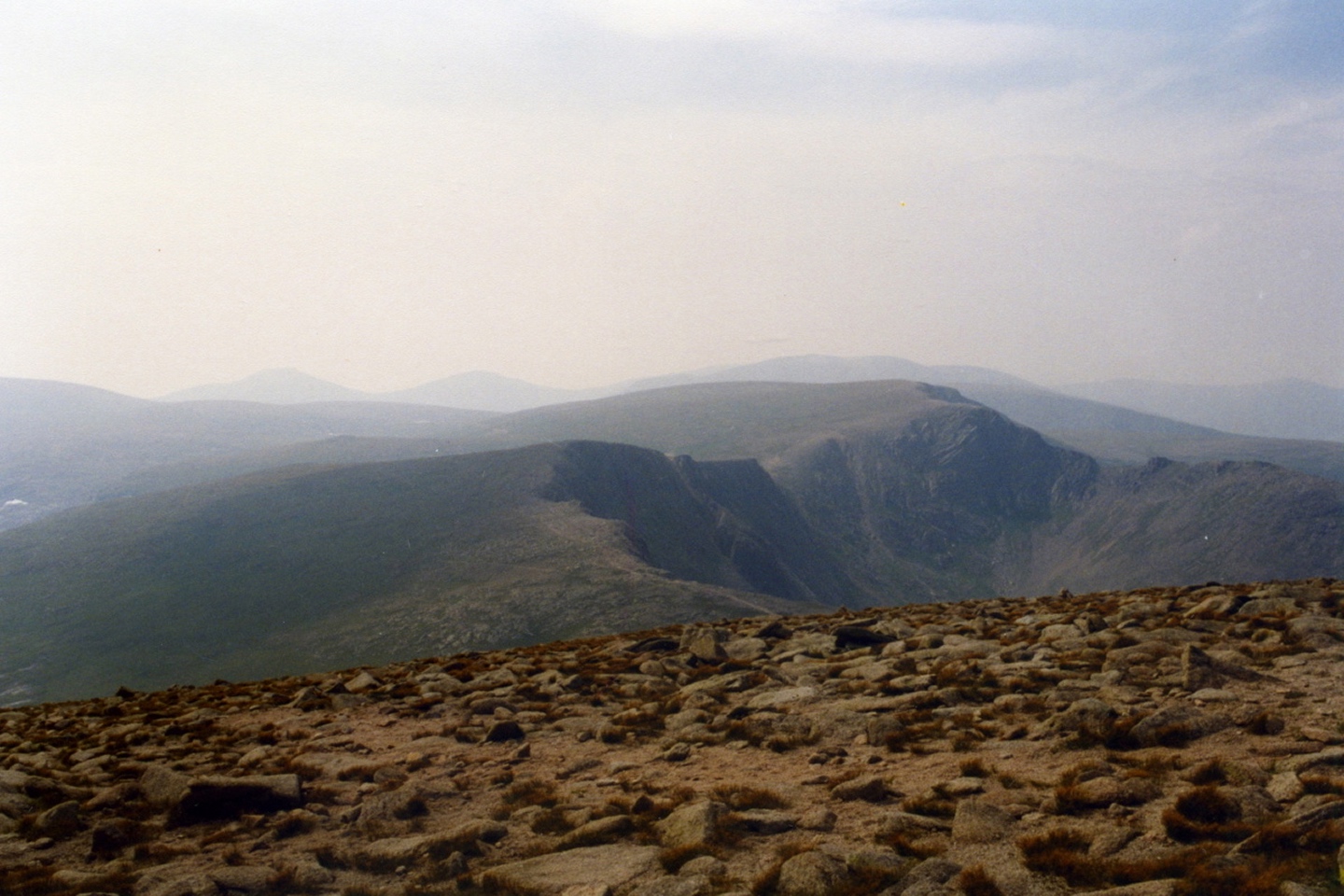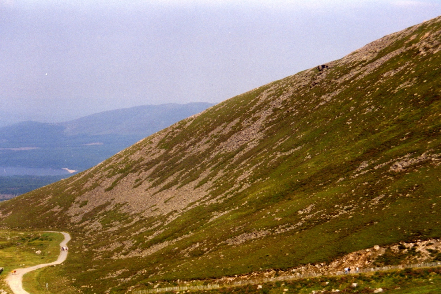 Nach einem Ruhetag in Fort William machte ich mich auf den Weg nach Inverness. Da das Wetter ausnahmsweise mal recht ordentlich war und ich die Strecke durch Glen Spean noch nicht kannte, kam ich wieder an Aviemore und dem Skigebiet am Cairn Gorm vorbei. Auch diesen Hügel, immerhin Nummer 6 in der Höhenrangliste Schottlands, hatte ich im Jahr zuvor versucht, war aber in diesem Fall an der Nebeldecke und Regen gescheitert. Da es erst 12 Uhr mittags war, nahm ich die paar Höhenmeter in Angriff.