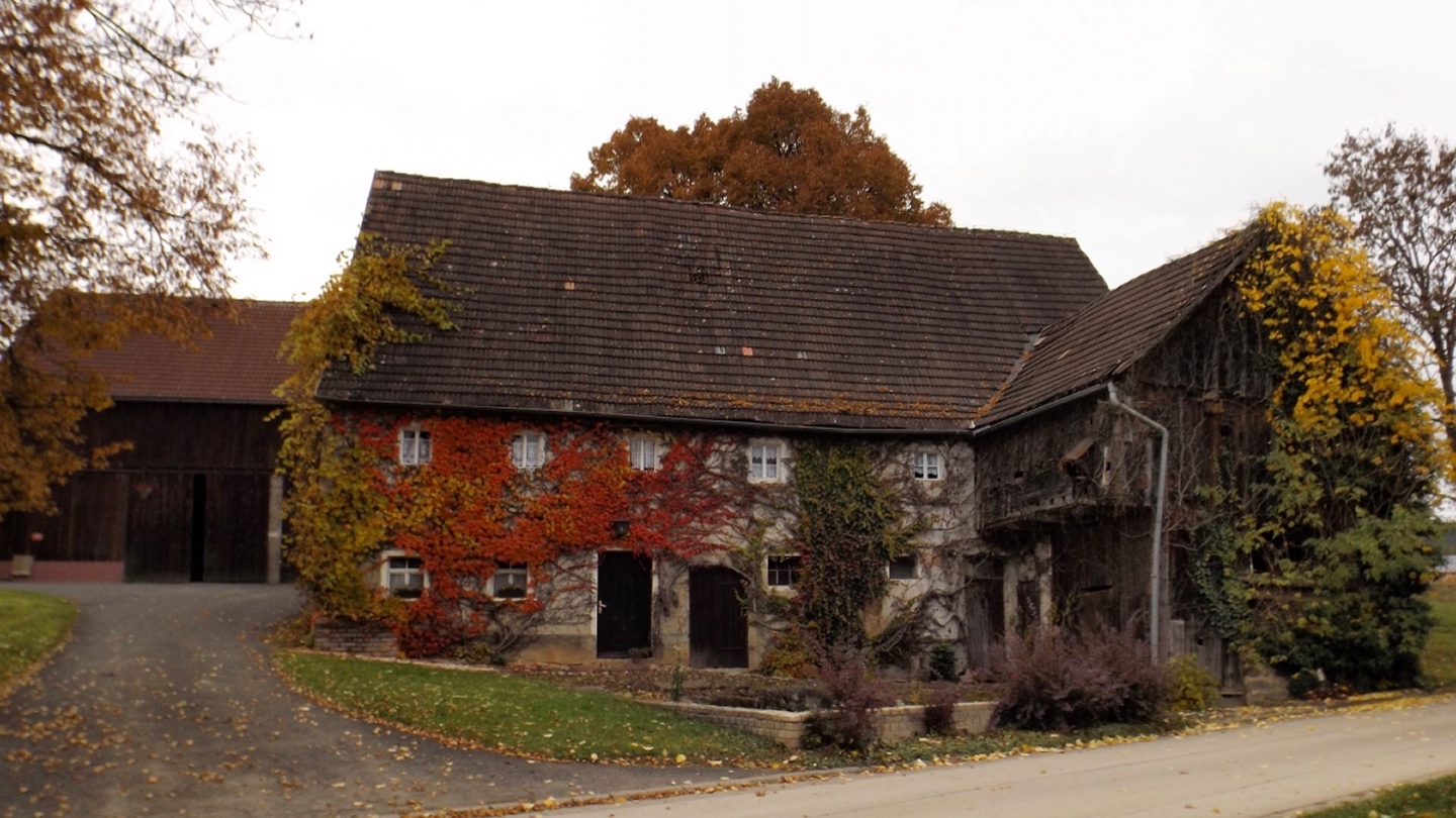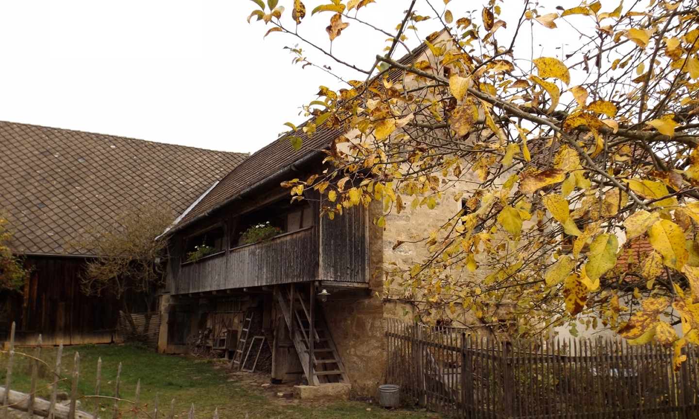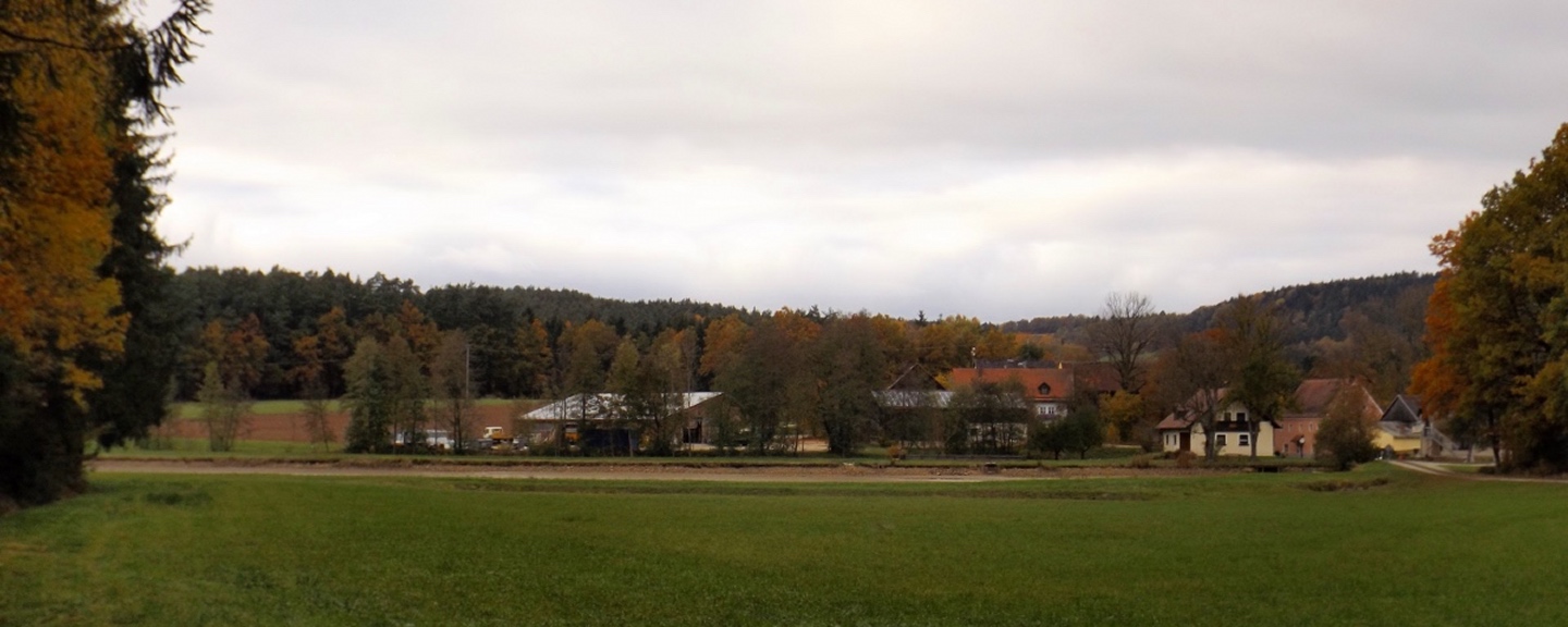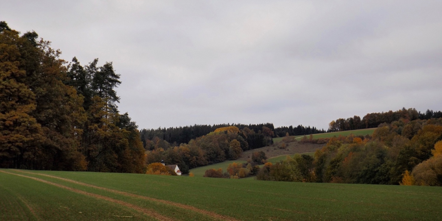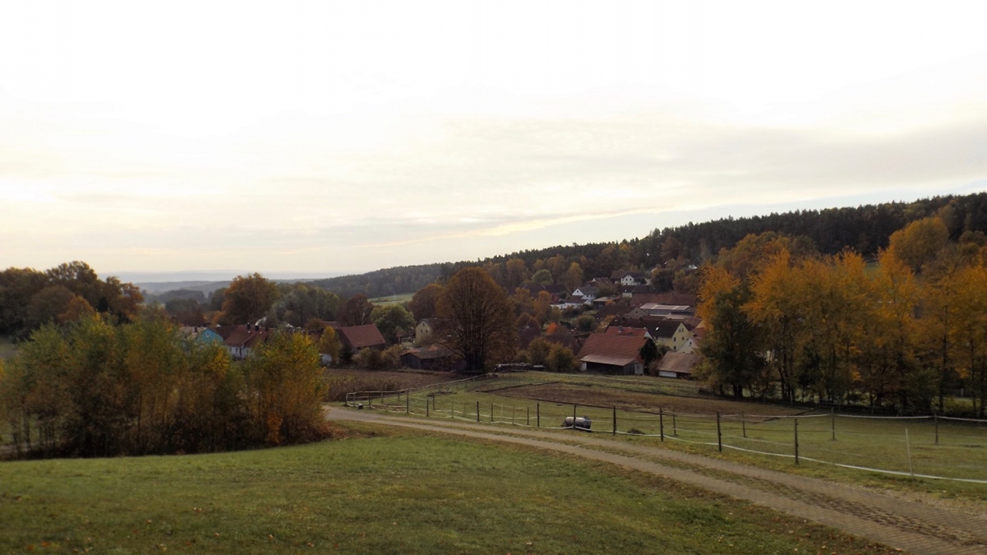 Denn wir durften nicht nur gleich zu Beginn die ehemalige Simultankirche in Weißenberg besichtigen, sondern auch die Kapelle oberhalb von Ödgodlricht und am Nachmittag das Bauernhofmuseum im Godlhof in Eberhardsbühl. Dieser war bereits 50 Jahre lang am Verfallen, bis er von einer kurz vor der Pension stehenden Lehrerin gekauft und liebevollst renoviert wurde. Die Dame lässt es sich auch mit über 80 Jahren nicht nehmen, regelmäßig Besucher durch ihr Lebenswerk zu führen. Außerdem gab es immer wieder schöne Ausblicke und einen Abschnitt auf dem Bienenlehrpfad, bei dem wir es nicht schafften, alle Infotafeln genau zu lesen. Wir hätten zwar im Nachhinein betrachtet genug Zeit dafür gehabt, aber so viel Info auf einmal ist nur ganz schwer zu verdauen. Ich habe mich vor allem auf die Tafeln zur Hummel konzentriert, sie ist ja mein Lieblingsinsekt. Die Einkehr war der totale Kontrast zum letzten Sonntag, aber trotzdem recht gut. Erstens fand sie bereits mittags statt, schließlich war in der Nacht Zeitumstellung, zweitens ist die Lokalität eine Dorfschänke / Brotzeitstube, die wirklich nur auf Vorbestellung aufkocht und folglich drittens nur Schnitzel oder Braten zur Auswahl hatte. Letzterer war etwas knapp kalkuliert, so dass die Damen mit den halben Portionen keine wirklichen Scheiben mehr bekamen, sondern fast schon Bratengeschnetzeltes, und für die Familie gar nichts mehr übrig blieb. Aber das hat am Ende niemanden wirklich gestört. Apropos Familie, die einjährige Tochter entdeckte irgendwann Tina und Gina an meinem Rucksack und wollte gar nicht mehr von den beiden ablassen. Als wir wieder weiterzogen, war sie besonders traurig, obwohl sie viele neue Opas, Omas und Tanten gefunden hatte. Besonderen Spaß hatten auch unsere Schwammerlsammler, die locker die Menge der vergangenen Tour überboten. Vor allem ein Maronenfeld nach etwa drei Vierteln der Strecke wurde komplett abgeernet, und das hatte doch locker 150 Quadratmeter.