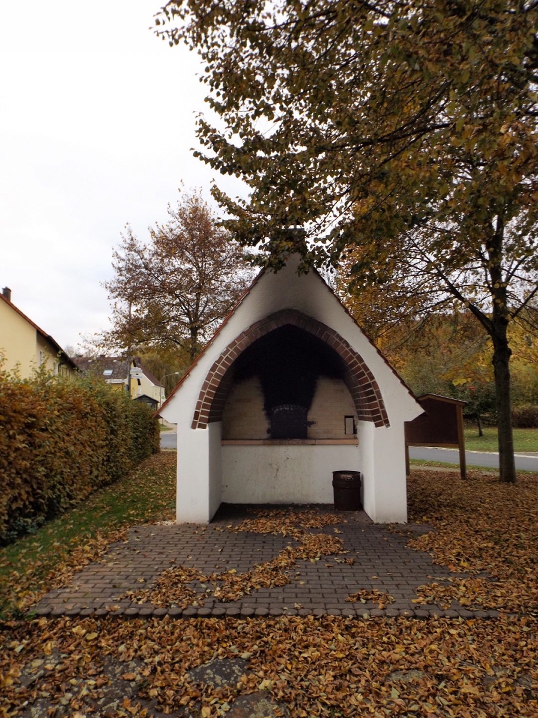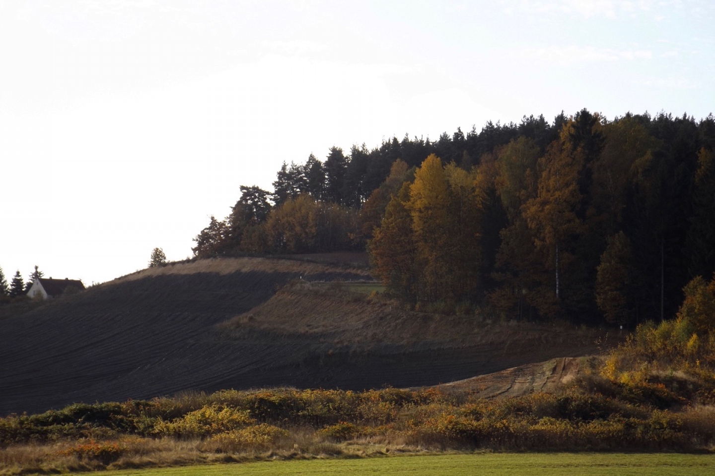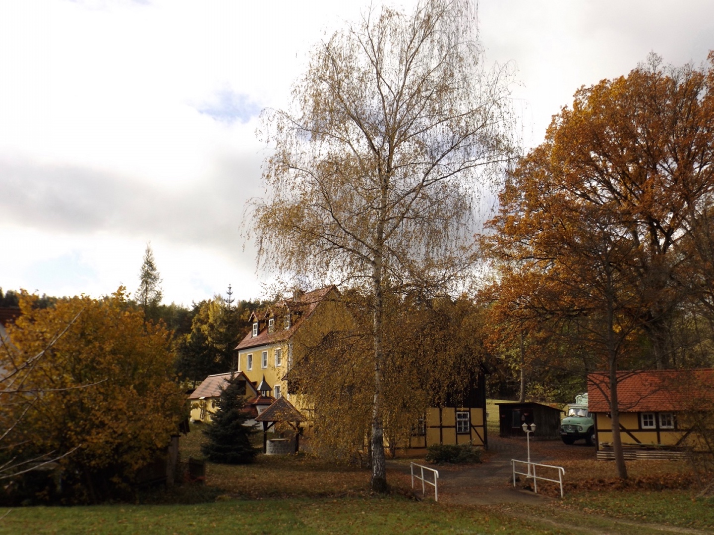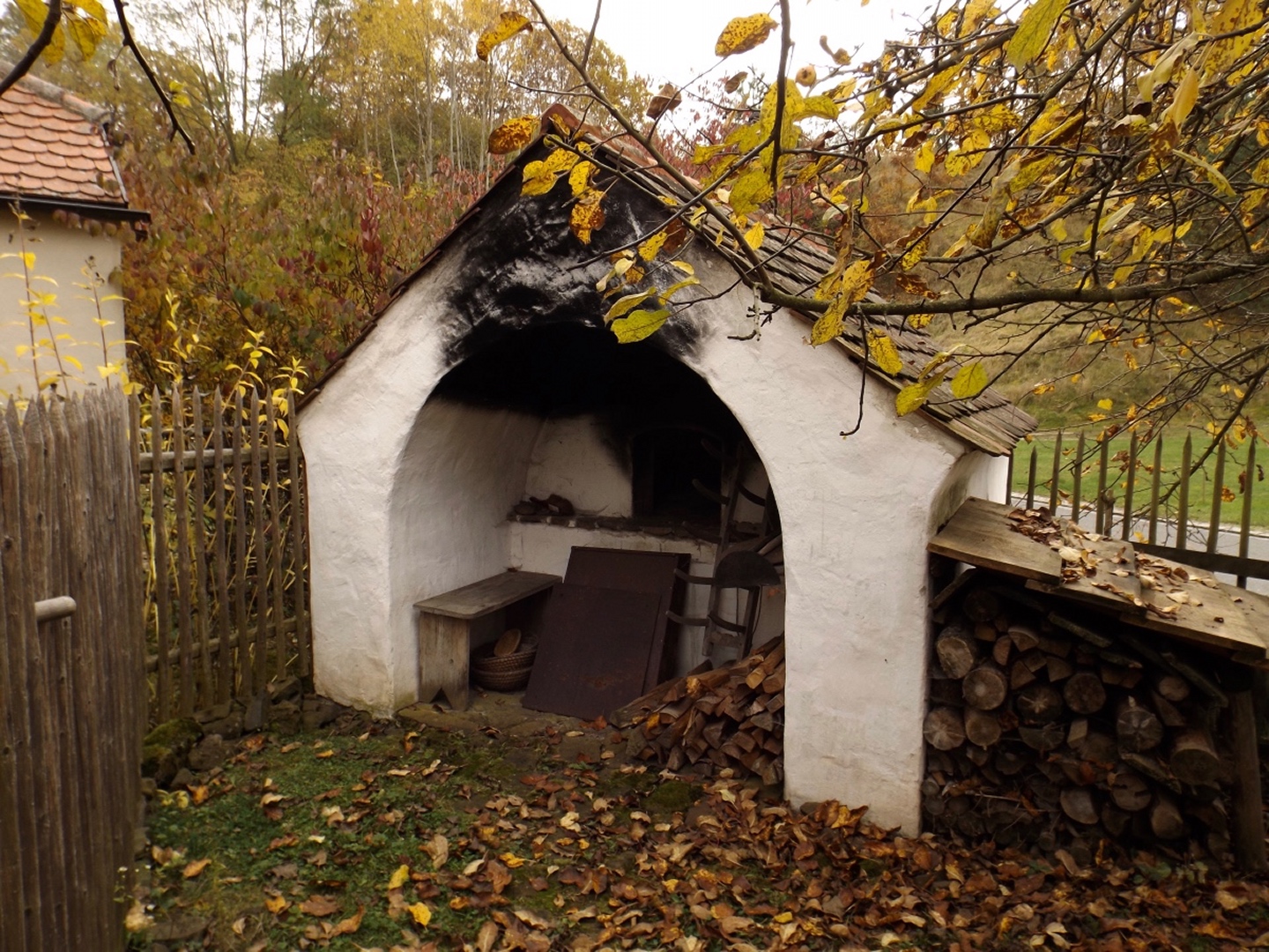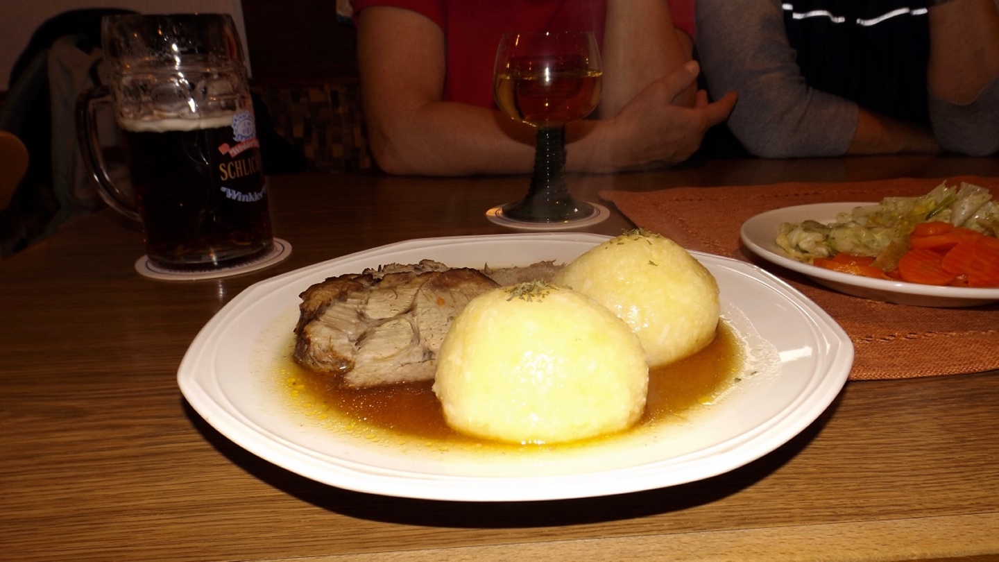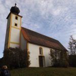Denn wir durften nicht nur gleich zu Beginn die ehemalige Simultankirche in Weißenberg besichtigen, sondern auch die Kapelle oberhalb von Ödgodlricht und am Nachmittag das Bauernhofmuseum im Godlhof in Eberhardsbühl. Dieser war bereits 50 Jahre lang am Verfallen, bis er von einer kurz vor der Pension stehenden Lehrerin gekauft und liebevollst renoviert wurde. Die Dame lässt es sich auch mit über 80 Jahren nicht nehmen, regelmäßig Besucher durch ihr Lebenswerk zu führen. Außerdem gab es immer wieder schöne Ausblicke und einen Abschnitt auf dem Bienenlehrpfad, bei dem wir es nicht schafften, alle Infotafeln genau zu lesen. Wir hätten zwar im Nachhinein betrachtet genug Zeit dafür gehabt, aber so viel Info auf einmal ist nur ganz schwer zu verdauen. Ich habe mich vor allem auf die Tafeln zur Hummel konzentriert, sie ist ja mein Lieblingsinsekt. Die Einkehr war der totale Kontrast zum letzten Sonntag, aber trotzdem recht gut. Erstens fand sie bereits mittags statt, schließlich war in der Nacht Zeitumstellung, zweitens ist die Lokalität eine Dorfschänke / Brotzeitstube, die wirklich nur auf Vorbestellung aufkocht und folglich drittens nur Schnitzel oder Braten zur Auswahl hatte. Letzterer war etwas knapp kalkuliert, so dass die Damen mit den halben Portionen keine wirklichen Scheiben mehr bekamen, sondern fast schon Bratengeschnetzeltes, und für die Familie gar nichts mehr übrig blieb. Aber das hat am Ende niemanden wirklich gestört. Apropos Familie, die einjährige Tochter entdeckte irgendwann Tina und Gina an meinem Rucksack und wollte gar nicht mehr von den beiden ablassen. Als wir wieder weiterzogen, war sie besonders traurig, obwohl sie viele neue Opas, Omas und Tanten gefunden hatte. Besonderen Spaß hatten auch unsere Schwammerlsammler, die locker die Menge der vergangenen Tour überboten. Vor allem ein Maronenfeld nach etwa drei Vierteln der Strecke wurde komplett abgeernet, und das hatte doch locker 150 Quadratmeter.