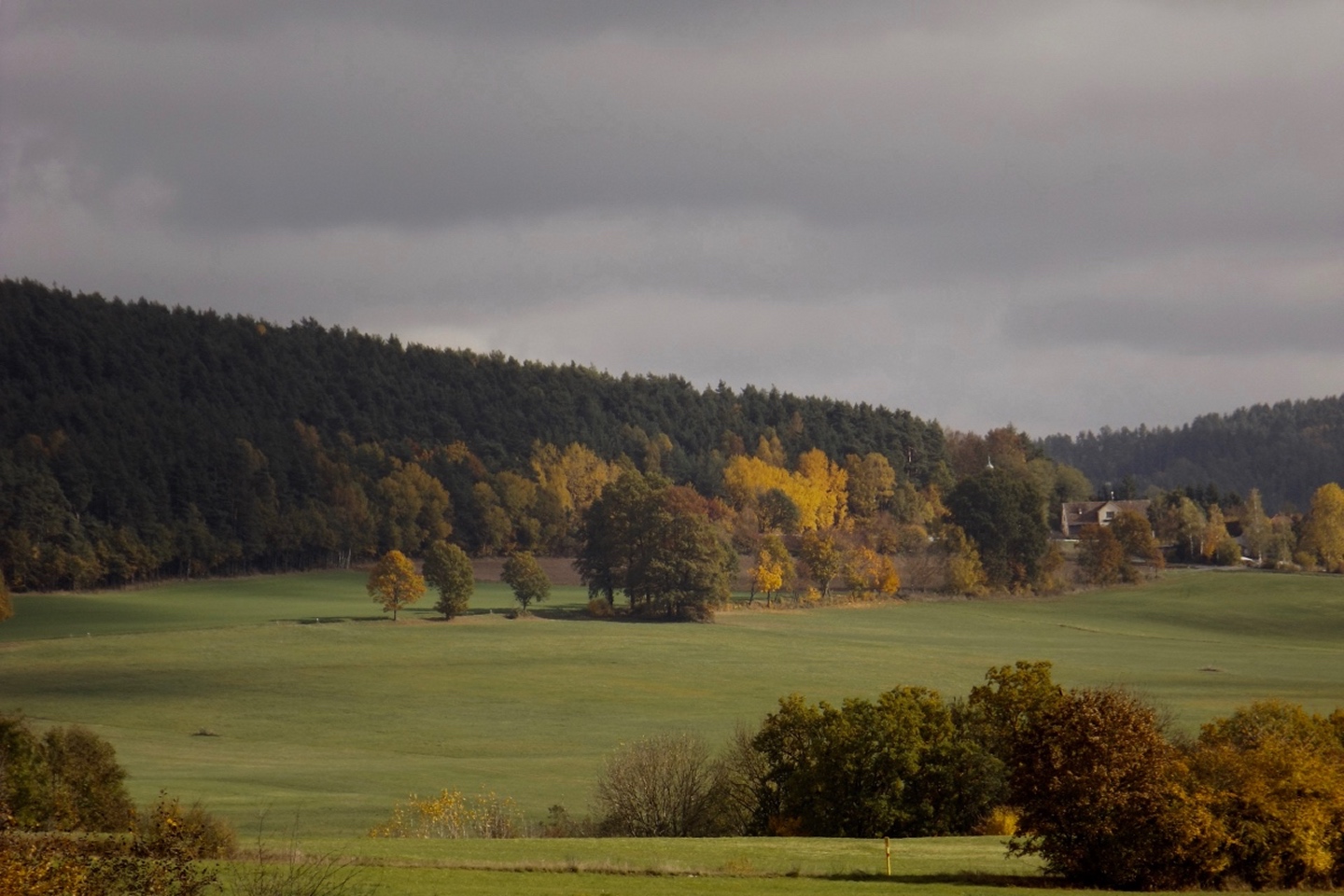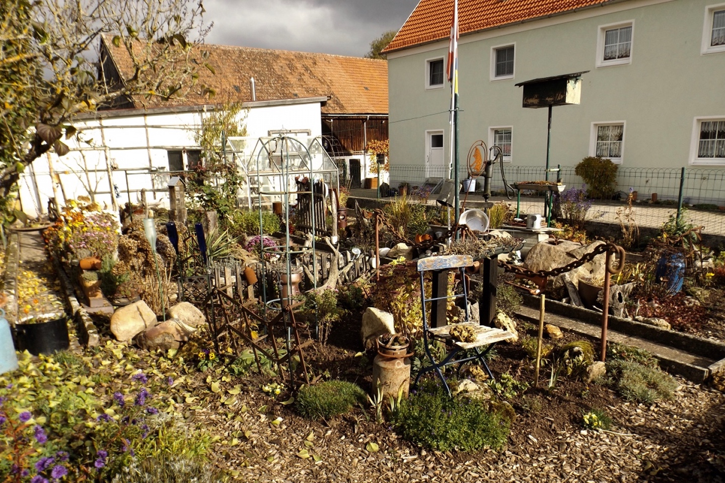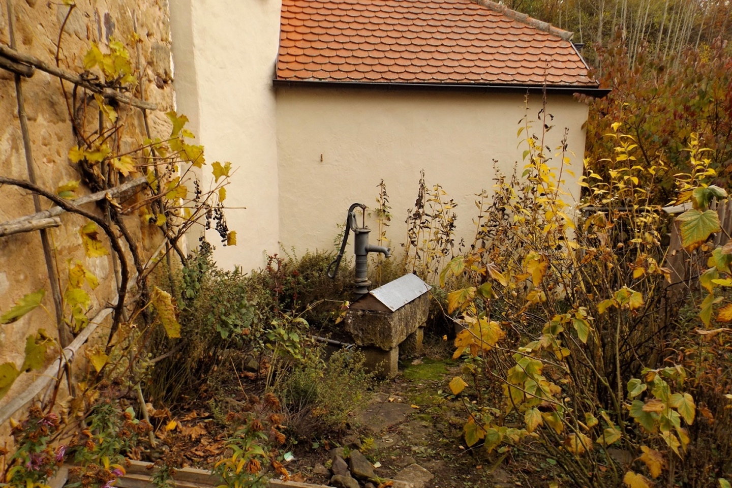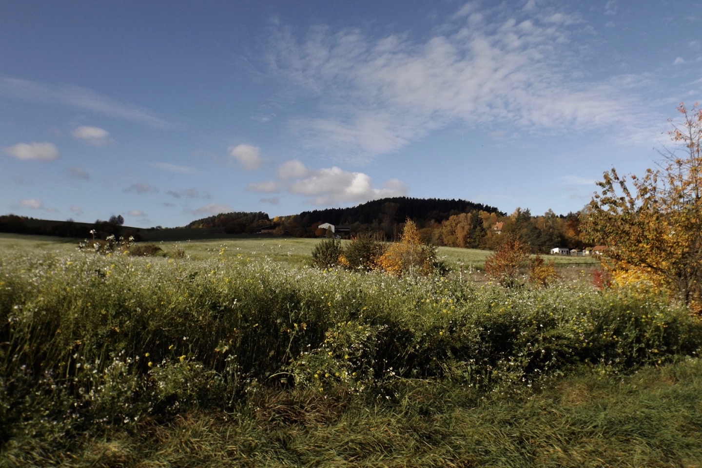 Denn wir durften nicht nur gleich zu Beginn die ehemalige Simultankirche in Weißenberg besichtigen, sondern auch die Kapelle oberhalb von Ödgodlricht und am Nachmittag das Bauernhofmuseum im Godlhof in Eberhardsbühl. Dieser war bereits 50 Jahre lang am Verfallen, bis er von einer kurz vor der Pension stehenden Lehrerin gekauft und liebevollst renoviert wurde. Die Dame lässt es sich auch mit über 80 Jahren nicht nehmen, regelmäßig Besucher durch ihr Lebenswerk zu führen. Außerdem gab es immer wieder schöne Ausblicke und einen Abschnitt auf dem Bienenlehrpfad, bei dem wir es nicht schafften, alle Infotafeln genau zu lesen. Wir hätten zwar im Nachhinein betrachtet genug Zeit dafür gehabt, aber so viel Info auf einmal ist nur ganz schwer zu verdauen. Ich habe mich vor allem auf die Tafeln zur Hummel konzentriert, sie ist ja mein Lieblingsinsekt. Die Einkehr war der totale Kontrast zum letzten Sonntag, aber trotzdem recht gut. Erstens fand sie bereits mittags statt, schließlich war in der Nacht Zeitumstellung, zweitens ist die Lokalität eine Dorfschänke / Brotzeitstube, die wirklich nur auf Vorbestellung aufkocht und folglich drittens nur Schnitzel oder Braten zur Auswahl hatte. Letzterer war etwas knapp kalkuliert, so dass die Damen mit den halben Portionen keine wirklichen Scheiben mehr bekamen, sondern fast schon Bratengeschnetzeltes, und für die Familie gar nichts mehr übrig blieb. Aber das hat am Ende niemanden wirklich gestört. Apropos Familie, die einjährige Tochter entdeckte irgendwann Tina und Gina an meinem Rucksack und wollte gar nicht mehr von den beiden ablassen. Als wir wieder weiterzogen, war sie besonders traurig, obwohl sie viele neue Opas, Omas und Tanten gefunden hatte. Besonderen Spaß hatten auch unsere Schwammerlsammler, die locker die Menge der vergangenen Tour überboten. Vor allem ein Maronenfeld nach etwa drei Vierteln der Strecke wurde komplett abgeernet, und das hatte doch locker 150 Quadratmeter.