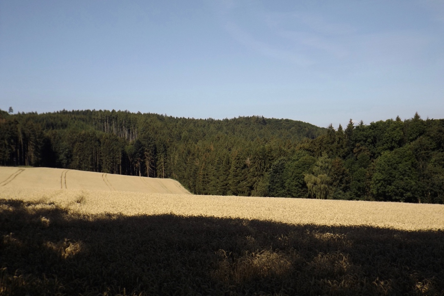Aber das war nicht das Einzige, was passte. Die Einkehr war richtig gut, da hatte ich vor vier Wochen mit Christa den richtigen Riecher, als wir uns von den herrlichen Kutscherbänken vor dem Restaurace Bonjour verleiten ließen, dort zu essen und auch gleich für die Tour zu reservieren. Die Strecke war für böhmische Verhältnisse überraschend waldweglastig, nur etwas mehr als ein Drittel verlief auf Asphalt. Aber das Allerbeste war die Teilnehmerzahl. Ich hatte mit etwa 15 Leuten gerechnet, aber als der Zug aus Amberg in Schwandorf einfuhr, stiegen mehr Leute aus als insgesamt bei allen Touren mit dem OWV Schwandorf mitgegangen sind. Von den 25 Teilnehmern begnügten sich zwar sieben mit der von Bernd geführten Kurzvariante, aber ich war trotzdem überwältigt. Dass mit Peter auch noch einer dabei war, der richtig fließend tschechisch spricht und somit die Infotafeln übersetzen konnte, die keinen deutschen Text hatten, war noch ein zusätzliches Sahnehäubchen.