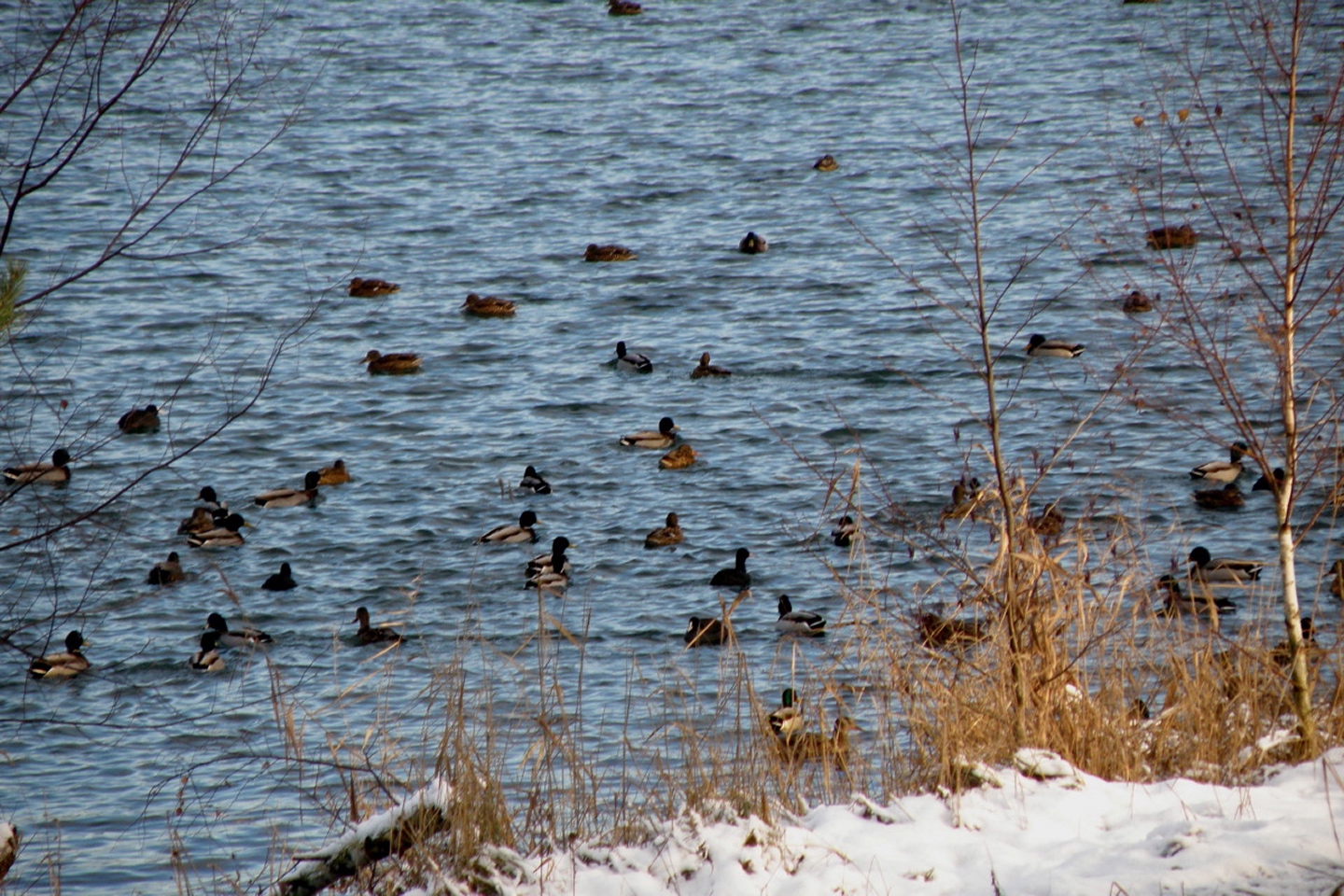 Also Coco ins Auto verfrachtet, Kamera eingepackt und die 6 km zum Steinberger See hinausgefahren. Unterwegs stellte ich fest, dass ich eigentlich meine Wanderschuhe mitnehmen wollte, weil die schönen Stiefel für Extrasocken fast zu eng sind, aber es ging gerade noch. Vom Parkplatz gingen wir den kleinen Pfad hinunter zum Seeufer, auf dem ich Coco von der Leine lassen konnte, weil im Gegensatz zur Zufahrtsstraße für Strandbad und Wasserwacht dort keine Autos herumrasen. Außerdem war die Sonne auf der gegenüberliegenden Seite des Sees und erlaubte somit die eine oder andere hübsche Gegenlichtaufnahme vom Ufer aus. Dem Uferpfad folgten wir bis zum Strandbad und gingen dann, Coco an der Leine, auf eben dieser Straße zurück, weil ich auch noch das eine oder andere Foto vom Knappensee machen wollte.