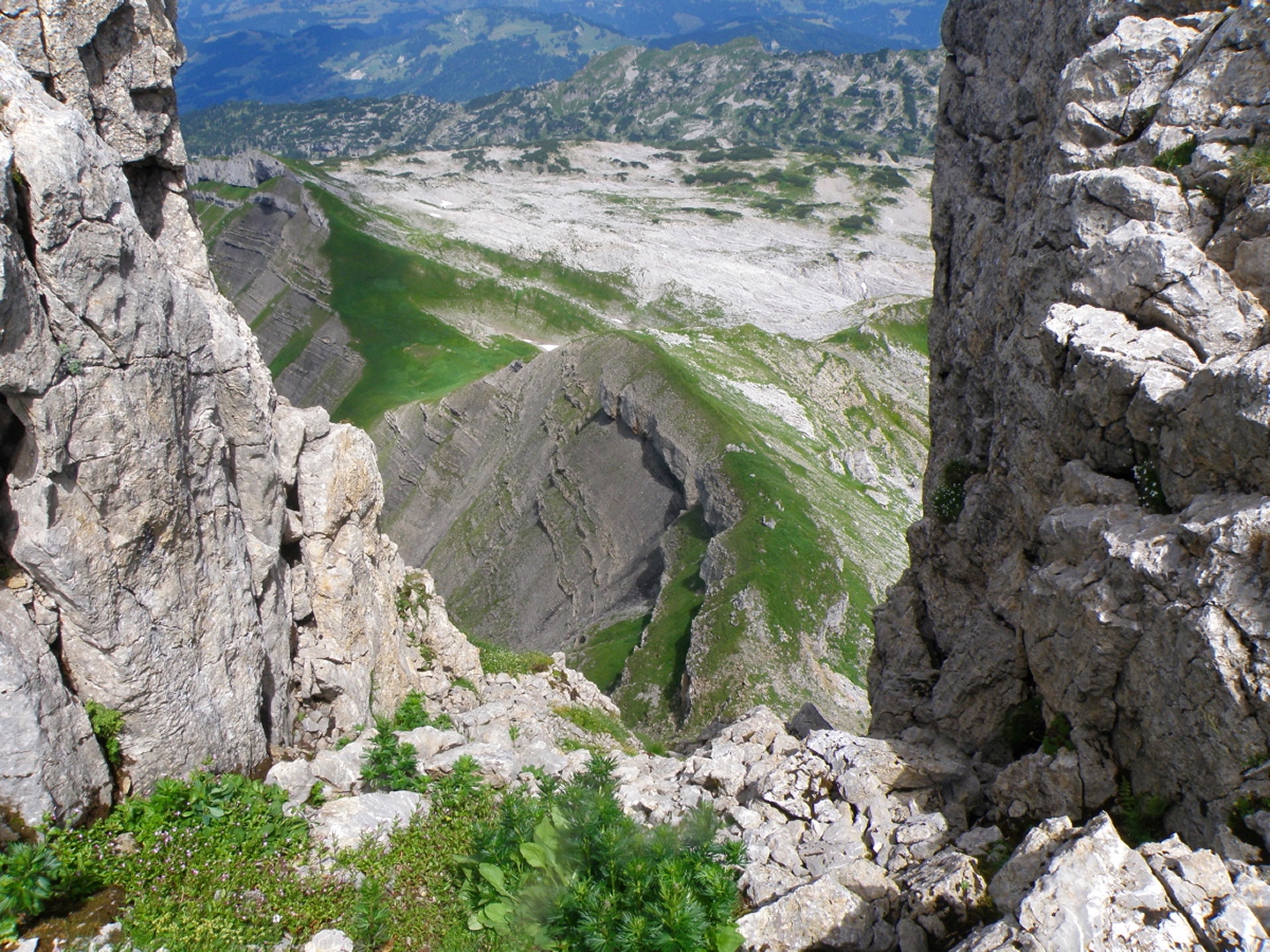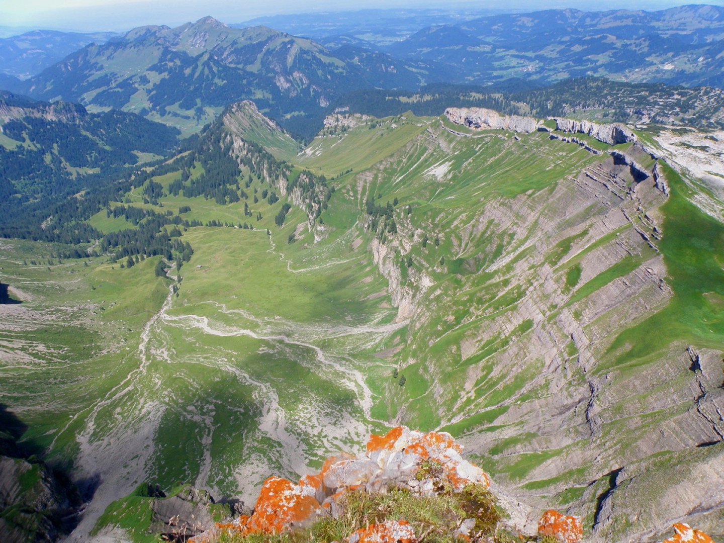 Der Weg ist eigentlich schon auf verschiedenen Portalen ziemlich genau beschrieben, deshalb konzentriere ich mich lieber auf persönliche Details. Ich startete also nach einem gemütlichen Frühstück über den Eugen Köhler-Weg und hatte technisch keine Probleme. Die schwierige Stelle beim Wanddurchbruch ist gut seilversichert, was ich nutzte. Vorher traf ich bei der Ifersguntalpe jede Menge Ziegen und Hühner an, die Fotos sind aber mittlerweile der verschärften Quote zum Opfer gefallen. Am Gipfel war wegen Überfüllung geschlossen, was beim herrschenden AKW auch wegen der Seilbahn von der Auenhütte zur Ifenalpe zu erwarten war, also machte ich meine Brotzeit etwas abseits und genoss einfach die Sonne, die Aussicht und natürlich die Tatsache, dass ich trotz kurzer Bedenken vor der seilversicherten Stelle (etwa die 2000 Meter-Marke) den Gipfel doch erreicht hatte. Am Rückweg durfte ich diverse Kuriositäten bestaunen, wobei einige davon durchaus Sinn machten, wie beispielsweise der etwa 12-jährige, der von seinem Vater auf dem markierten Weg, also im relativ harmlosen Gelände, am Sicherungsseil geführt wurde. Auch kamen im Abstieg nicht alle Aspiranten mit der Seilversicherung zurecht, aber ich hatte jede Menge Zeit und ließ die Mädels vor mir in Ruhe hinunterkrabbeln. Zurück an der Schwarzwasserhütte genehmigte ich mir erst einmal einen adeligen Unsinn, der so groß und gut war, dass ich später kein Abendessen mehr benötigte. Im Gegensatz zur Nacht zuvor war ich im Lager allein und schlief auch ziemlich ordentlich. Die Freude war am nächsten Morgen allerdings wie weggeblasen, denn nicht nur meine Knie protestierten, es war auch angesprochenes APW. Also nix Sonnenaufgangsfotos und Diedamskopf (und Extrabericht über den dritten Tag), sondern direkter Abstieg und eine gemütliche Fahrt über Riedbergpass und Hittisau (günstig tanken) nach Isny, wo ich im Stadtpark noch ein paar anmutige Fotos von einem Schwan machen konnte und abends beim Slam genau das Gegenteil vom Freitag erlebte. Kritische Texte sind in Deutschland vor allem in anderen Sprachen leider nicht so erwünscht, und wenn, dann sollen sie sich bitteschön gefälligst auf das primitive Niedermachen nicht linksgerichteter Politiker beschränken…