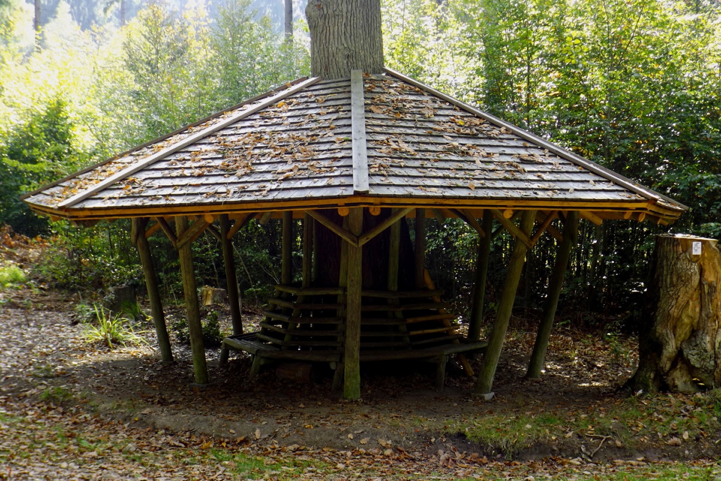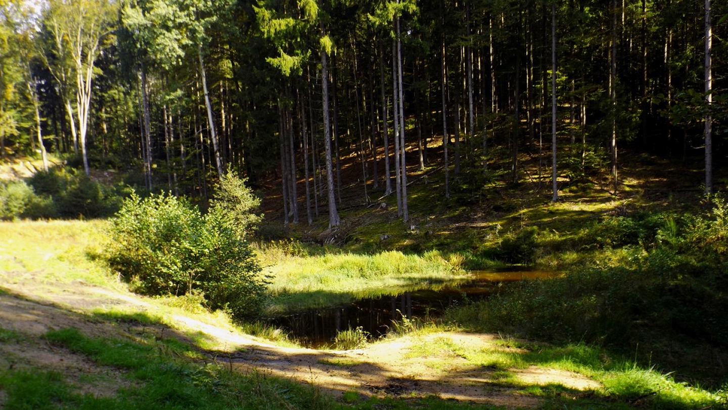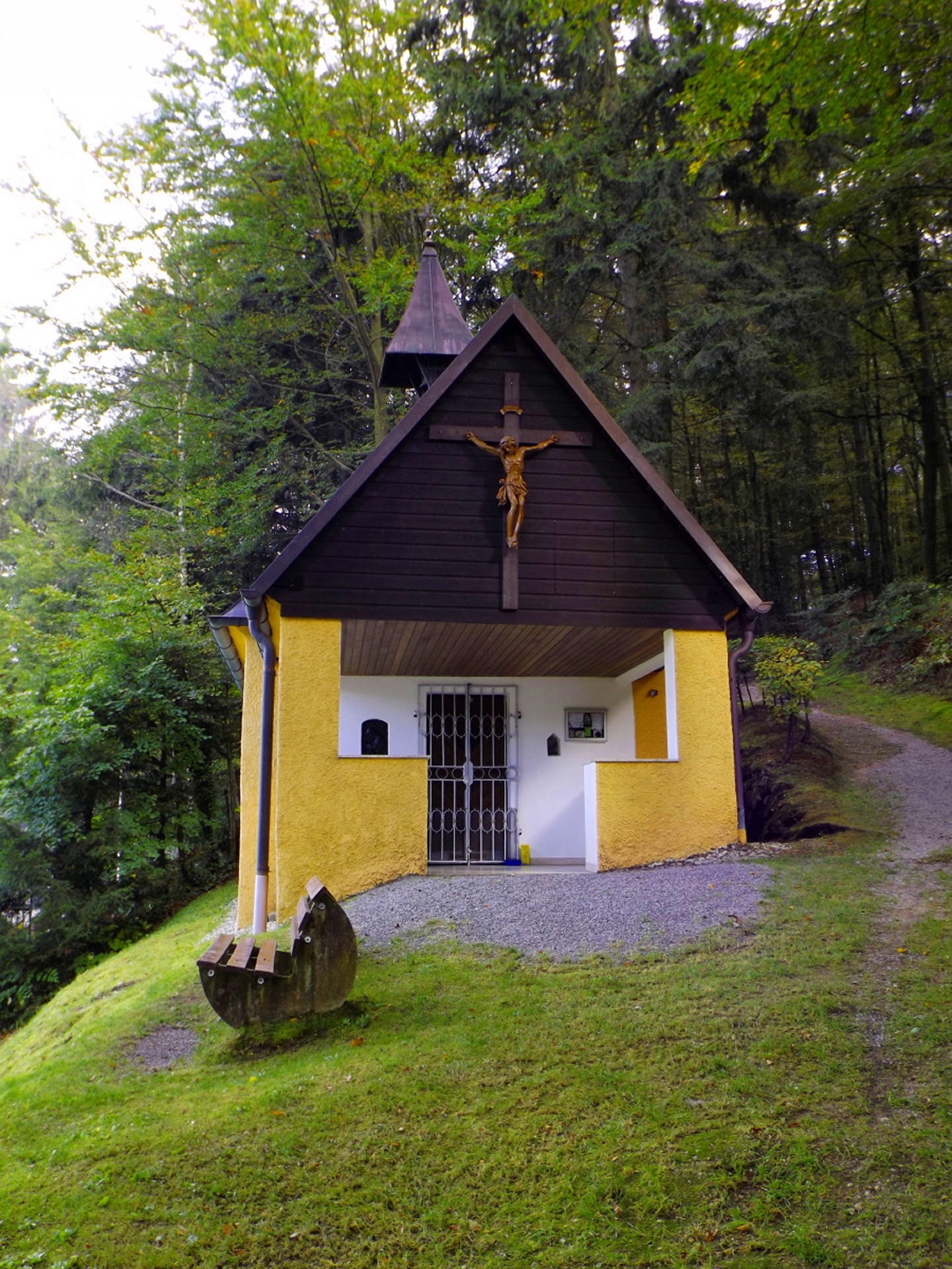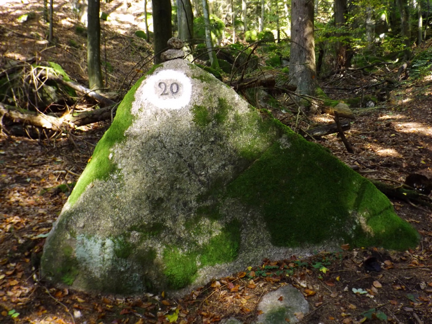 Ich startete ziemlich pünktlich um zwölf Uhr in Hirschling und wurde gleich nach dem ersten Foto für fünf Minuten aufgehalten – von einem gewohnt lieben Rottweiler mit Frauchen. Ja, Rottweiler sind liebevolle Hunde, sofern sie nicht vom Zweibeiner am anderen Ende der (gerne nur in der Hand getragenen) Leine versaut sind (in diesem Fall frage ich mich, warum diese Zweibeiner nicht angeleint sind). Nach dieser netten Verzögerung überquerte ich mit vielen Fotos den Regen und marschierte noch ohne Stöcke hinunter nach Heilinghausen, zunächst auf dem Radweg parallel zur Staatsstraße, bald auf der nördlichen Dorfzufahrt. Nach dem bekannten und beliebten Landgasthof bog ich links ab in den Weg „Zu den drei Bächen“ und folgte ihm in ein breites und grünes Bachtal, das sich ziemlich flach dahinzieht, bis es nach etwa zwei Kilometern enger wird und an einer Schranke drei Wege zur Auswahl stehen. Zwischendurch hatte der Untergrund von Asphalt auf Schotter gewechselt und ich die Stöcke aktiviert, außerdem bin ich auf einen Harvestertrack hereingefallen, der nach oben ging, aber in einer Sackgasse endete. Aber diese 300 Meter und 15 Höhenmeter waren verkraftbar. An der Schranke ist der richtige Weg der erste nach links, entlang einem fröhlich dahinplätschernden Bach, dem ich effektiv bis ganz oben zu seiner Quelle folgte. Daraus ergaben sich auch die weiteren Abzweige, die ich aber dieses Mal wieder in den Bildern erkläre. Im Talschluss wurde es zeitweise richtig steil, aber der Waldboden war griffig. Nach etwas weniger als eineinhalb Stunden ab Start öffnete sich der zuletzt nur noch zu erahnende Pfad neben einem Hochsitz auf eine Forststraße, der ich nach kurzer Pause nach links folgte. Sie führt zunächst in einer weiten S-Kurve weiter nach oben, dann in kleineren Kurven halbwegs flach bis zu einer Dreiecksabzweigung gegenüber einer Wiese. Hier geht es rechts weiter, von der anderen Seite aus ist der „Wacklstoa“ als Ziel angeschrieben. Nach weiterem sanften Anstieg erreichte ich eine Gabelung, an der ich den linken Ast nahm, und da schau her, auf einmal gab es Wegweiser und Markierungen. Ok, das grüne Rechteck war schon seit dem Abzweig an den Bäumen, aber die Qualität wurde wirklich besser. Wenig später war der Wackelstein erreicht, es handelt sich um einen Felsen ein paar Meter unterhalb des höchsten Punktes der Runde, des Hohensteins. Er ist zwar mit einer Eisenkette versehen, aber meine Kraft hat nicht ausgereicht, ihn zu bewegen. Nach einer weiteren sehr kurzen Rast ging ich weiter und kam nach ein paar Minuten an einem unscheinbaren Abzweig vorbei, an dem ein Holzschild in den Wald hinein zur Riedelhöhe wies. In der Kompasskarte war nichts verzeichnet, also sah ich mir die ersten Meter des Pfades einmal an und stand nach nicht einmal einer Minute vor einer Felsformation mit Betonaufsatz. Als dieser hingestellt wurde, war es wohl ein Aussichtspunkt, jetzt sieht man vor lauter Bäumen nur noch Wald. Aber wenn 300 Meter Sackgasse verkraftbar sind, sind es 200 Meter für ein zusätzliches Gipfelchen erst recht. Zurück auf dem Wanderweg, oder soll ich besser Radlerautobahn sagen, ging ich in flottem Tempo hinunter bis zu einer Kreuzung mit fünf Wegen, von denen gleich zwei nach Marienthal hinunter führen. In diesem Bereich hat es den Anschein, als ob die Forststraße ziemlich frisch saniert ist, denn die Böschung war total unbewachsen und glatt planiert. An der Kreuzung wählte ich den linken Weg nach Marienthal, weil dieser im Gegensatz zum rechten über den Gailenberg drüber führt und nicht an der Flanke entlang. Bis zum Gipfel war ich auf einem breiten Waldpfad unterwegs, teilweise auf einem Damm, das alles bei sehr moderater Steigung. Bereits in Sichtweite des Gipfelpodestes zweigt ein Pfad nach links ab, der mit Peilstein beschildert ist. Da war doch etwas auf Bayern-Atlas, genau, ein Aussichtspunkt. Dieser liegt etwa 25 Höhenmeter unterhalb des Abzweiges, bietet schöne Aussicht auf Stockenfels und die dahinterliegende Ebene mit Schwandorf und Wackersdorf und ist mit einer Gipfelbuchkassette samt Inhalt ausgestattet. Hier machte ich Brotzeit, obwohl es nur noch eine halbe Stunde bis Marienthal und der Einkehr war, aber ich wollte sparen und mich auf ein Bierchen beschränken. Zurück auf dem Hauptweg überschritt ich den zweiten Gipfel des Tages. Naja, eigentlich habe ich den Hohenstein nicht überschritten, weil er links neben einer Kurve der Forststraße liegt und ich die letzten sieben Meter auf den gleichen Tritten und Spuren rauf- und runtergegangen bin, aber gut. Den Gailenberg habe ich definitiv überschritten und der Abstiegsweg ist nur noch ein kleiner Fußpfad, was aber scheinbar nicht alle Mountainbiker daran hindert, trotzdem hochzufahren. Dieser Pfad läuft meistens gerade, ist etwas steiler als die Höhenunterschiede auf dem Rücken, quert Forststraßen und ist immer gut mit dem roten Dreieck markiert. Dann erkennt man plötzlich durch die Bäume den Regen und ist zwei Minuten später an der Kapelle von Marienthal und drei weitere Minuten darauf unten an der Staatsstraße, wo es links zum Landgasthof Wittmann mit seinem hübschen Biergarten geht. Ich ließ mich dort nieder, hatte genug Geduld, auf die freundliche, aber bei diesem AKW etwas gut ausgelastete Bedienung zu warten (zwei Typen, die mit einem protzigen Mercedes hergefahren waren, hatten diese Geduld nicht und verschwanden nach drei Minuten wieder, good riddance!) und genoss mein Dunkles, sofern man ein Paulaner genießen kann. Auf der Speisekarte standen zwar Delikatessen wie Wildschweinschnitzel oder Hirschragout, aber wie gesagt, ich wollte sparen. Dank dem schönen Wetter war auch die kleine Personenfähre über den Regen in Betrieb, so dass ich den geplanten Abstecher hinauf nach Stockenfels auch noch machen konnte. Der Fährmann verlangt keinen Festpreis, sondern nimmt das, was man für richtig hält, ich gab ihm zwei Euro. Auf der anderen Seite geht es kurz flach zu 